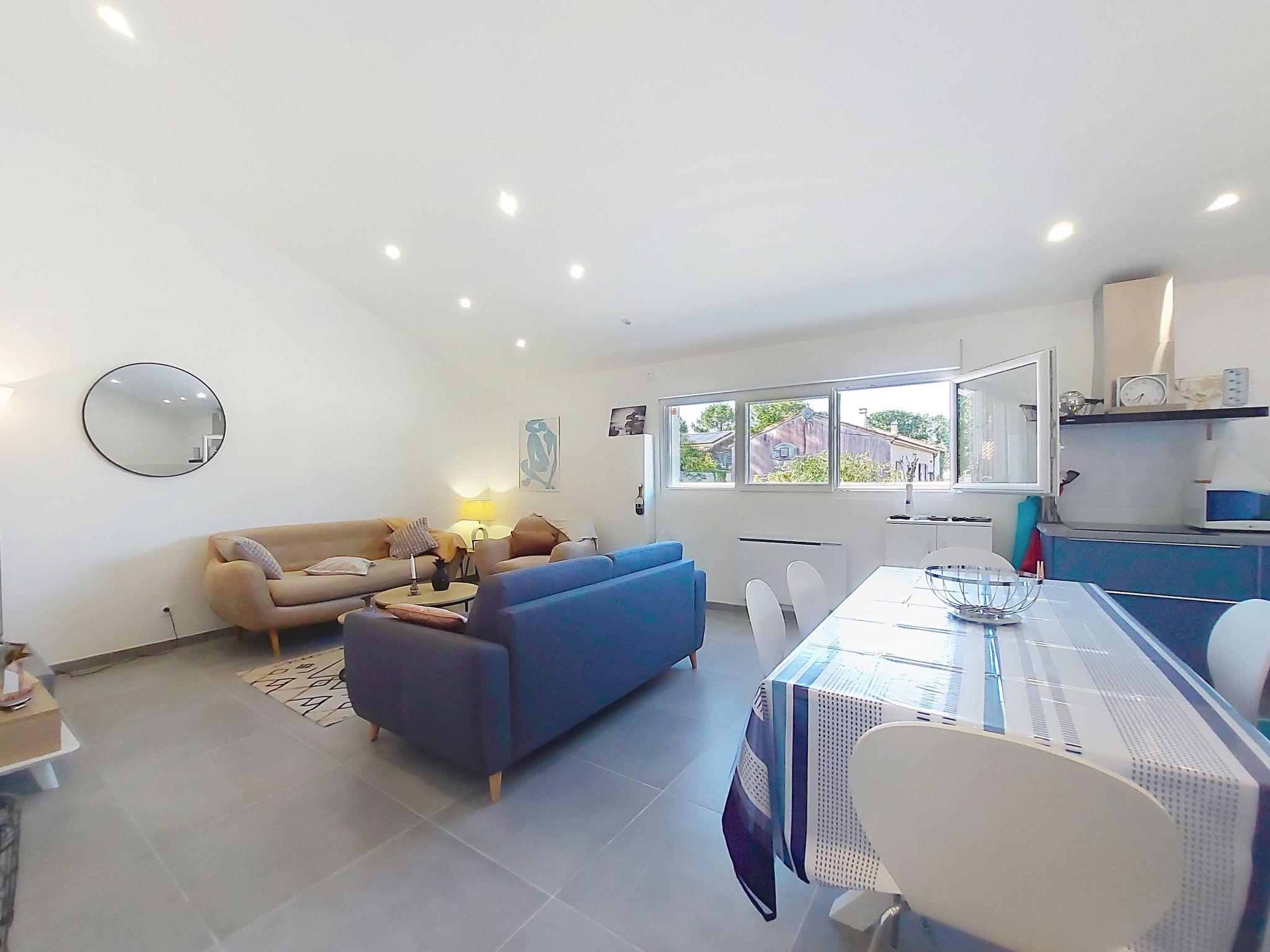 Les Mathes 6 km from La Palmyre: Terraced house "Maison du bois". In the resort 1.5 km from the centre of Les Mathes, in a quiet position, 4 km from the sea, 4 km from the beach. Private: terrace (45 m2), garden furniture, public parking on the road. Grocery 2 km, restaurant 1.5 km, bakery 1.5 km, bus stop "Les Mathes - Léon Nicolle" 800 m, railway station "Royan" 19 km. Sports harbour 5 km, golf course (9 hole) 5 km, surf school 5 km, riding stable 4 km. Nearby attractions: Hippodrome - La Palmyre 4 km, Zoo de La Palmyre 5 km, Luna Park (Juillet-Août) 4 km, Embarcadère Royan - Le Verdon 13 km, Zagal Cabaret équestre 4 km, Port La Tremblade - Boyard / Ile d'Aix 11 km. The keys‘ handover takes place by the agency Interhome in La Palmyre, 5 km.