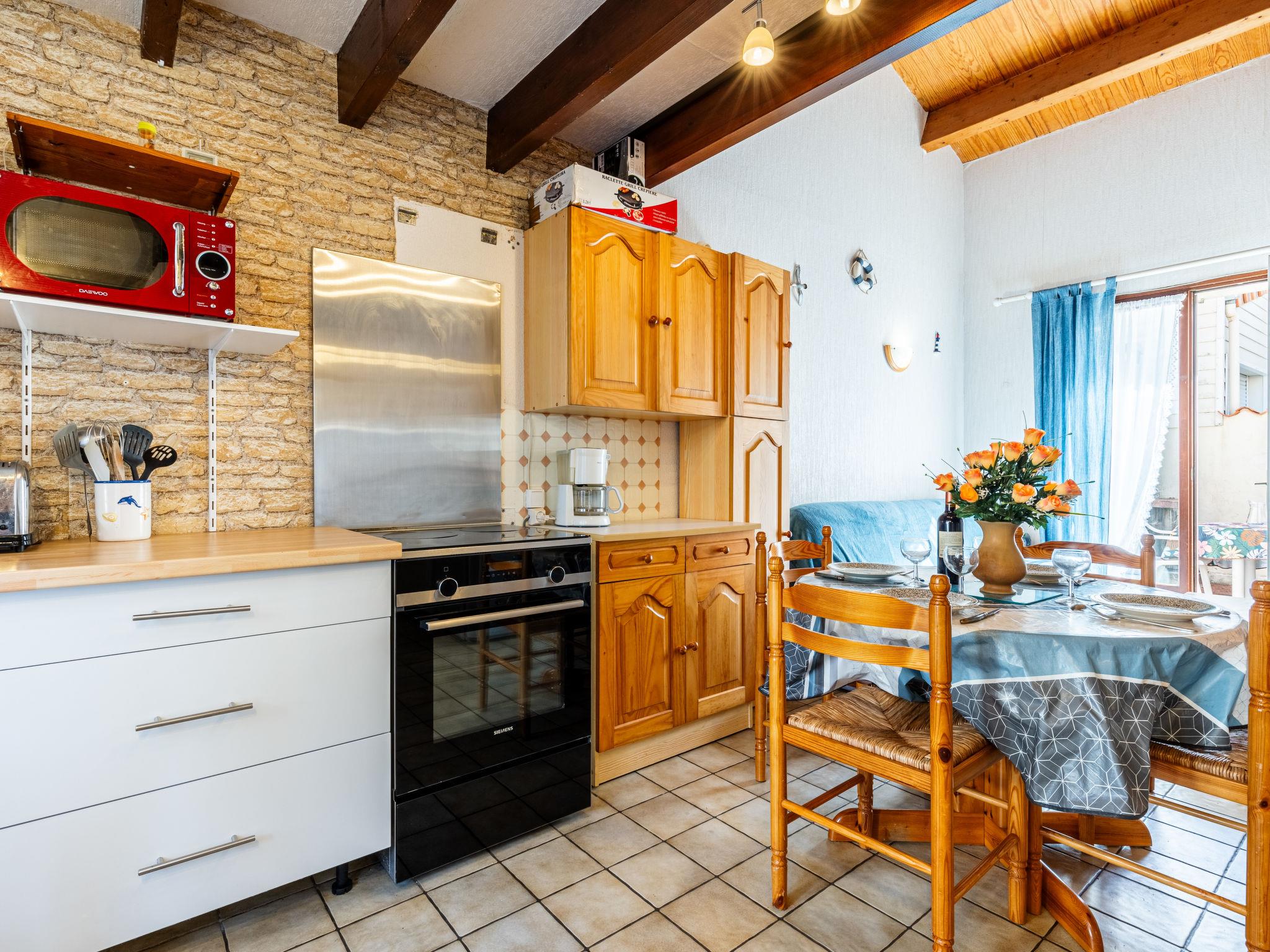 Small terraced house "Lutins 5". 400 m from the centre of La Palmyre, 4.5 km from the centre of Les Mathes, 11 km from the centre of La Tremblade, 1.3 km from the sea, 1.3 km from the beach. Parking (for 2 cars) at the house. Shop, supermarket, restaurant, bakery, café 400 m, bus stop "Les mathes" 500 m, railway station "Royan" 17 km, sandy beach "La Palmyre" 1.3 km, thermal baths "Thalassothérapie Thalazur Royan" 15 km. Sports harbour 1.3 km, golf course (9 hole) 2.5 km, sailing school 1.5 km, riding stable 1.6 km, cycle lane 100 m. Nearby attractions: Zoo de La Palmyre 1.4 km, Hippodrome - La Palmyre 1 km, Embarcadère Royan - Le Verdon 16 km, Luna Park (Juillet-Août) 5 km, Port La Tremblade - Boyard / Ile d'Aix 12 km, Ile Oléron 24 km.