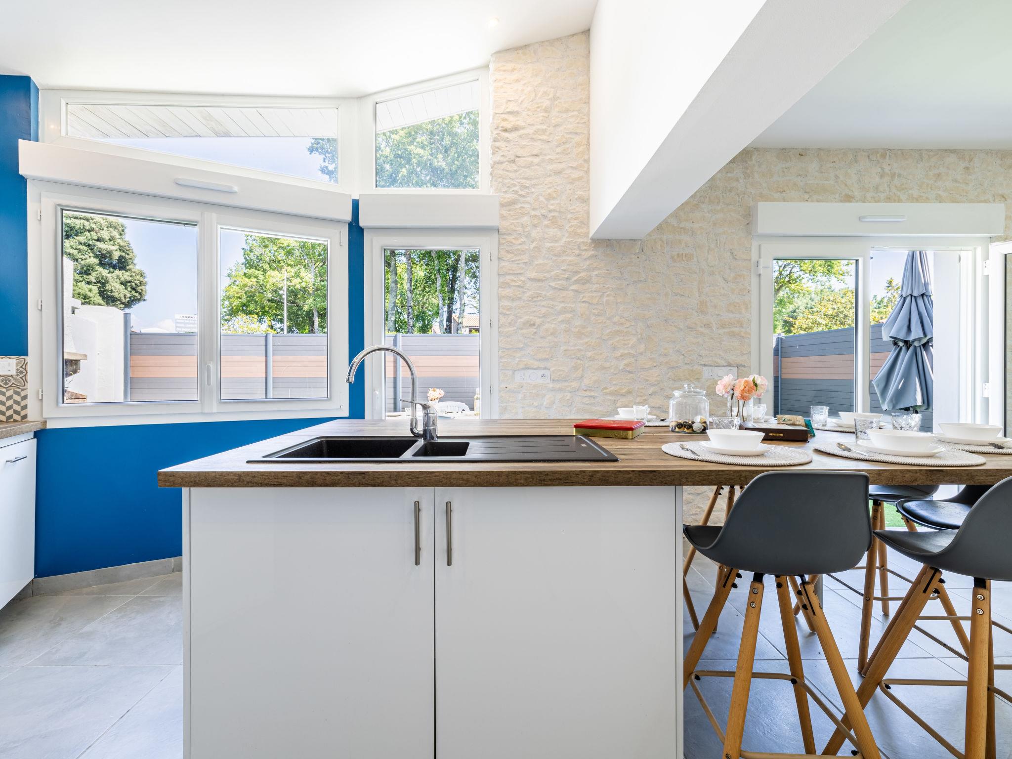 Les Mathes 5 km from La Palmyre: Large 3-family house "Les Sablières", 2 storeys. In the centre of Les Mathes, in a central position, 2 km from the edge of the forest, 4 km from the sea, 4 km from the beach, on a main road. Parking. Shop, grocery 100 m, supermarket 4 km, restaurant 500 m, bakery 50 m, café 100 m, bus stop "LES MATHES - Eglise" 50 m. Sports harbour 5 km, golf course (9 hole) 5 km, surf school 5 km, riding stable 2 km. Nearby attractions: Hippodrome - La Palmyre 5 km, Zoo de La Palmyre 5 km, Luna Park (Juillet-Août) 5 km, Zagal Cabaret équestre 4 km, Embarcadère Royan - Le Verdon 15 km, Port La Tremblade - Boyard / Ile d'Aix 11 km. The keys‘ handover takes place by the agency Interhome in La Palmyre, 5 km.