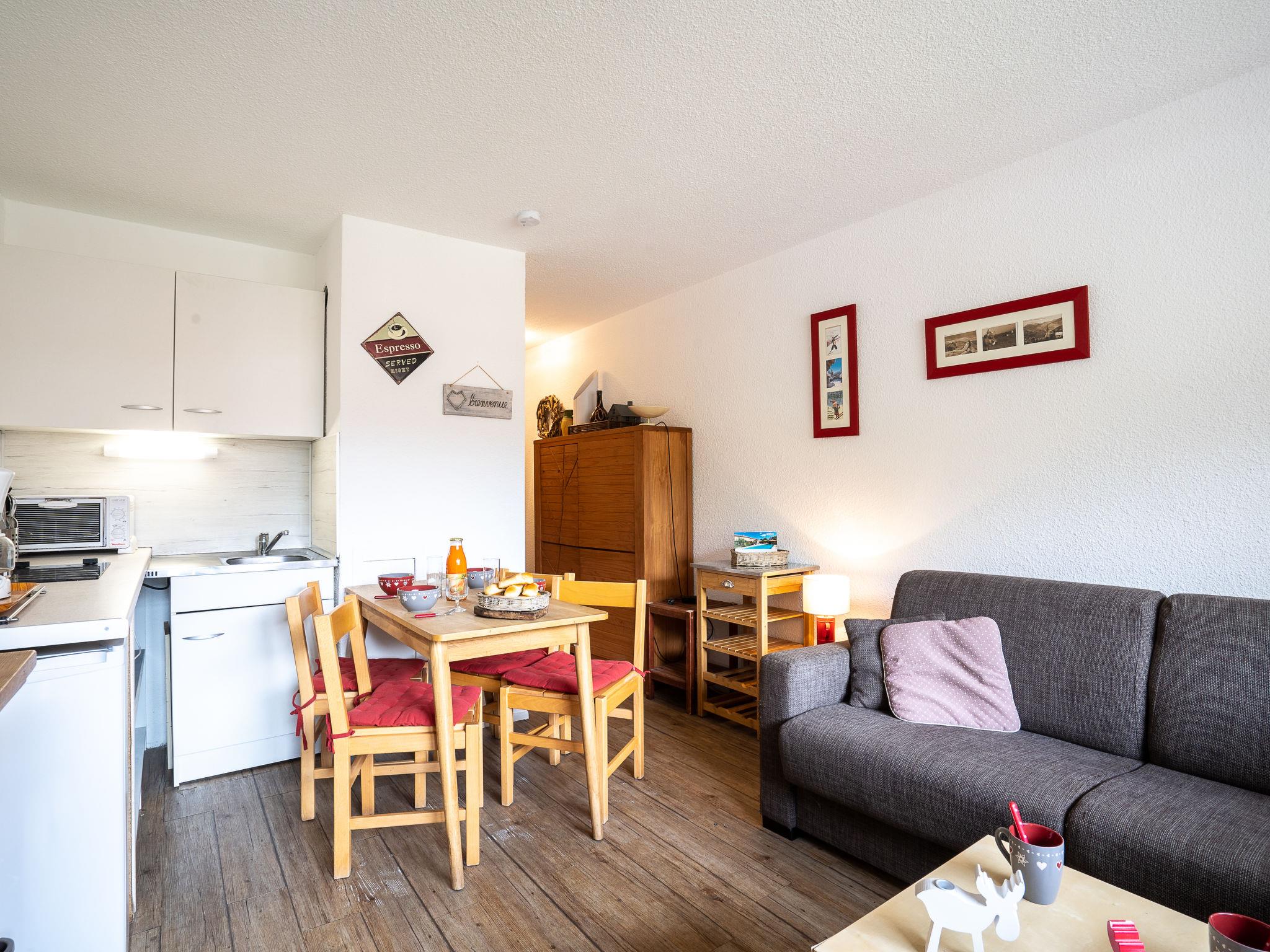 "Asters 318 Bâtiment A1", 1-room apartment 24 m2 on 2nd floor. Comfortable and beautiful furnishings: living/dining room with 1 double sofabed (140 cm, length 190 cm), TV (flat screen). Exit to the balcony. Sleeping alcove with 1 x 2 bunk beds (70 cm, length 190 cm). Kitchenette (mini-oven, 2 ceramic glass hob hotplates, kettle, microwave, electric coffee machine, raclette grill). Bath/WC. Electric heating. Balcony, south facing position. Facilities: Internet (WiFi, extra). Please note: maximum 1 pet/ dog allowed. Smoke alarm. Instead of an enclosed bedroom, some sleeping areas are located in an open-plan area (gallery, alcove, etc.). 73257003957MX