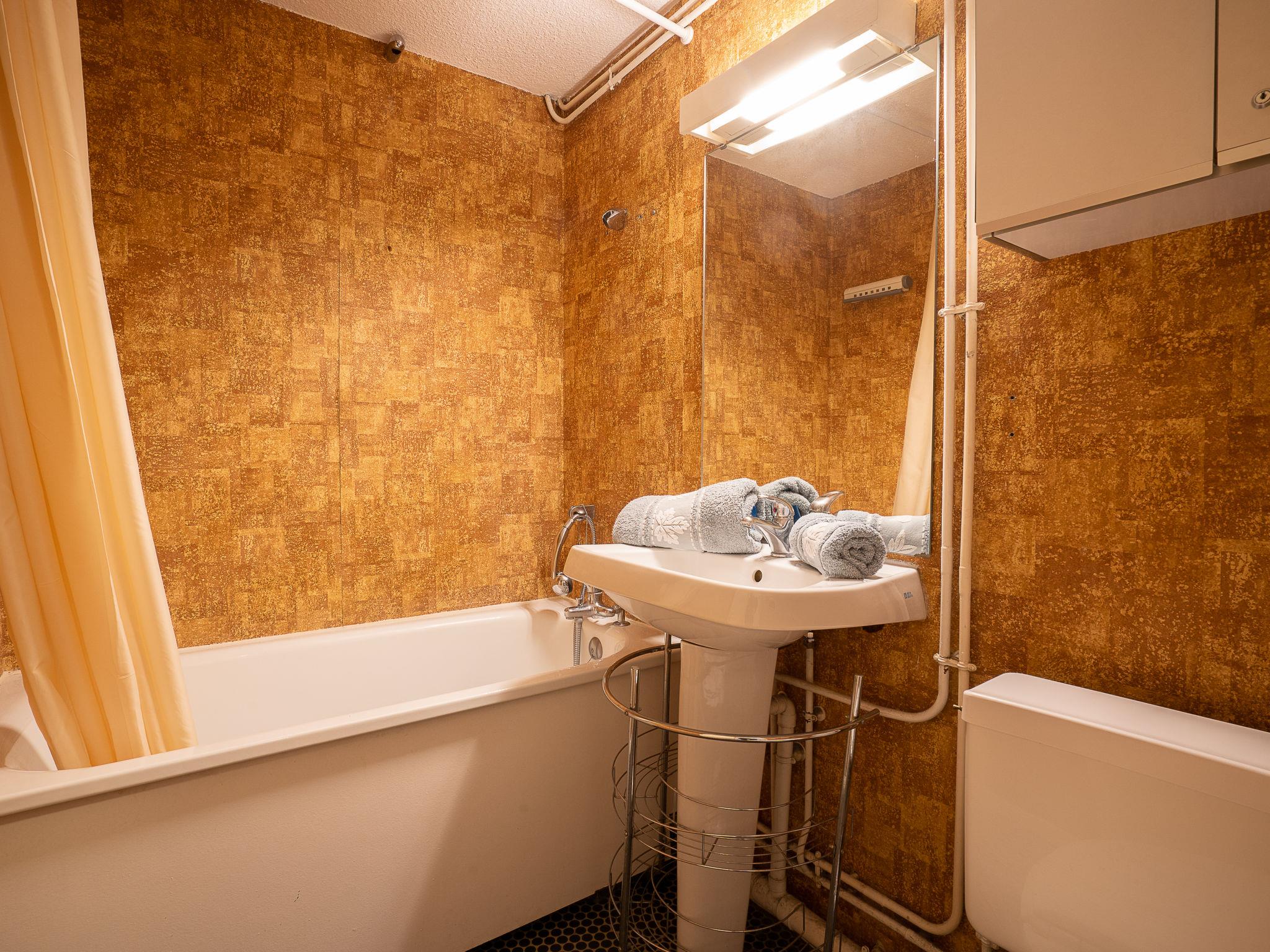 "Asters 1203 Bâtiment B4", 2-room apartment 35 m2 on 2 levels on 2nd floor. Living/dining room with TV (flat screen). Gallery with 1 french bed (160 cm, length 200 cm). Sleeping alcove with 1 x 2 bunk beds (80 cm, length 190 cm). Kitchenette (2 hot plates, kettle, microwave, electric coffee machine). Bath/WC. Electric heating. Balcony, south facing position. Very beautiful view of the mountains and the ski run. Facilities: Internet (WiFi, extra). Please note: maximum 1 pet/ dog allowed. Smoke alarm. Instead of an enclosed bedroom, some sleeping areas are located in an open-plan area (gallery, alcove, etc.). 73257003418SB