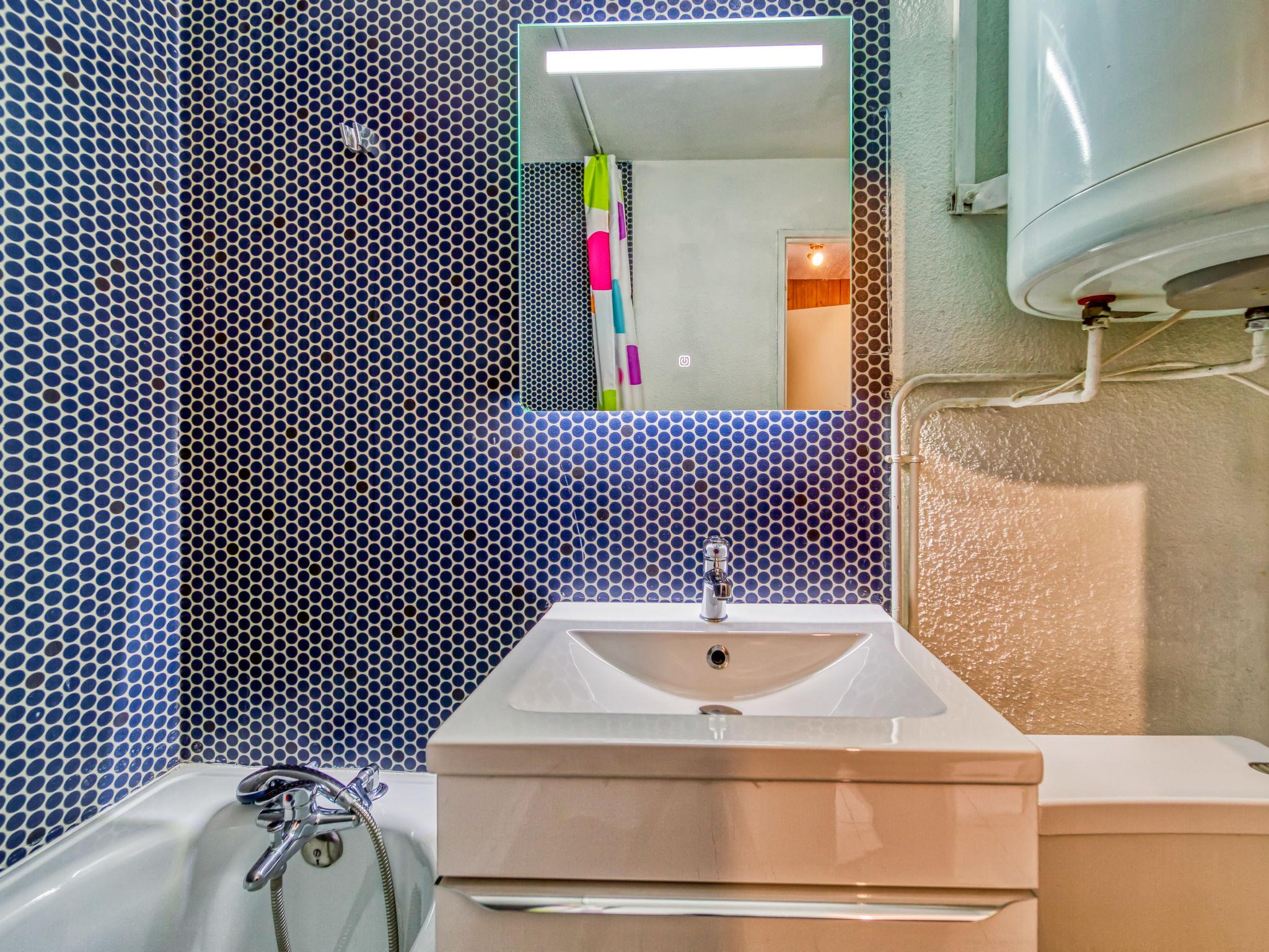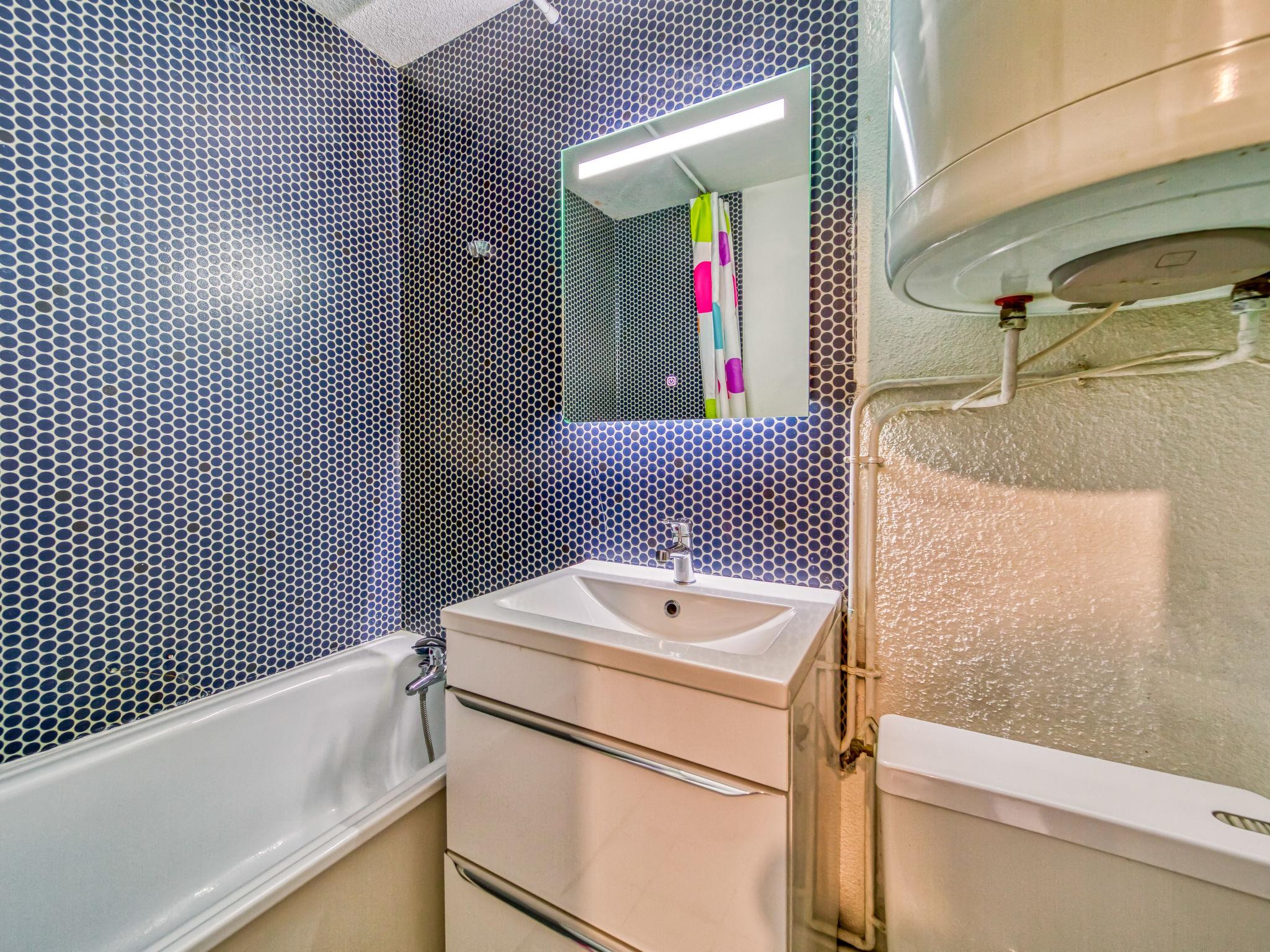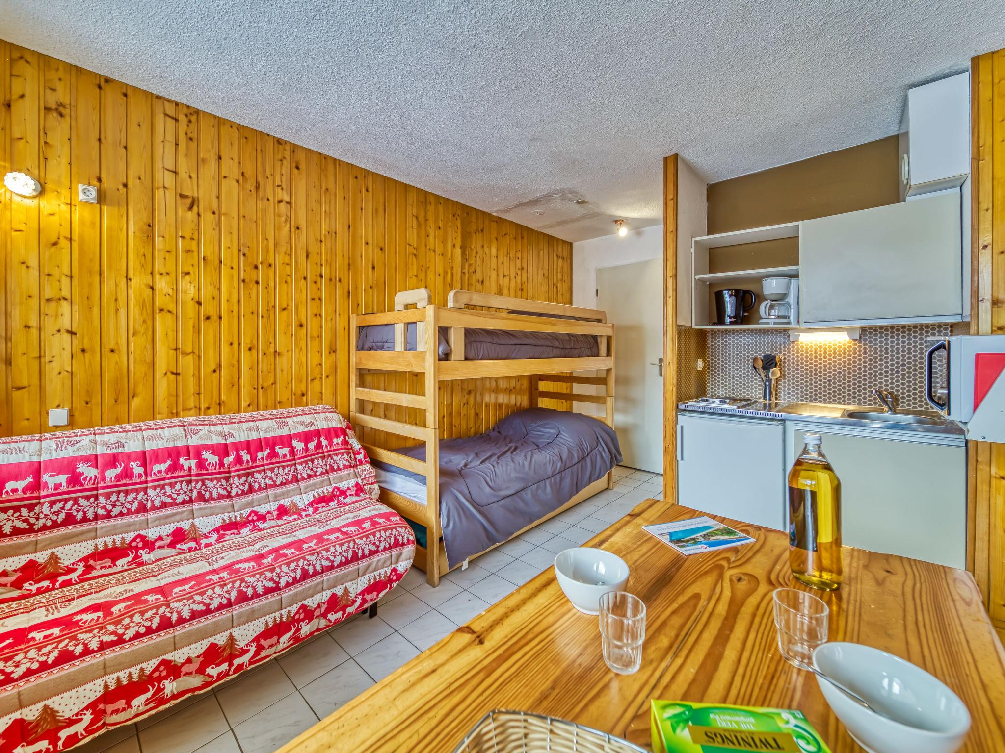 "Asters 18 Bâtiment C1", 1-room studio 18 m2 on 2nd floor. Living/dining room with 1 double sofabed (140 cm, length 190 cm), TV (flat screen). Exit to the balcony. Kitchenette (2 hot plates, mini-oven, microwave, electric coffee machine). Bath/WC. Electric heating. Balcony, south facing position. View of the mountains. Facilities: Internet (WiFi, extra). Please note: smoke alarm. Access to the accommodation: downstairs 2 floors compared to access Parking. 73257003447MX
