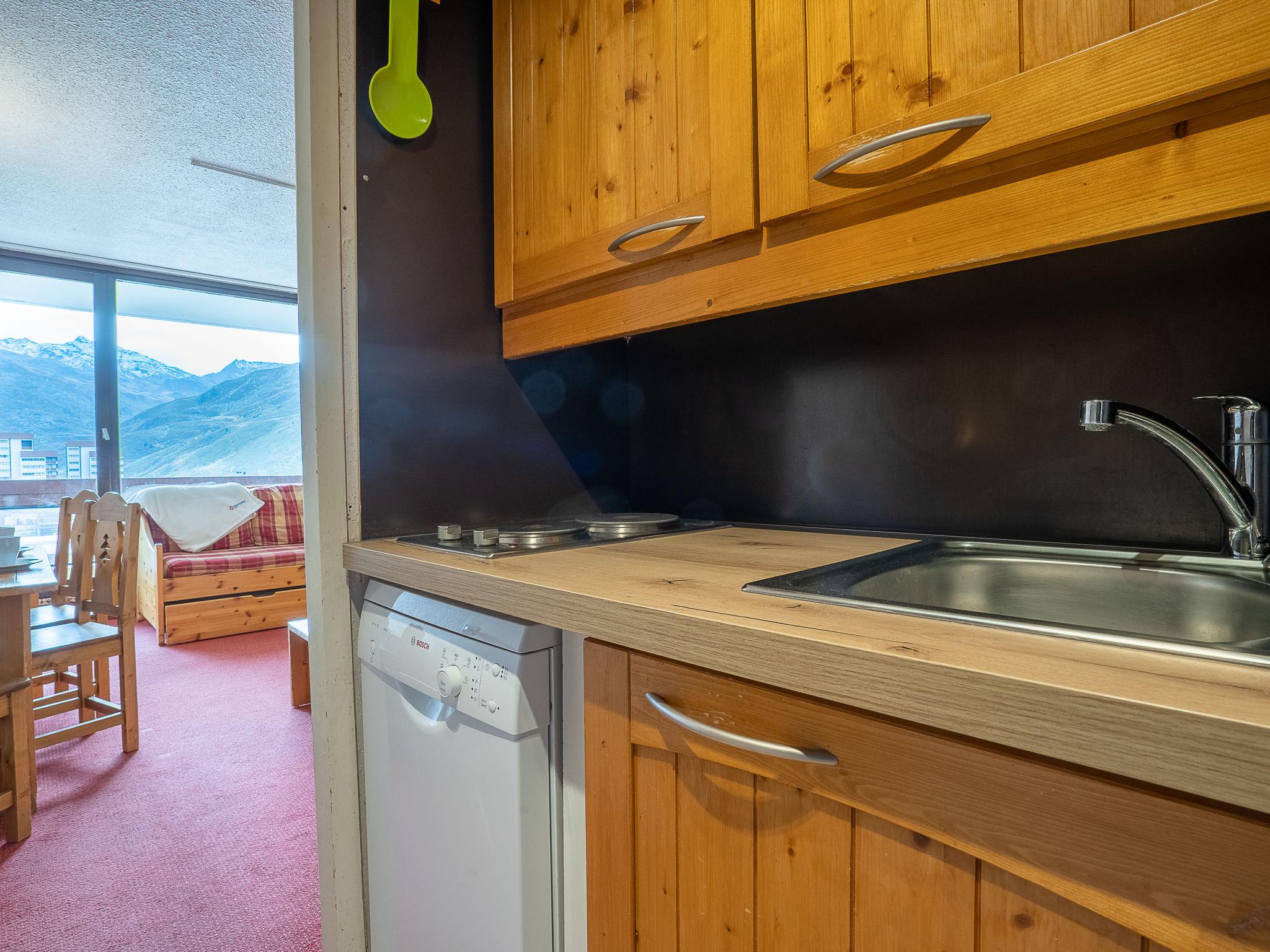 "Chavière 617", 1-room studio 24 m2 on 6th floor, south facing position. Beautiful furnishings: living/dining room with 2 pull-out beds (4 x 80 cm, length 190 cm), TV (flat screen). Exit to the balcony. Kitchenette in the entrance (2 hot plates, mini-oven, dishwasher, kettle, microwave, electric coffee machine). Bathroom, sep. WC. Balcony, south facing position. Very beautiful view of the mountains and the ski run. Facilities: Internet (WiFi, extra). Please note: smoke alarm. 73257005225WF