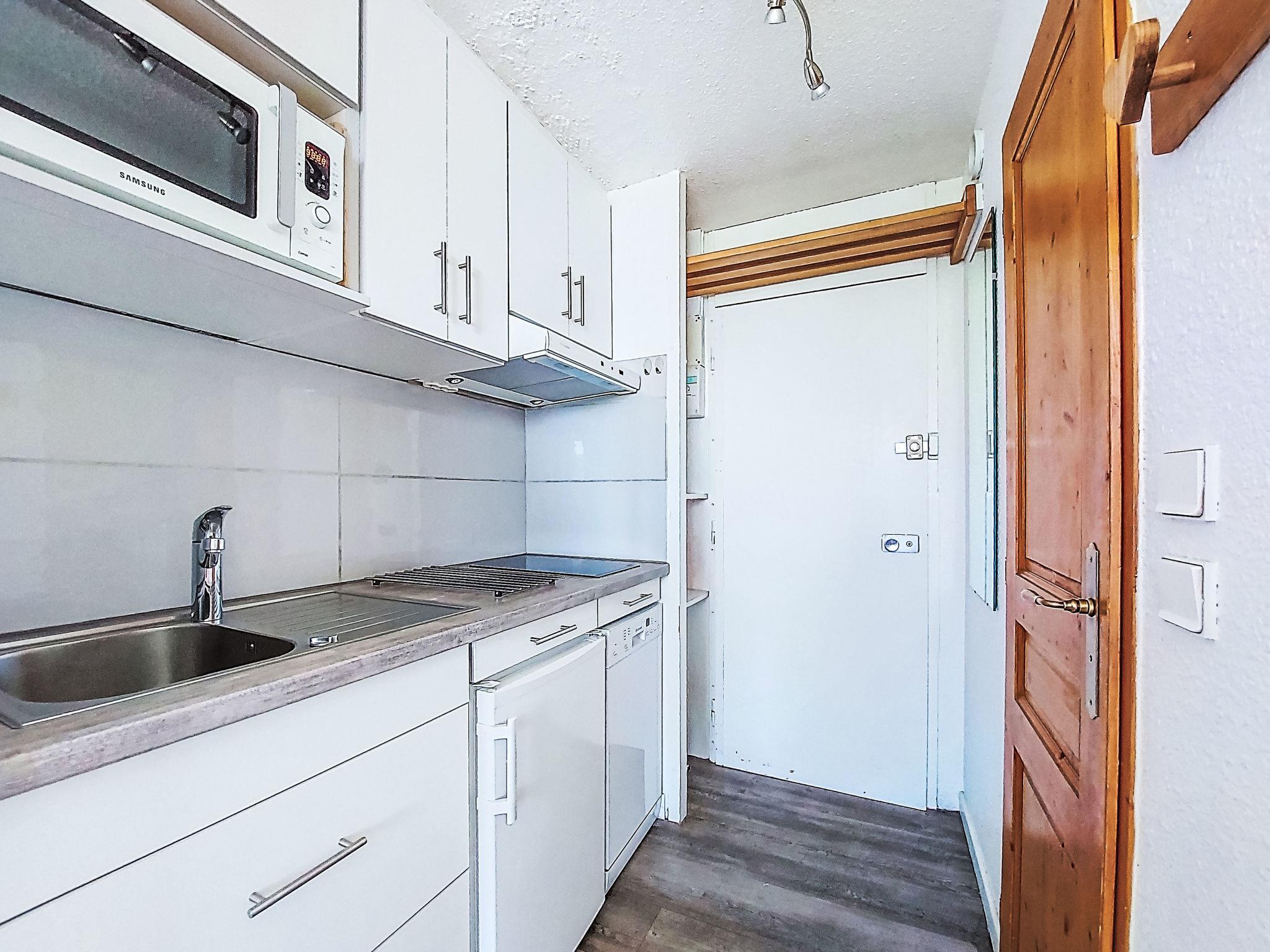 "Chavière 832", 1-room studio 19 m2 on 8th floor. Beautiful furnishings: living/dining room with 1 bed (80 cm, length 190 cm), 1 pull-out bed (2 pers. 2 x 80 cm, length 190 cm), TV (flat screen). Exit to the balcony, north facing position. Kitchen in the entrance (dishwasher, 2 ceramic glass hob hotplates, kettle, microwave, electric coffee machine). Bath/WC. View of the valley. Facilities: Internet (WiFi, extra). Please note: smoke alarm. 73257005243WF