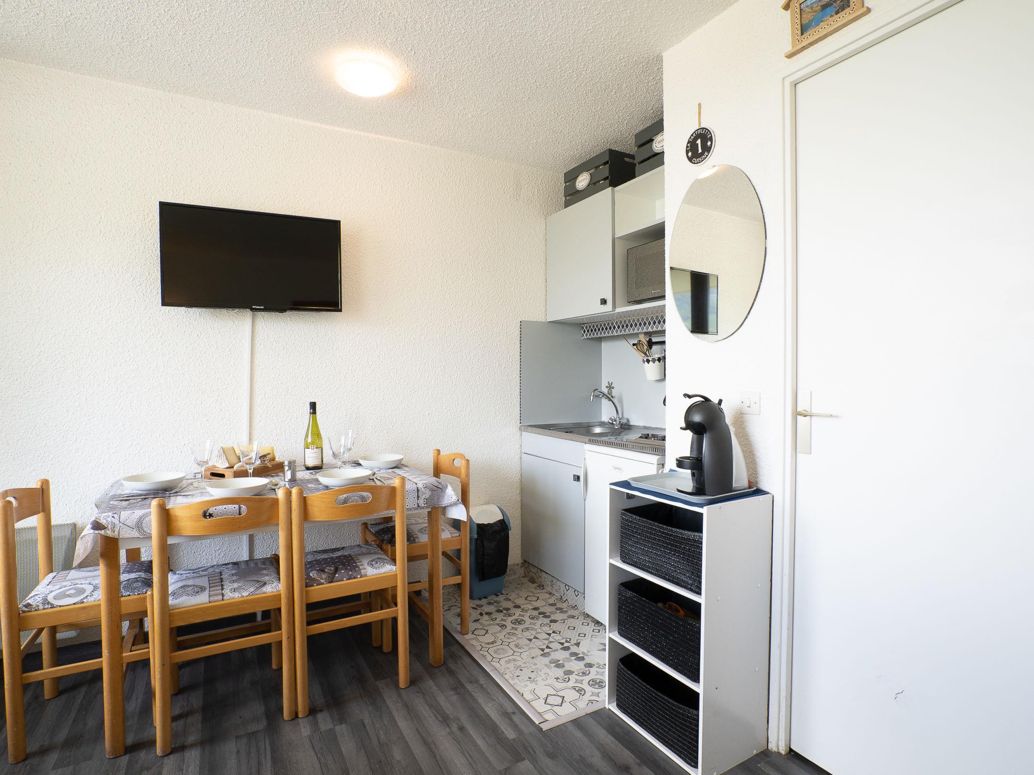 "Médian 422", 1-room studio 20 m2 on 4th floor. Comfortable and beautiful furnishings: living/dining room with 1 double sofabed (2 x 80 cm), TV (flat screen). Exit to the balcony. Entrance hall with 1 x 2 bunk beds (80 cm, length 190 cm). Kitchenette (2 ceramic glass hob hotplates, toaster, kettle, electric coffee machine, raclette grill, combination microwave, fondue Set (cheese)). Bath/WC. Electric heating. Small balcony, north facing position. Beautiful view of the valley. Facilities: Internet (WiFi, extra). Please note: maximum 1 pet/ dog allowed. Smoke alarm. 73257006117MX