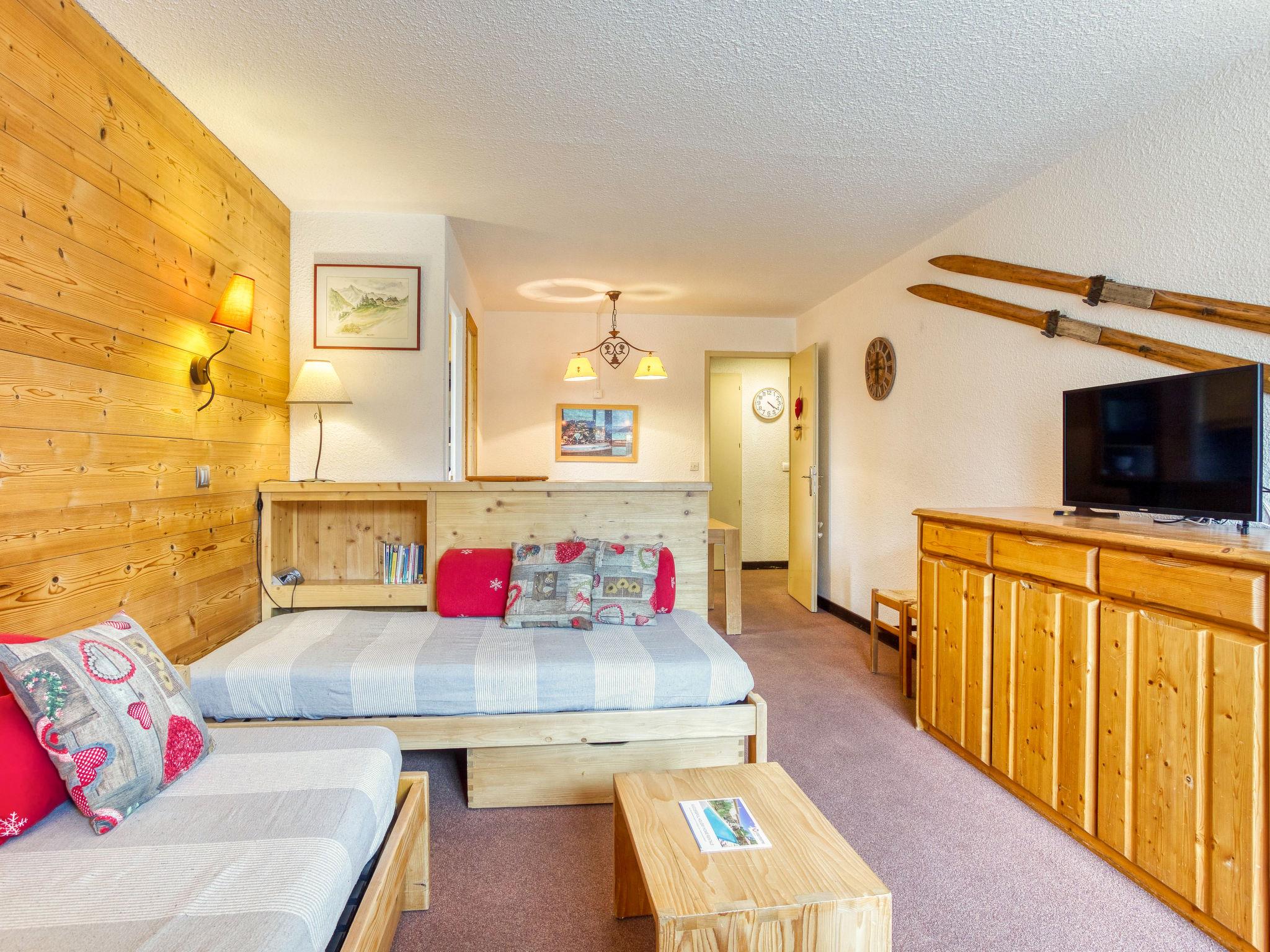 "Chanteneige 301", 2-room apartment 45 m2 on 3rd floor. Spacious, very comfortable and beautiful furnishings: large living/dining room with 1 bed (90 cm, length 190 cm), 1 pull-out bed (2 pers. 2 x 90 cm, length 190 cm), TV (flat screen). 1 room with 2 beds (90 cm, length 190 cm). Small kitchen (oven, dishwasher, 4 ceramic glass hob hotplates, kettle, microwave, electric coffee machine, raclette grill). Bathroom, sep. WC. Heating. South-west facing position. Covered balcony. View of the mountains. Facilities: washing machine, baby cot. Internet (WiFi, extra). Please note: non-smokers only. Smoke alarm. 73257004534SB