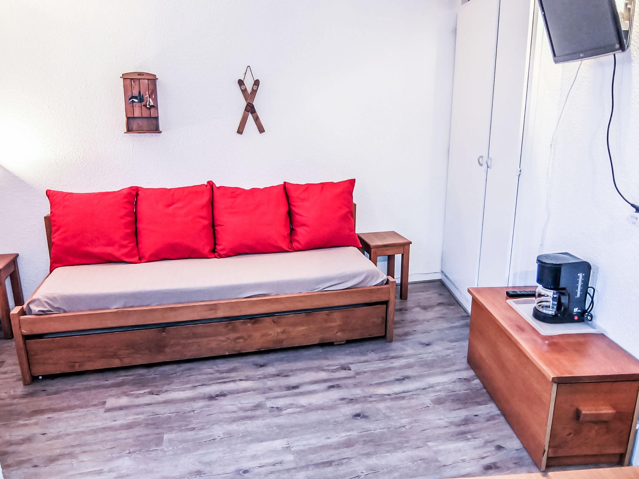 "Armoise 51", 1-room apartment 18 m2 on 4th floor. Comfortable and beautiful furnishings: living/dining room with 1 pull-out bed (2 pers. 2 x 80 cm), TV (flat screen). Exit to the balcony. Kitchenette in the entrance (2 hot plates, kettle, microwave, electric coffee machine). Shower/WC. Heating. Balcony, north-east facing position. Facilities: Internet (WiFi, extra). Please note: non-smokers only. Smoke alarm. 73257008073MX