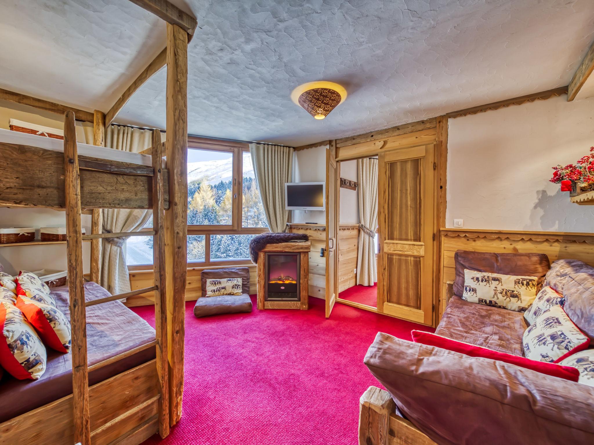 "Belleville Caron 1 - 1213", 4-room apartment 67 m2 on 12nd floor. Spacious, very comfortable and wooden furniture furnishings: large living/dining room with TV (flat screen), DVD. Exit to the balcony. 1 large room with 1 french bed (140 cm, length 190 cm), TV (flat screen). 1 open large room with curtain with 1 x 2 bunk beds (80 cm, length 190 cm), 1 pull-out bed (2 pers. 2 x 80 cm, length 190 cm), TV (flat screen). 1 large room with sliding door with 1 french bed (140 cm, length 190 cm), shower/WC and TV (flat screen). Open kitchen (oven, dishwasher, 3 induction hot plates, toaster, kettle, microwave, electric coffee machine, Capsules for coffee machine (Nespresso) extra, raclette grill). Shower, sep. WC. Underfloor heating. Balcony, south facing position. Very beautiful view of the mountains, the valley and the ski run. Facilities: hair dryer. Internet (WiFi, extra). Please note: non-smokers only. Smoke alarm. 73257004886HT