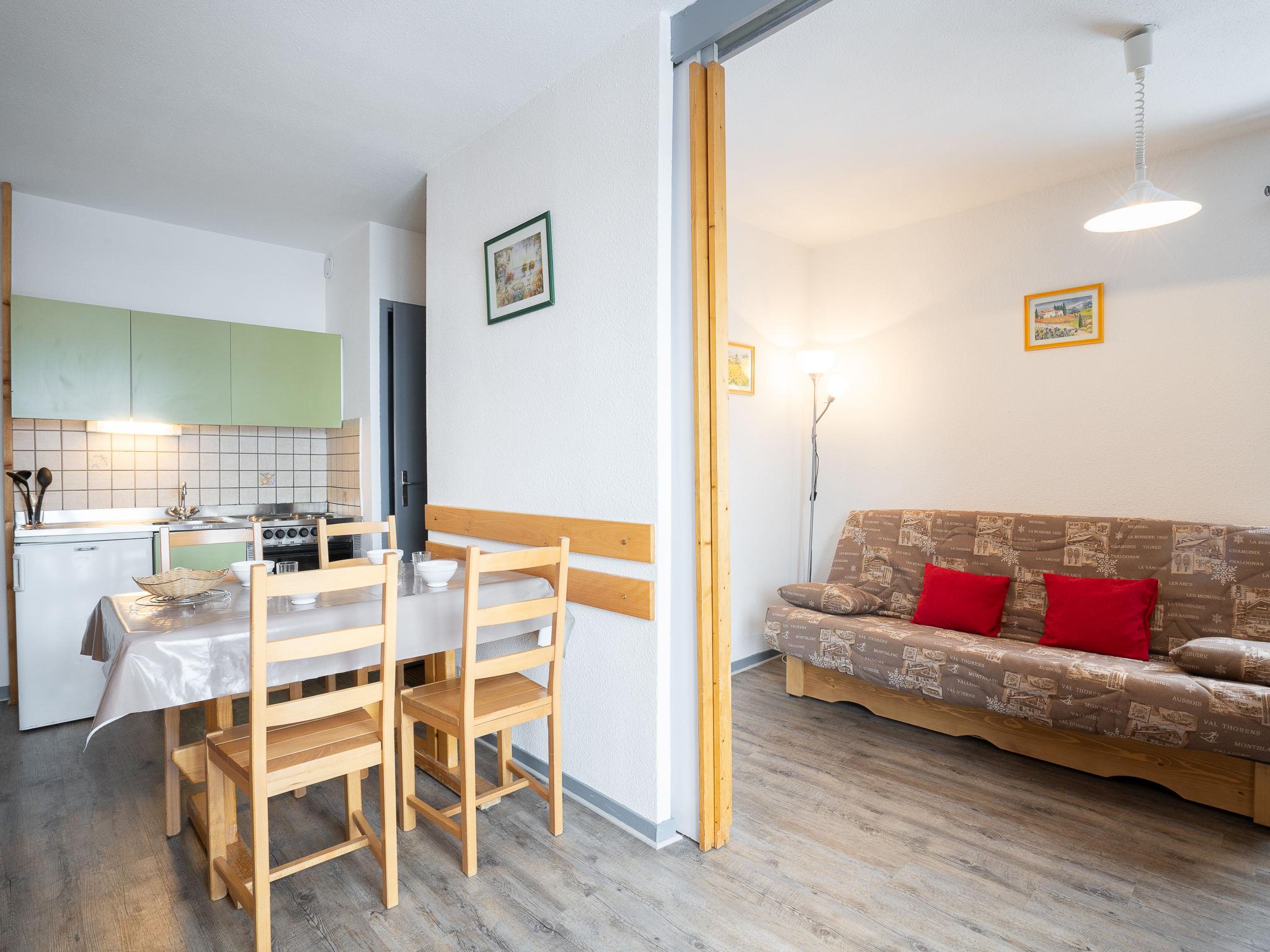 "Jettay Bruant 57", 2-room apartment 24 m2 on 1st floor. Beautiful furnishings: living/dining room with 1 pull-out bed (2 pers. 2 x 80 cm, length 190 cm), TV (flat screen). Exit to the balcony. 1 room with sliding door with 1 sofabed (140 cm, length 190 cm). Kitchenette (4 hot plates, kettle, microwave, electric coffee machine). Bathroom, sep. WC. Electric heating. Balcony, west facing position. Beautiful view of the mountains. Facilities: Internet (WiFi, extra). Please note: maximum 1 pet/ dog allowed. Smoke alarm. Bruant entrance.