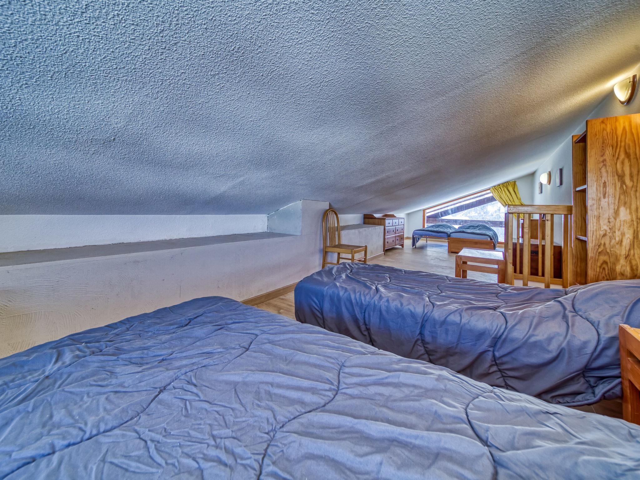 "Balcon d'Olympie 745 - B", 2-room apartment 35 m2 on 2 levels on 7th floor. Beautiful furnishings: living/dining room with TV (flat screen). Exit to the balcony. 1 small room with 2 beds (80 cm, length 190 cm). Kitchenette (dishwasher, 2 ceramic glass hob hotplates, kettle, electric coffee machine, combination microwave). Shower, sep. WC. Heating. Upper floor: (spiral staircase) large gallery 32 m2, with sloping ceilings, ceiling height 80 - 180 cm with rooflight with 4 beds (80 cm, length 190 cm). Large balcony, south facing position. Beautiful view of the mountains. Facilities: Internet (WiFi, extra). Please note: maximum 1 pet/ dog allowed. Smoke alarm. The gallery is 26 m2 and height of ceiling is 180 cm. Instead of an enclosed bedroom, some sleeping areas are located in an open-plan area (gallery, alcove, etc.). 73257005555WF