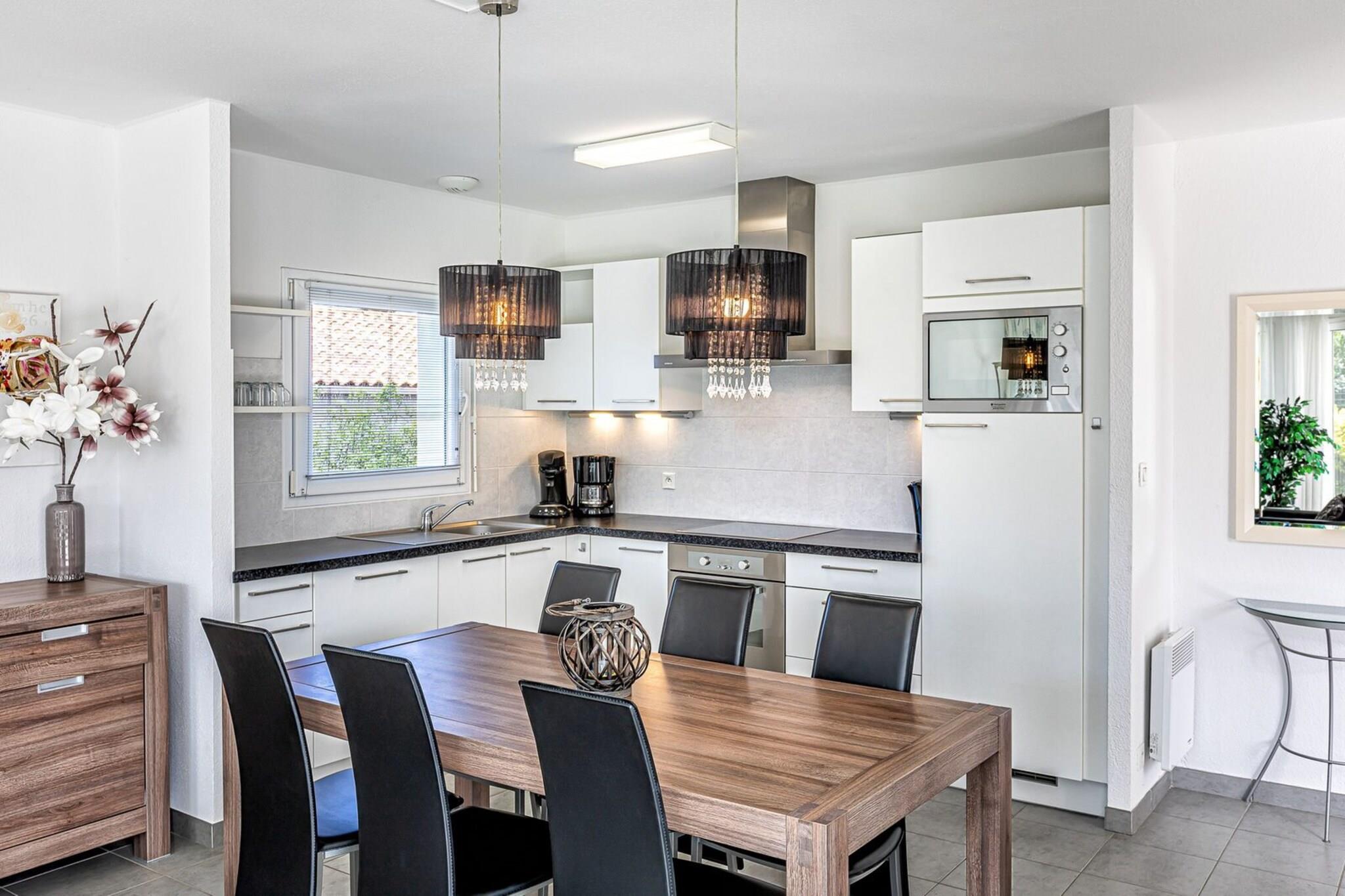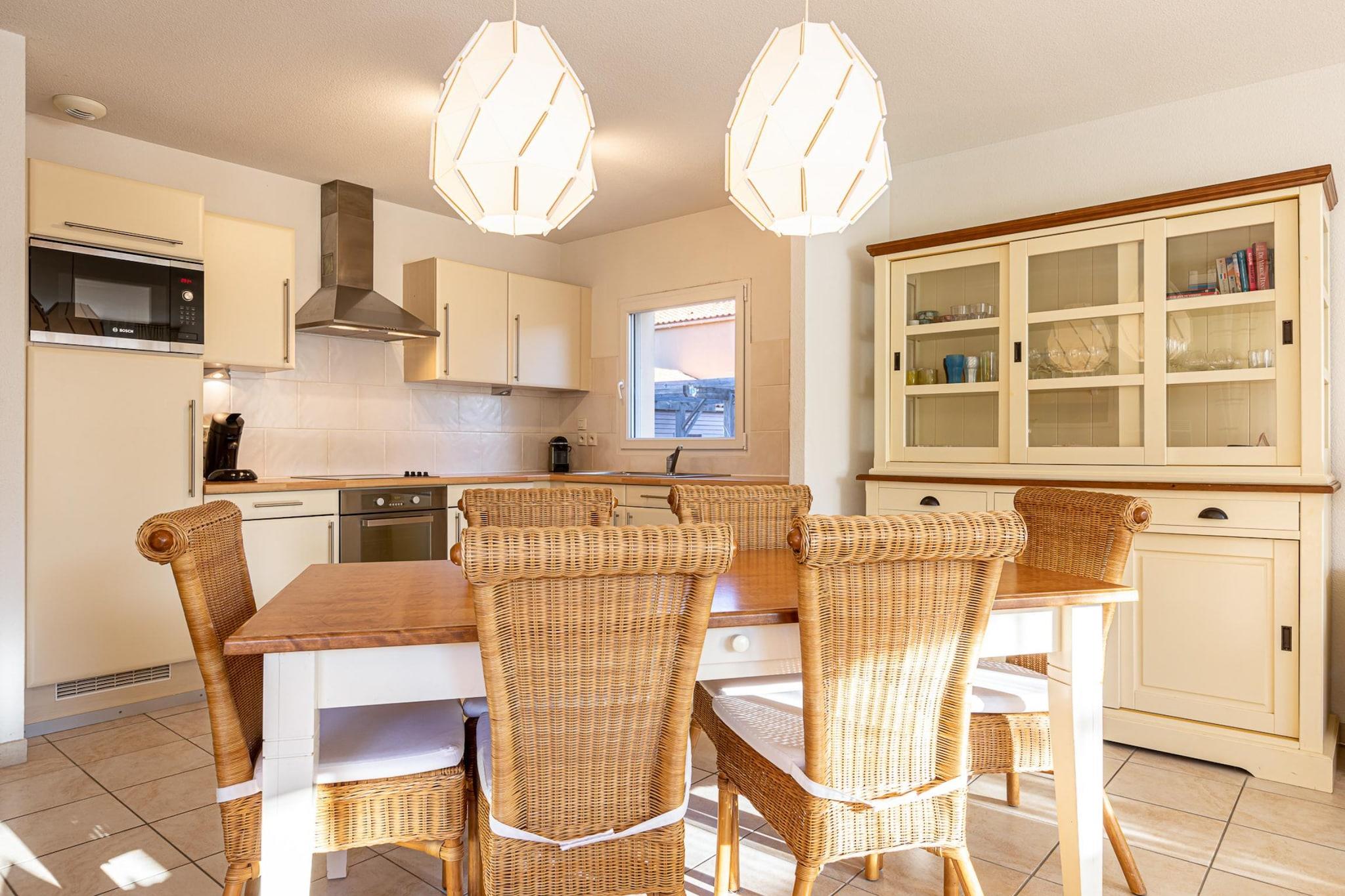 Denne 6-personers villa med swimmingpool dækker et areal på 80m2. Der er 3 soveværelser til 6 personer (sovepladserne varierer afhængigt af villaen, og der kan være en køjeseng i et af soveværelserne), 1 badeværelse med badekar og/eller bruser, toilet, en stor stue med fladskærms-tv, opholdsområde med sofaer, opholdsområde med spisebord, et fuldt udstyret køkken med ovn, køleskab, opvaskemaskine, kogeplader, kaffemaskine og brødrister. Hver villa har en vaskemaskine. Udenfor kan du nyde din private have og opvarmede swimmingpool (fra slutningen af april til slutningen af september). Poolen kan opvarmes i april mod et tillæg på EURO25 pr. dag, afhængigt af vejrforholdene, som skal specificeres mindst 5 dage før ankomst. Nogle villaer er også udstyret med en grill, så tøv ikke med at spørge efter en, når du reserverer. Vil du gerne have dit kæledyr med? Det er muligt, men ikke i alle villaer på grund af begrænset tilgængelighed. Kontakt venligst vores kundeservice. I dette hjørne af paradis omgivet af grønne områder kan du slappe af med hele familien ved den private swimmingpool eller vælge mellem en bred vifte af aktiviteter - vandsport og vandreture for at opdage et overdådigt og uspoleret naturmiljø.