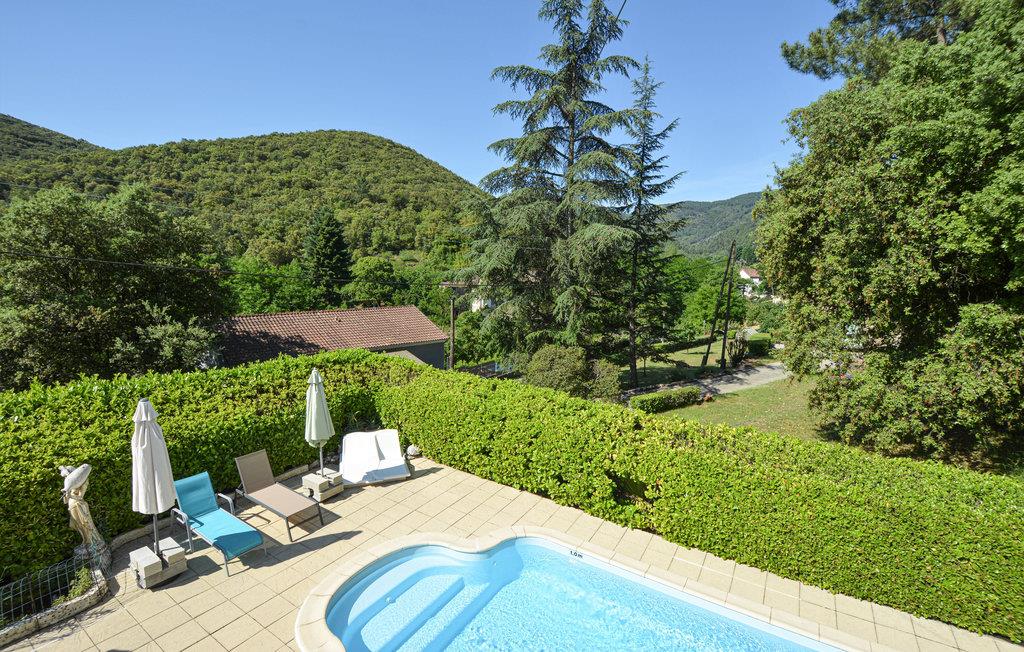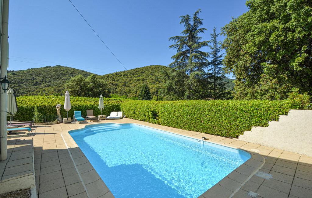 Et attraktivt feriehus med smagfuld møblering og samtidig veludstyret med diverse faciliteter. Der er en formidabel udsigt fra sommerhuset samt en swimmingpool. På første sal er der lounge, køkken, spisestue, opbevaringsrum, badeværelse og tre soveværelser med dobbeltsenge. Huset har en fredelig beliggenhed i regionalnaturparken Cevennes, som er et paradis for jer der elsker natur, vandring eller cykling. Sommerhuset kan også fungere som en rigtig god base, i mens I oplever den maleriske region i det sydlige Frankrig. Besøg nogle af de skønne landsbyer, som f. eks Saint Ambroix, La Grande Combe, Anduze, Cevennes og Vezenobres. I kan også tage på heldagsture til Nimes, Montpellier og Alés samt opleve den gyldne sandstrand ved Middelhavet. Det kan varmt anbefales at besøge Pont du Gard, hvor I kan opleve gammelt romersk ingeniørarbejde. Besøg også den smukke og berømte naturpark i La Camargue. Nærmeste butikker, caféer, restauranter og barer er kun 3 km væk.
