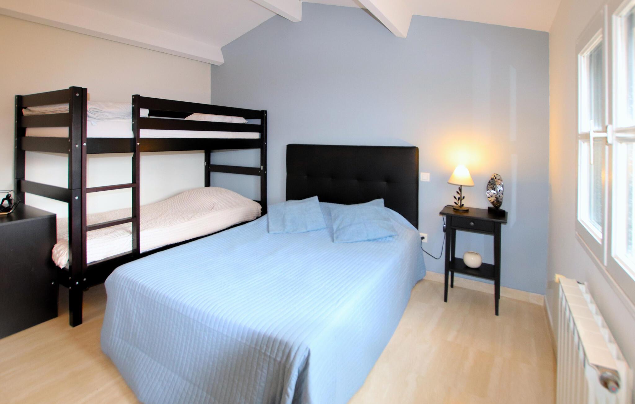 Denne rummelige og stilfulde villa byder jer velkommen højt over den charmerende landsby Les Vans. Eksperimenter med urter fra Provence i det rummelige køkken og fejr dagens måltider i den lyse spiseplads. Sæt jer ned i de komfortable sofaer, nyd en harmonisk aften med spil med familien og tænd for brændeovnen på køligere dage.