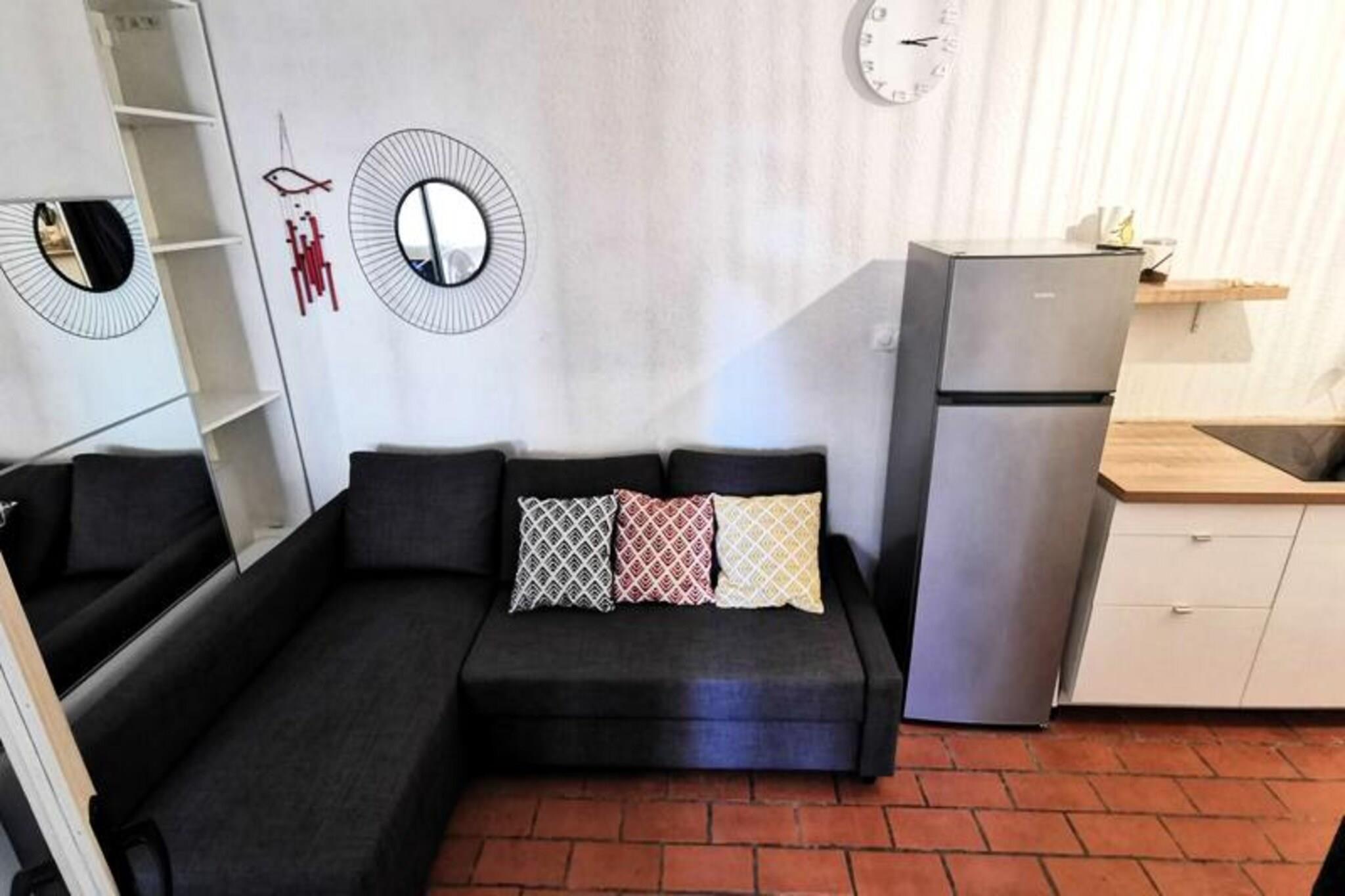 Forestil dig at vågne op til den blide lyd af bølger og Middelhavets salte brise, hvor dit hyggelige duplex-sommerhus tilbyder en betagende havudsigt og direkte adgang til stranden kun 20 meter væk. Dette charmerende tilflugtssted er perfekt til familier eller små grupper, der søger en rolig ferie ved havet, hvor komfort blandes med den franske kysts naturlige skønhed. Uanset om du nipper til kaffe på en af ??de to terrasser eller nyder varmen på verandaen, føles hvert øjeblik her som en fredfyldt ferie. \n\nIndenfor er sommerhuset omhyggeligt designet til at maksimere plads og komfort. Stuen har en dobbelt sovesofa, mens soveområdet ovenpå har køjesenge og en enkeltseng, ideel til et barn. Moderne faciliteter såsom tv, keramisk kogeplade, kombineret mikrobølgeovn og køleskab med fryser sikrer et bekvemt ophold. Med et samlet areal på 32 m² og to 9 m² terrasser inviterer denne sydøstvendte ejendom dig til at nyde solskinnet og den fantastiske udsigt når som helst på dagen. \n\nBeliggenheden er uovertruffen, med stranden kun få skridt væk og bymidten kun 700 meter fra din dør. Delt parkering ved boligen øger bekvemmeligheden og gør det nemt at udforske det omkringliggende område. Uanset om du slentrer langs sandstrandene, udforsker lokale butikker og restauranter eller blot slapper af i dit sommerhus, tilbyder denne destination den perfekte balance mellem fritid og eventyr. \n\nVælg dette kystparadis til din næste ferie og skab uforglemmelige minder ved Middelhavet. Med sine idylliske omgivelser og gennemtænkte faciliteter er dette duplex-sommerhus din port til den ultimative kystoplevelse.