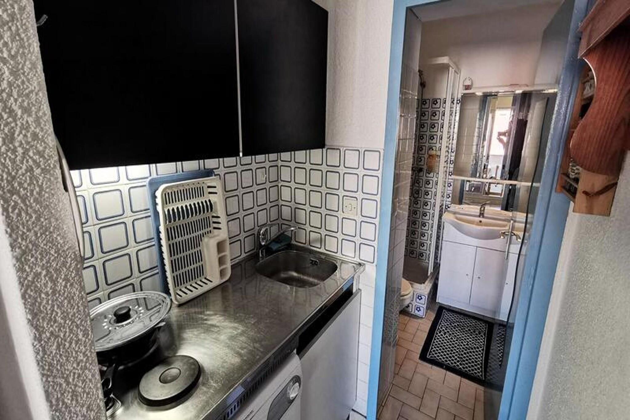 Denne hyggelige studiehytte er designet til op til 4 personer og tilbyder et komfortabelt opholdsrum med en sovesofa til 2 personer og en separat kabine med køjesenge. Ejendommen er ikke kæledyrsvenlig, hvilket sikrer et fredeligt ophold for alle gæster. Det er placeret på anden sal, hvilket giver en behagelig østvendt eksponering, perfekt til at nyde morgensolen. Hytten er ideel til små familier eller grupper, der ønsker at nyde en ferie ved havet. Kun 100 meter fra stranden og 400 meter fra byens centrum giver beliggenheden nem adgang til en række attraktioner, caféer og lokale markeder. Uanset om du ønsker at slappe af på stranden eller udforske nærliggende butikker og spisesteder, er alt inden for gåafstand. Det omkringliggende område giver også masser af muligheder for udendørs aktiviteter, hvilket gør det til et fantastisk sted for dem, der søger både afslapning og eventyr. Studiehytten har et veludstyret tekøkken med elektrisk kogeplade, mikroovn og køleskab med fryser, perfekt til at tilberede dine måltider under dit ophold. Derudover er der en vaskemaskine for ekstra bekvemmelighed. Med et samlet areal på 29 m² byder pladsen på alt det nødvendige for et behageligt og selvforsynende ophold. Gæsterne kan også drage fordel af den lukkede private parkeringsplads med en barriere for ro i sindet.