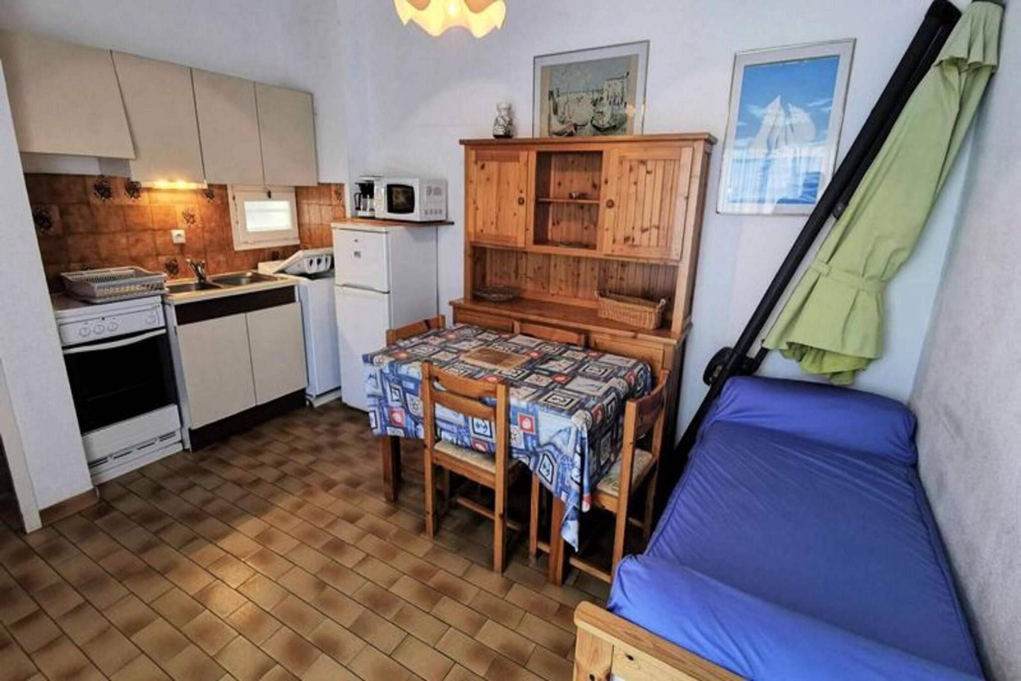 Denne hyggelige toværelses lejlighed er perfekt til op til 4 personer, og tilbyder et behageligt ophold kun en kort gåtur fra stranden. I stuen er der udtrækssenge, mens soveværelset har en dobbeltseng. Lejligheden er ikke kæledyrsvenlig, hvilket sikrer et fredeligt miljø. Med en terrasse på 9 m² nyder lejligheden en nord-øst eksponering, så du kan nyde naturligt lys og frisk luft. Beliggende kun 100 meter fra stranden og 700 meter fra byens centrum, er denne lejlighed ideelt beliggende for dem, der nyder både afslapning og udforskning. I nærheden finder du caféer, restauranter og markeder, der tilbyder masser af muligheder for spisning og shopping. Uanset om du vil slappe af ved havet eller udforske lokale attraktioner, er alt inden for rækkevidde. Lejligheden er udstyret med et fuldt funktionelt køkken, herunder elektriske kogeplader, ovn, mikroovn, køleskab med fryser og vaskemaskine til din bekvemmelighed. Opholdsstuen er designet til at være både praktisk og hyggelig og giver alt det nødvendige for et behageligt ophold. Med privat parkering tilgængelig, kan du nyde problemfri adgang til ejendommen under dit besøg.