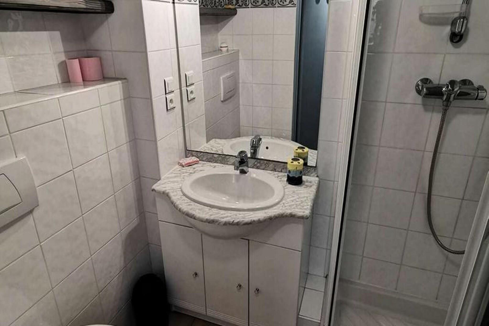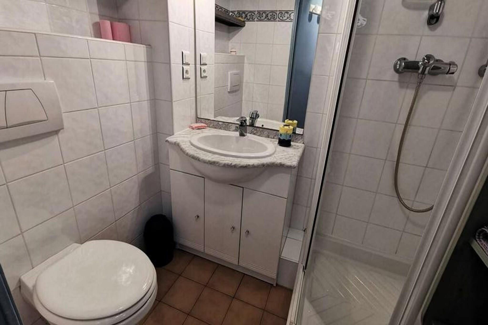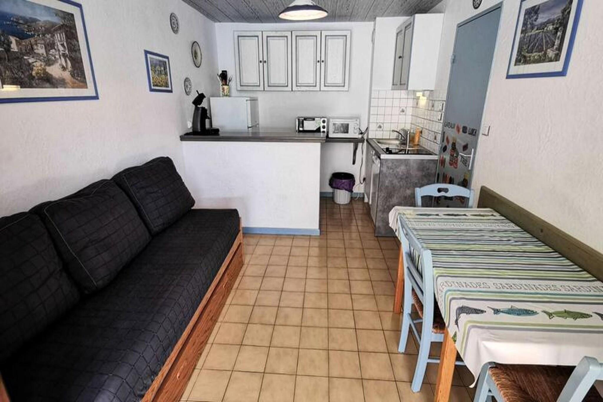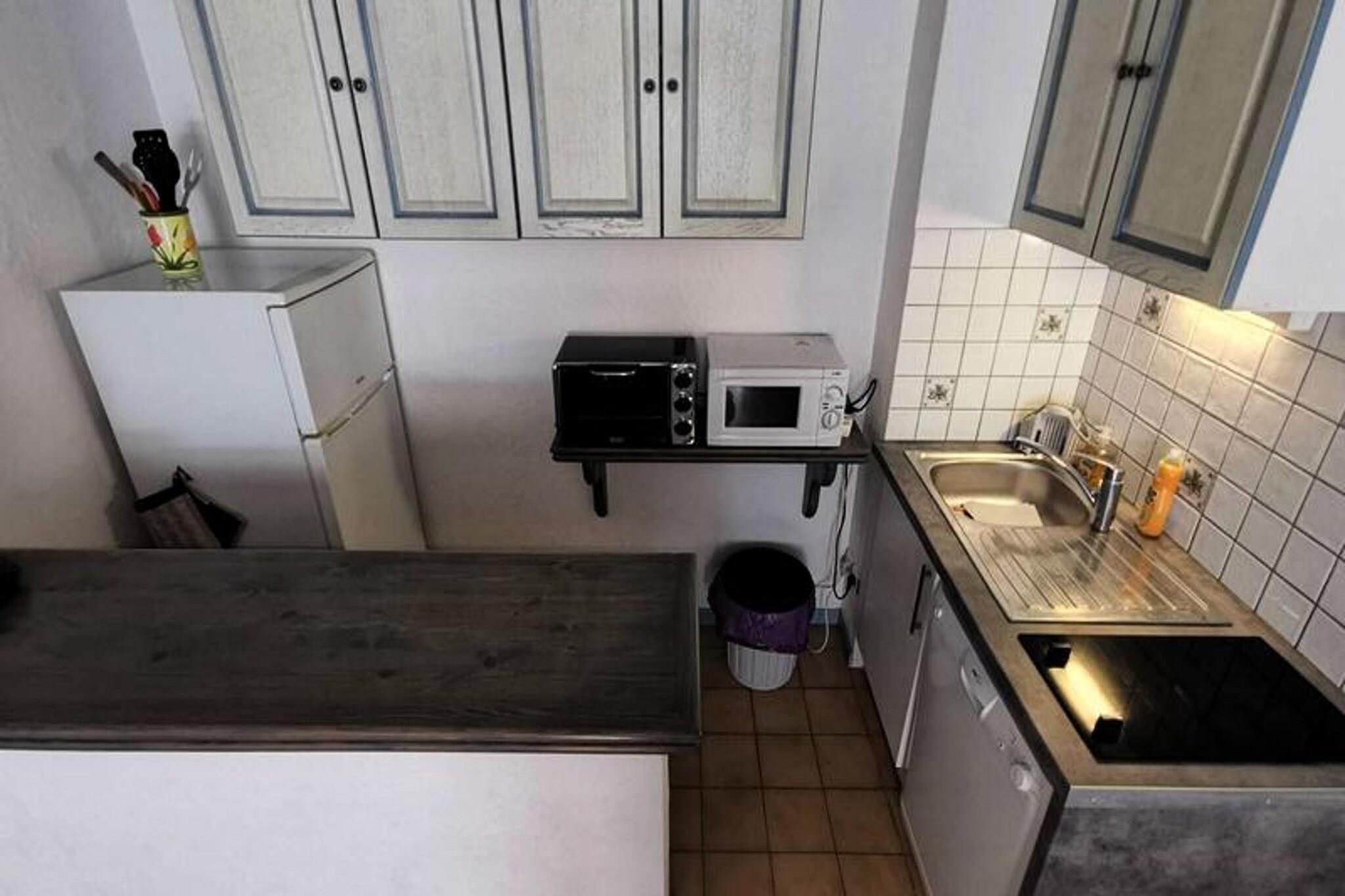 Denne hyggelige toværelses lejlighed, beliggende i stueetagen, kan rumme op til fire personer. Den har en stue med en sovesofa for 2 personer og et soveværelse med en komfortabel dobbeltseng. Lejligheden er ikke kæledyrsvenlig, hvilket sikrer et roligt og fredeligt miljø for alle gæster. Med en sydvendt terrasse kan du nyde masser af naturligt sollys. Kun 100 meter fra stranden er det et ideelt sted for strandelskere, der søger let adgang til vandet. Ejendommen er bekvemt beliggende med en række attraktioner i nærheden. Stranden ligger kun en kort gåtur væk, mens centrum af byen med caféer, butikker og lokale markeder kun ligger 1 km fra lejligheden. Der ligger et supermarked 500 meter fra ejendommen, som tilbyder et stort udvalg af dagligvarer til dem, der foretrækker at lave mad derhjemme. Området byder også på en afslappende atmosfære, perfekt til afslappede gåture og nyde havets charme. Indvendigt er lejligheden fuldt udstyret til et behageligt ophold. Køkkenet er udstyret med elektriske kogeplader, mikroovn, opvaskemaskine og køleskab med fryser, hvilket giver mulighed for nem tilberedning af måltider. Der er også en vaskemaskine for ekstra bekvemmelighed. Det moderne badeværelse byder på alle nødvendige faciliteter, hvilket sikrer en behagelig og afslappende oplevelse for gæsterne. Lejlighedens rummelige terrasse er perfekt til udendørs spisning eller til at slappe af efter en dag på stranden.