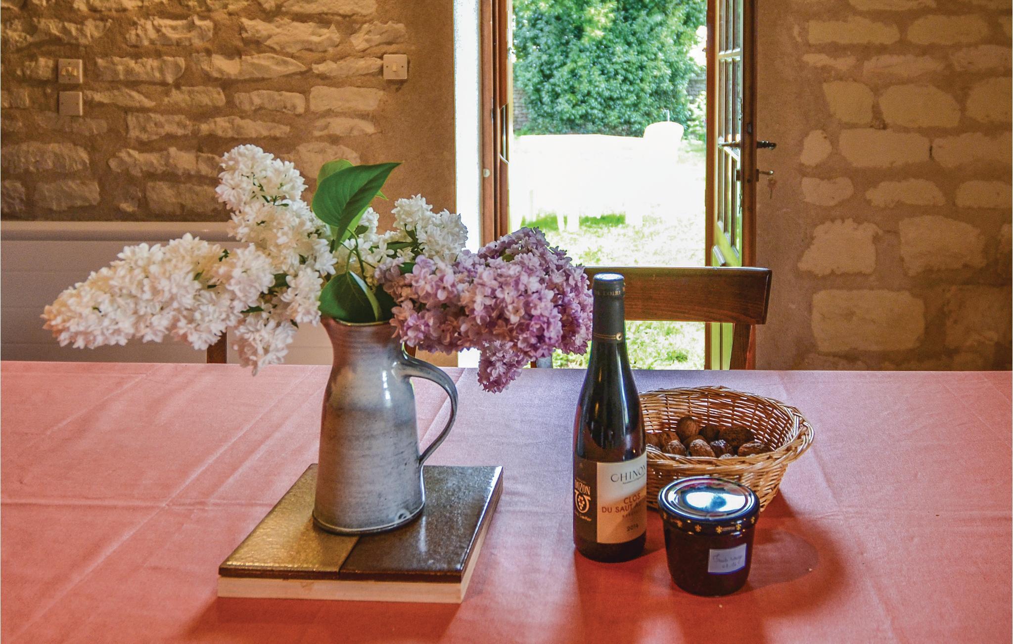 Fordyb jer i freden og skønheden i landskabet nær Chinon og lad hverdagen bag jer med familien. Gør lækre retter klar i det rummelige landkøkken og nyd jeres måltider i en rustik atmosfære med et glas vin. Vælg jeres personlige yndlingssted mellem de omhyggeligt restaurerede vægge for en spændende læsning eller kom sammen til en hyggelig spilaften.
