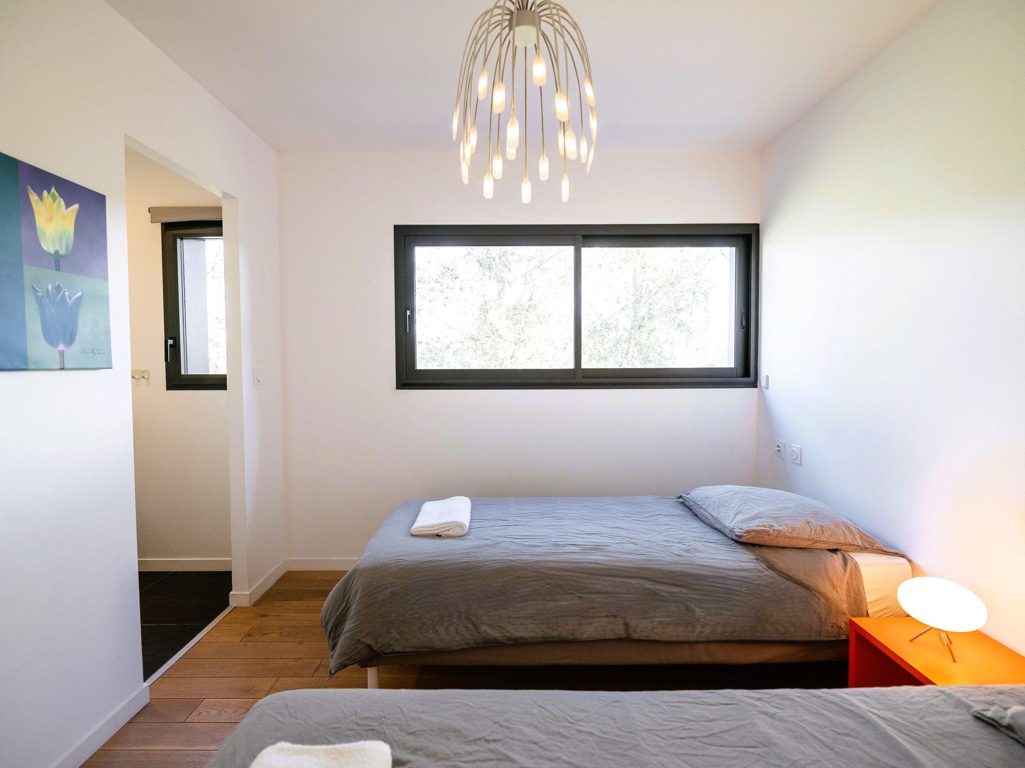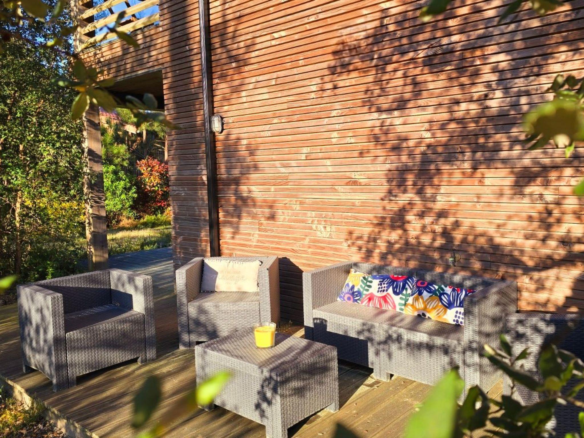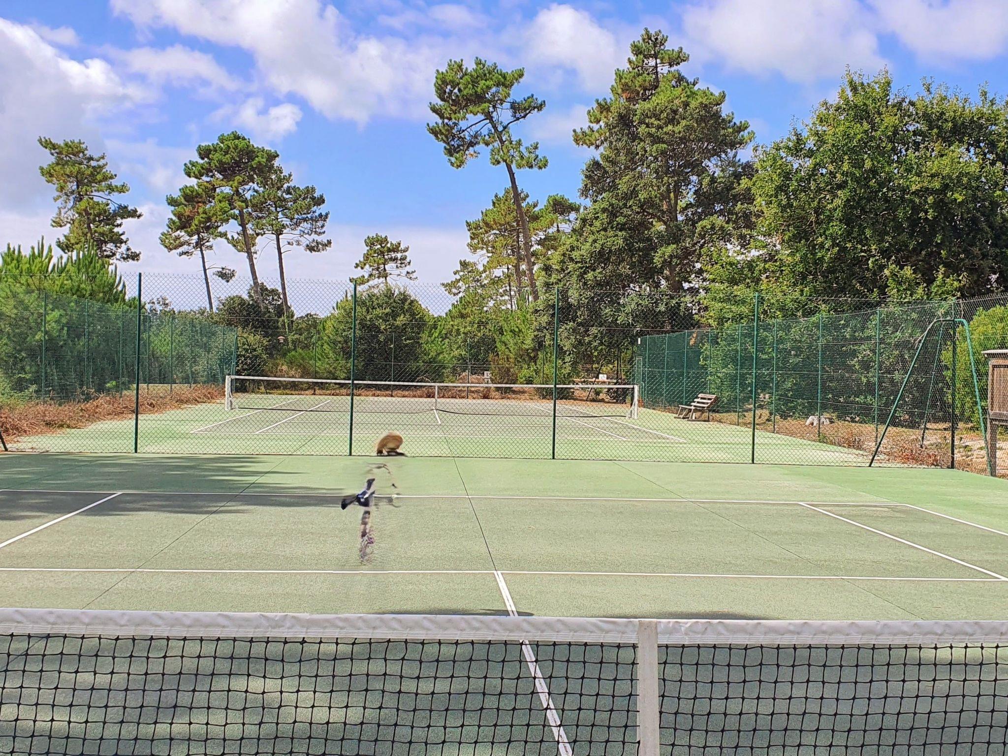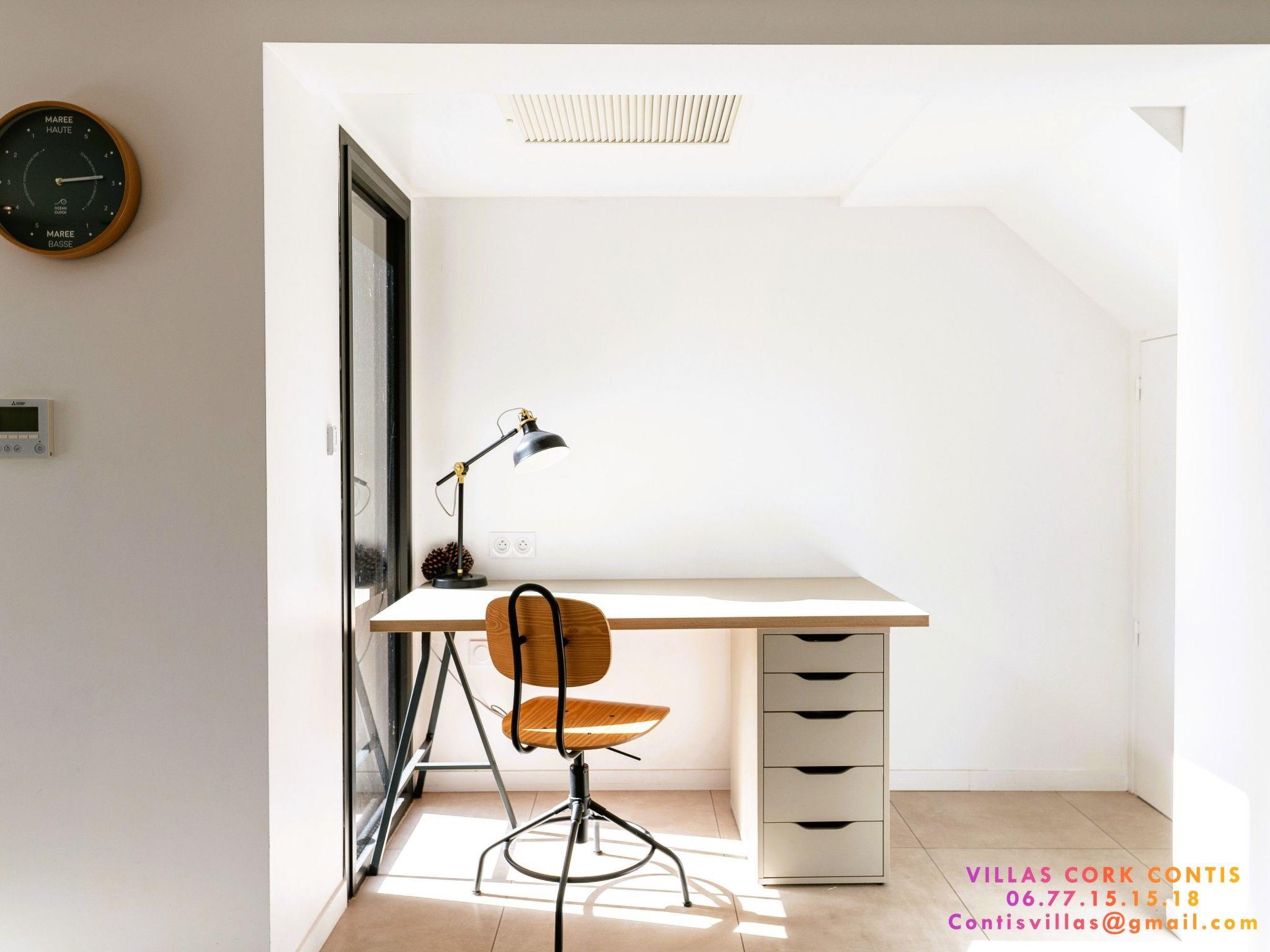 Villas cork contis has 4 bedrooms, each with its own bathroom. Very good quality fittings and bedding. In a private area with tennis court. Situated 1.5km from the centre of Contis, in the heart of the Landes forest. The villa is rated 4* by the Ministry of Tourism. - Ground floor: 1 bedroom with two single beds (80 x 200) and en-suite shower room. 1 WC lounge fully equipped kitchen with island (dishwasher, oven, microwave, induction hob, Nespresso, coffee machine) Three large terraces facing east/south/west - on the first floor: 1 bedroom with a 140 x 200 bed and its shower room and terrace 1 bedroom with a 160 x 200 bed and its shower room 1 bedroom with two 80 x 200 single beds and its bathroom. 1 WC. House on the edge of the forest with access to the wild beach approx. 900 m away by footpath or 1 km away by cycle path. The centre of Contis Plage is 1.5 km away. Television, internet, barbecue, garden furniture, board games and 2 tennis courts are available. A cycle path runs alongside the development, taking you through the forest to Cap de l'Homy, the beach, Saint Julien en Bord, Lit et Mixe, Mimizan...