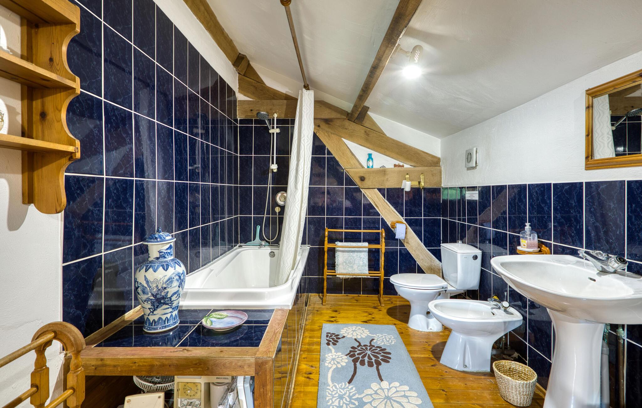Jeres rummelige feriehus kombinerer landlig charme, ro, natur og talrige rekreative muligheder. Find jer til rette i det rummelige interiør. Slap af i sofahjørnet foran den rustikke pejs eller udfordr jeres medrejsende til et spil billard. Den store stue med synlige træbjælker, hyggelig belysning og et barområde skaber en indbydende atmosfære. Nyd hyggelige aftener med gode snakke og lækre måltider her eller ved det stilfulde spisebord.