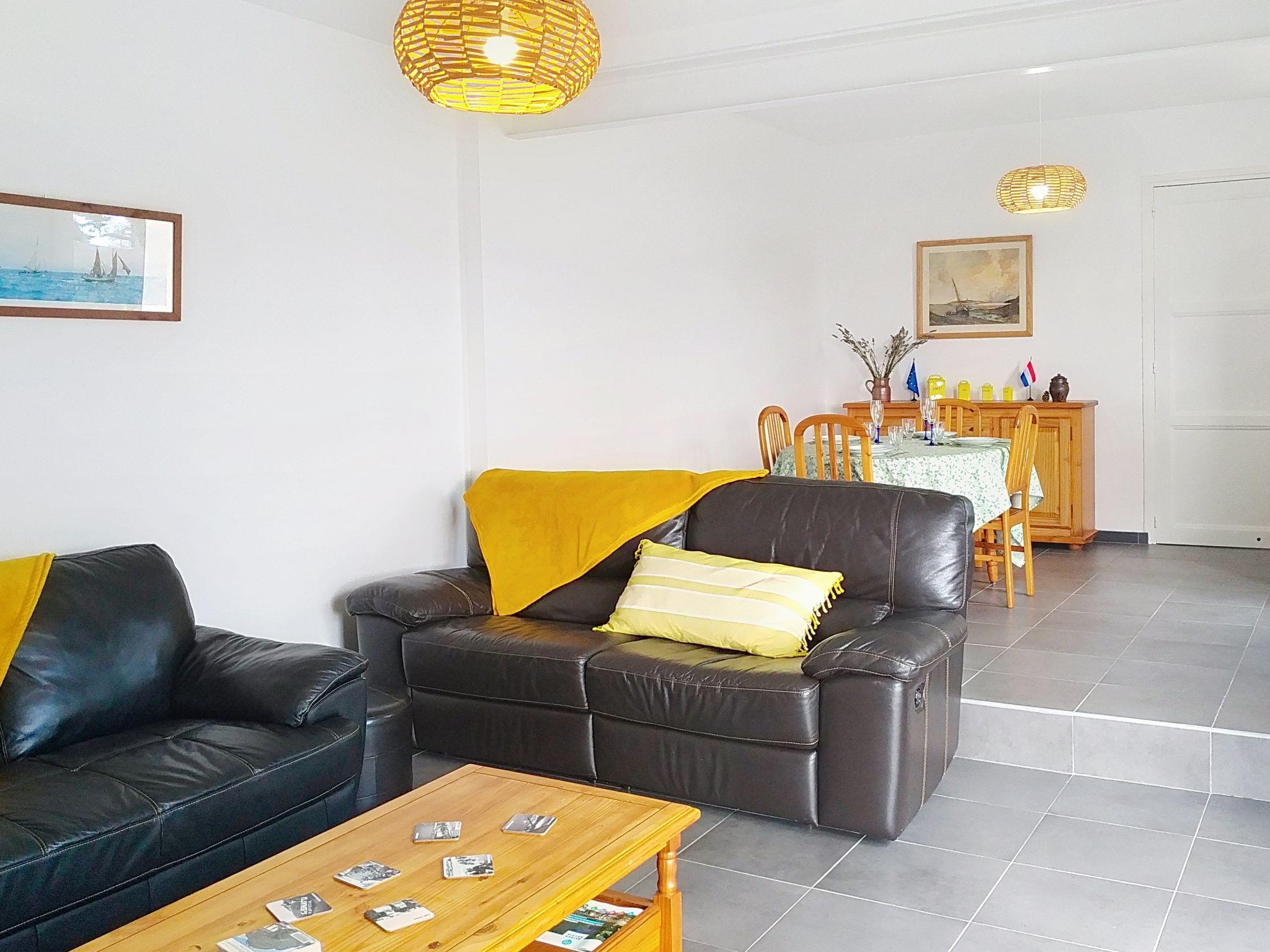 "Mahionias's cottage", 4-room house 86 m2 on 2 levels. Comfortable and modern furnishings: entrance hall. Living/dining room with panoramic window with cable TV (flat screen), hi-fi system and DVD. Exit to the terrace. Kitchen (oven, dishwasher, 4 induction hot plates, toaster, kettle, microwave, electric coffee machine). Sep. WC. Upper floor: 1 room 11 m2 with 1 french bed (140 cm, length 190 cm). 1 room 14 m2 with 1 french bed (160 cm, length 200 cm). Shower, sep. WC. Electric heating. Terrace. Terrace furniture. Facilities: washing machine, children's high chair, baby cot for up to 2 year olds, hair dryer. Internet (WiFi, free). Parking (2 cars). Please note: non-smokers only. Smoke alarm. Offer by a private individual according to Art. 155, IV of CGI.
