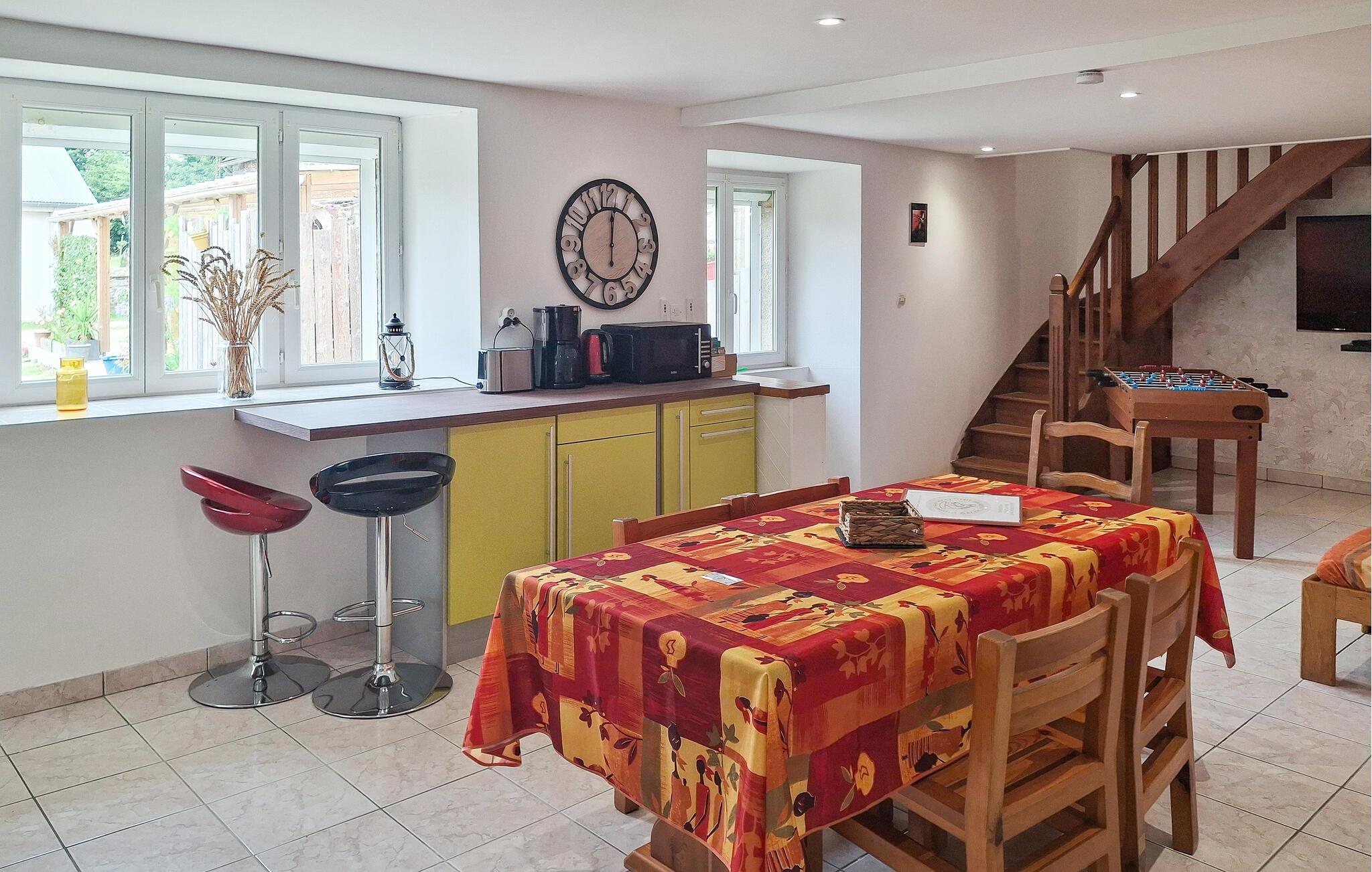 Beliggende i hjertet af en rolig landsby og omgivet af en stor have, byder dette lyse og omhyggeligt renoverede bretonske landsted jer velkommen. Føl jer hjemme, mens I nyder familietiden sammen i det åbne opholdsrum. Tryll lækre måltider frem lavet med lokale råvarer, og afhold hyggelige spilleaftener, mens brændeovnen bader rummet i varmt lys.