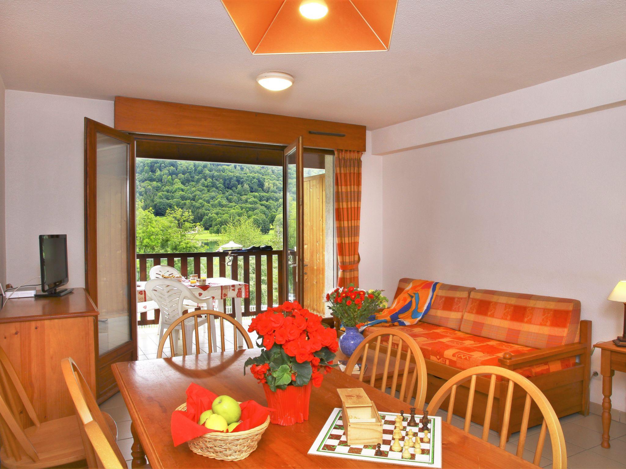 Residence "La Soulane", 1'000 m a.s.l.. 68 apartments in the residence. In the hamlet Aranvielle 1 km from the centre of Loudenvielle, 26 km from the centre of Bagnères-de-Luchon, 80 km from the centre of Lourdes/Tarbes, on the lake, 8 km from the skiing area, in the countryside. For shared use: swimming pool heated (depth 120 - 180 cm, seasonal availability: 01.May. - 30.Sep.). In the complex: reception, WiFi, sauna, fitness room, washing machine, tumble dryer (for shared use, extra). Breakfast. Parking (limited number of spaces). Shop 1 km. Slopes 8 km, ski school 8 km. Nearby attractions: Centre thermo-ludique Balnéa 1 km. Well-known ski regions can easily be reached: Télécabine Skyvall (Peyragudes) 800 m, Val Louron 8 km, Peyragudes 11 km. Well-known lakes can easily be reached: Lac de Génos. Please note: the photograph shows a typical example. The holiday properties may differ in living space, floorplan, equipment and furnishing.