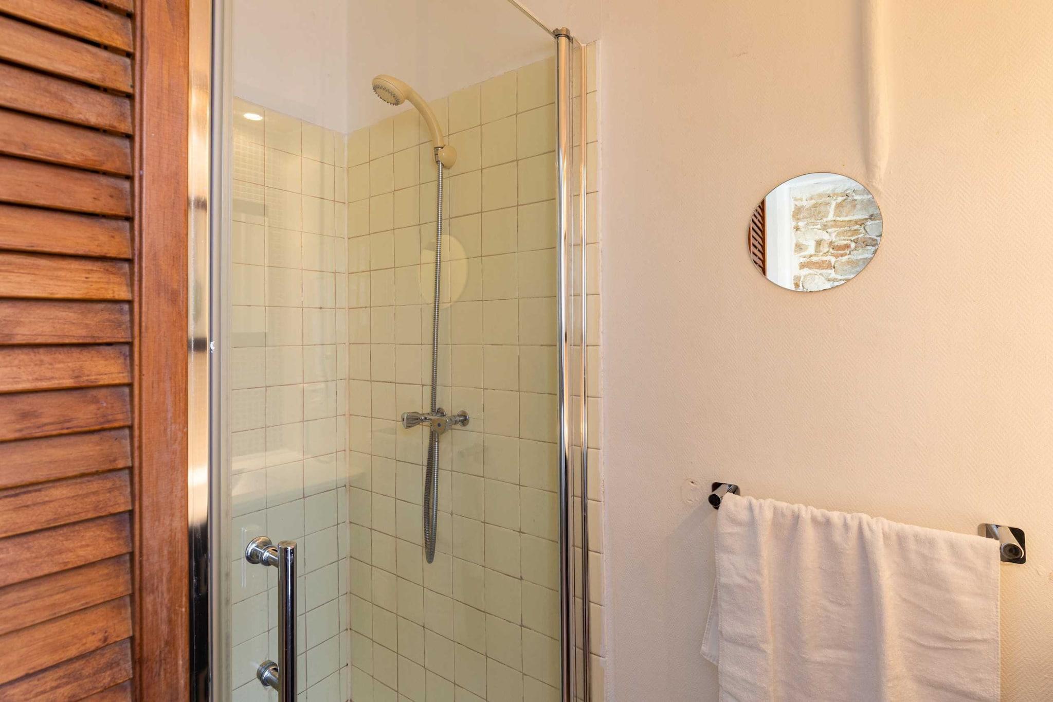 På 5. etage: (Stue(Fjernsyn), Køkken(elkedel, brødrister, emhætte, kaffemaskine, ovn, mikrobølgeovn, køleskab, ), soveværelse(, varme, strygebræt, strygejern, Queen Bed), badeværelse(bruser, håndvask, toilet, vaskemaskine, føntørrer, Håndklæder inkl., , , )) , varme, , Cleaning before checkout