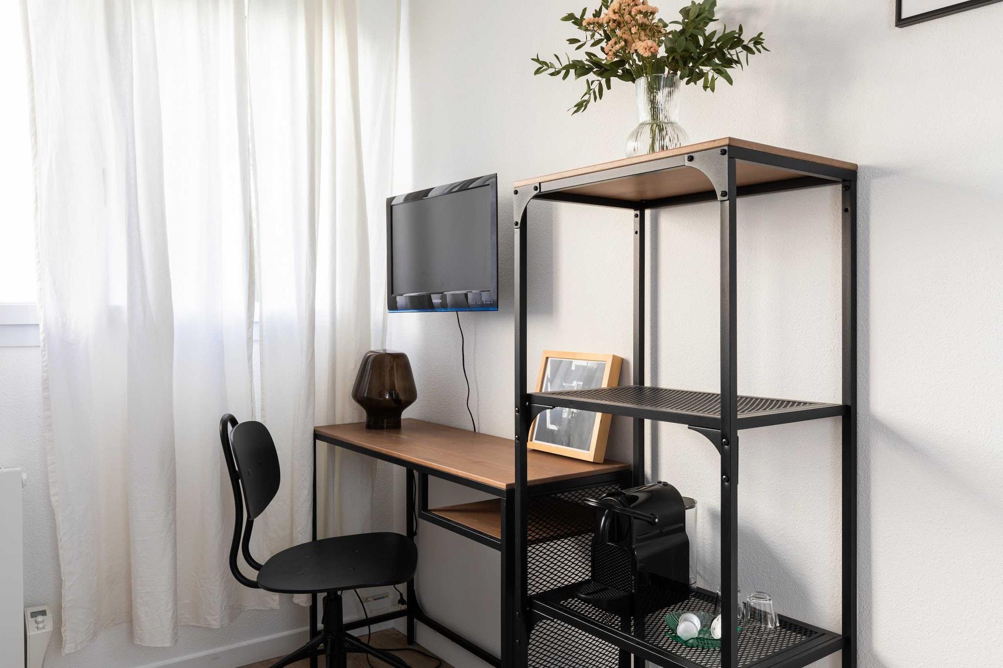 Indtjekning til lejligheden er selvbetjening fra kl. 17.00. Tidlig indtjekning kl. 14.00 er mulig mod et ekstra gebyr på +EURO20. null Lejlighed med masser af karakter, nyrenoveret og smagfuldt indrettet. Du kan nyde dens lysstyrke og ro under dit ophold. Den er designet med avancerede faciliteter for at tilfredsstille alle dine ønsker. Denne dejlige studiolejlighed er ideelt beliggende kun få skridt fra Part Dieu togstation. Den er rolig, fuldt udstyret og ideel til et ophold for to personer. Lejligheden ligger på 1. sal med elevator. Den er meget lys og består af en smuk stue med fladskærms-tv og en komfortabel ny dobbelt sovesofa til to personer (140x200). Et fuldt udstyret køkken med køleskab, kogeplader, mikrobølgeovn, brødrister, elkedel og endda en Nespresso-kaffemaskine. Badeværelset er også blevet renoveret og har en brusekabine med toilet. For at sikre din maksimale komfort tilbyder vi dig en hårtørrer og opbevaringsplads.