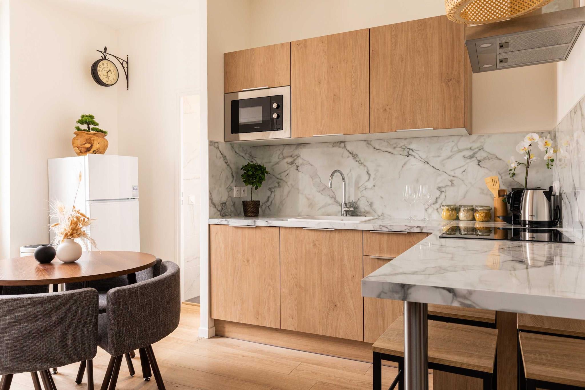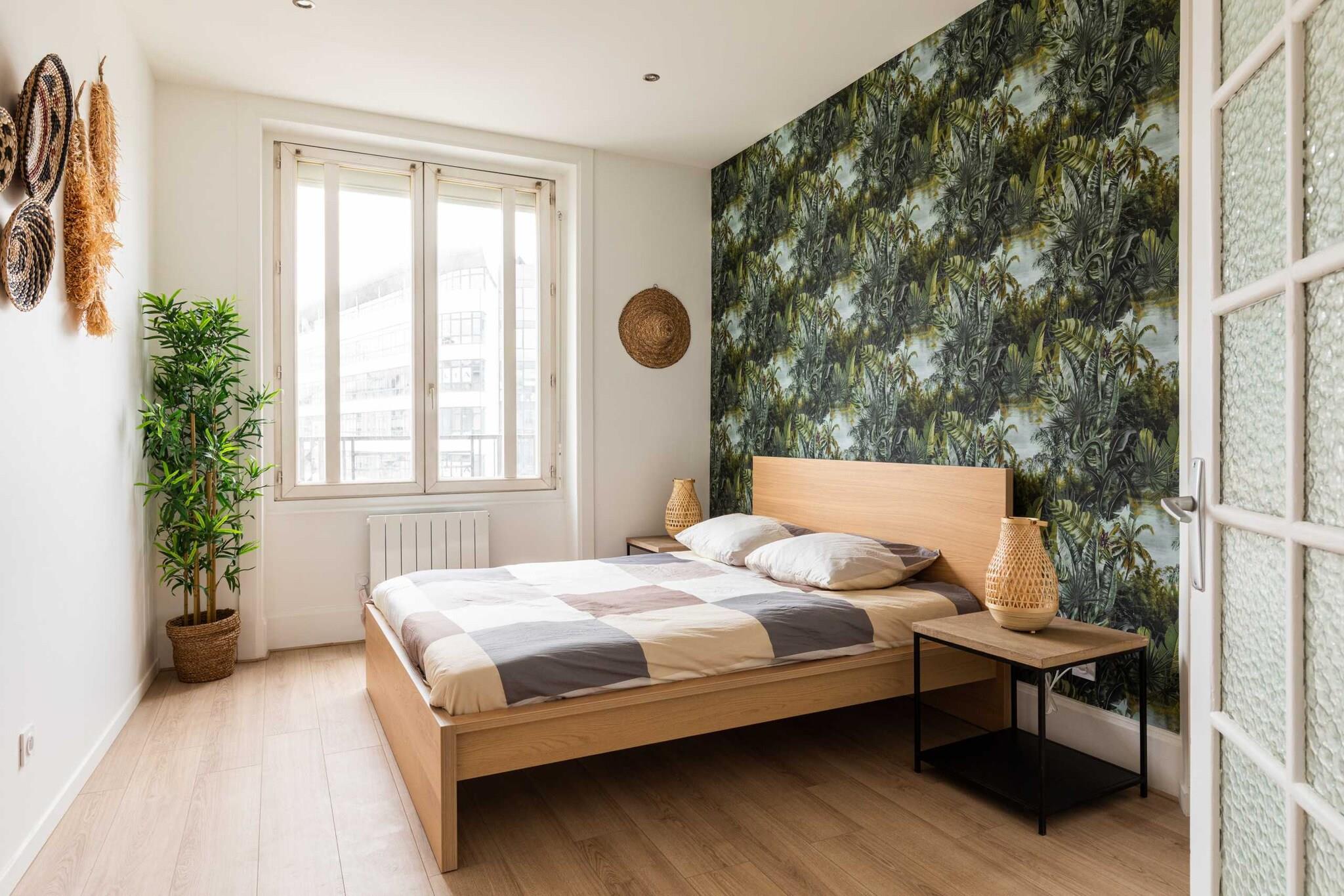 Lejlighed med masser af karakter, stor stue, fuldstændig renoveret. null Indkvarteringen Denne lejlighed, fuldstændig renoveret og udstyret af en arkitekt, kan rumme op til 4 personer (et soveværelse med en kingsize-seng og et soveværelse med en dobbeltseng). Sengelinned og håndklæder er inkluderet. Den har alt nødvendigt udstyr til et længere eller kortere ophold: ubegrænset internet, tv, udstyret køkken, kaffemaskine, vaskemaskine, mikrobølgeovn...