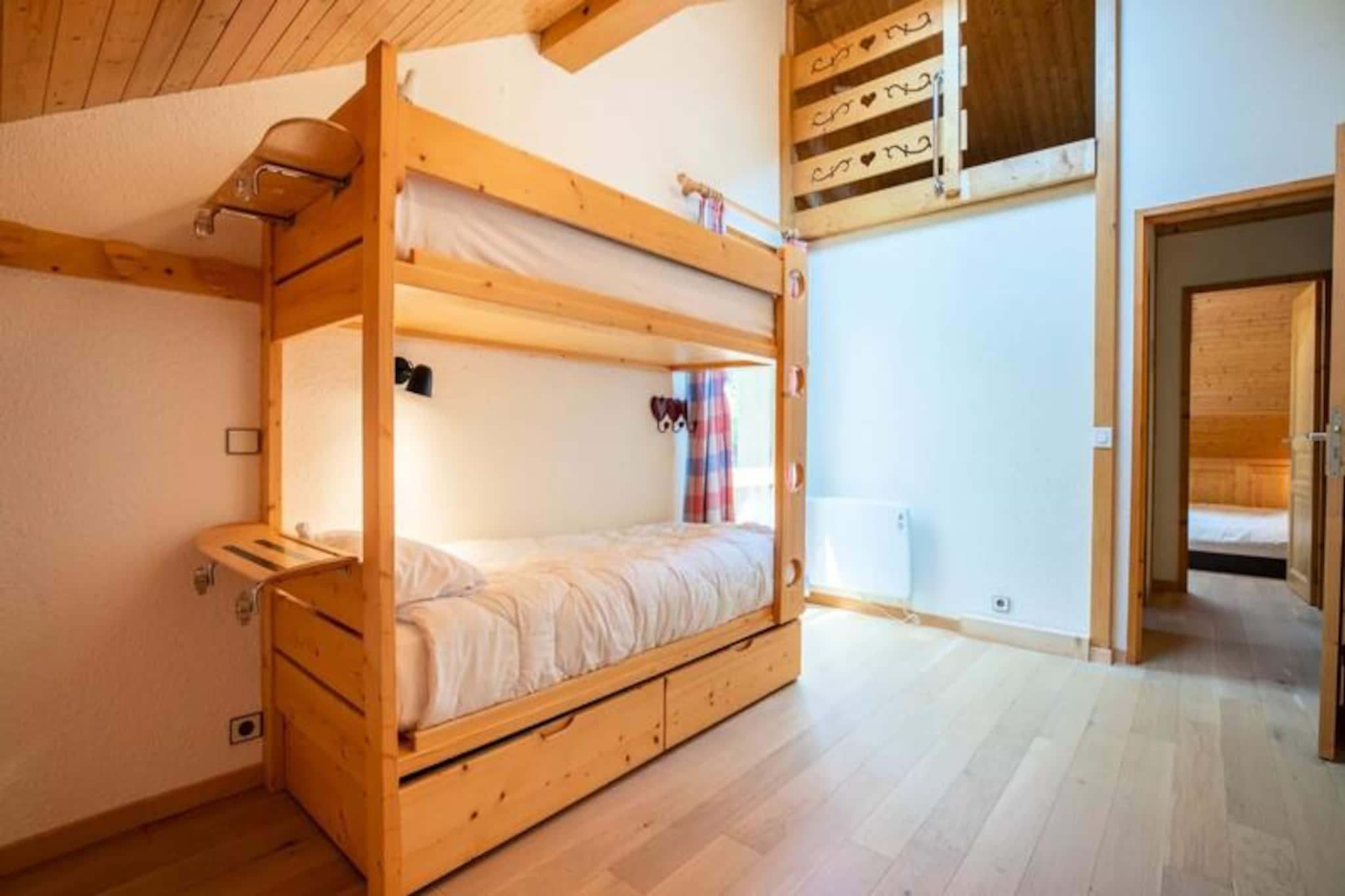 I hjertet af den charmerende landsby Méribel tilbyder denne smukt renoverede lejlighed et roligt tilflugtssted uden naboer med udsigt, perfekt til dem, der søger en fredelig alpin flugt. Fauvettes 4 byder dig velkommen med sin varme og indbydende atmosfære, der blander moderne komfort med traditionel bjergcharme. Fra de syd- og vestvendte vinduer kan du nyde en betagende udsigt over de omkringliggende tinder, badet i naturligt lys hele dagen. Lejligheden, der er fordelt på to etager, er omhyggeligt designet til at rumme op til otte gæster. Stueetagen har en hyggelig stue med et fuldt udstyret køkken, inklusive en Nespresso-maskine, ovn, stort køleskab og opvaskemaskine. Et dobbeltværelse med eget badeværelse og et separat toilet fuldender denne etage. Familier vil sætte pris på de babyvenlige faciliteter, såsom en højstol og en tremmeseng. Ovenpå venter to yderligere soveværelser: et med en queensize-seng og et lille skrivebord, ideelt til fjernarbejde, og et andet med køjesenge og to enkeltsenge, der kan laves om til en dobbeltseng. Et fælles badeværelse med badekar og toilet sikrer komfort for alle. Méribel Village er et familievenligt paradis, der tilbyder en ægte alpin landsbyatmosfære, kun en kort 10-minutters køretur eller 15 minutters gratis shuttlebustur fra Méribel. Golf-stoleliften giver hurtig adgang til pisterne, hvilket gør den til en ideel base for skientusiaster. I nærheden finder du et Spar-supermarked, et bageri, en skibutik og den populære restaurant Lodge du Village. Den gratis shuttlebus sikrer problemfri transport gennem dalen, der kører hvert 15. minut i myldretiden. Uanset om du er her for at stå på ski, slappe af eller udforske den fantastiske region Les Trois Vallées, er Fauvettes 4 det perfekte valg til en mindeværdig bjergferie. Lad CVR-teamet hjælpe med liftkort, leje af udstyr, undervisning eller endda privat kokkeservice for at gøre dit ophold virkelig exceptionelt.