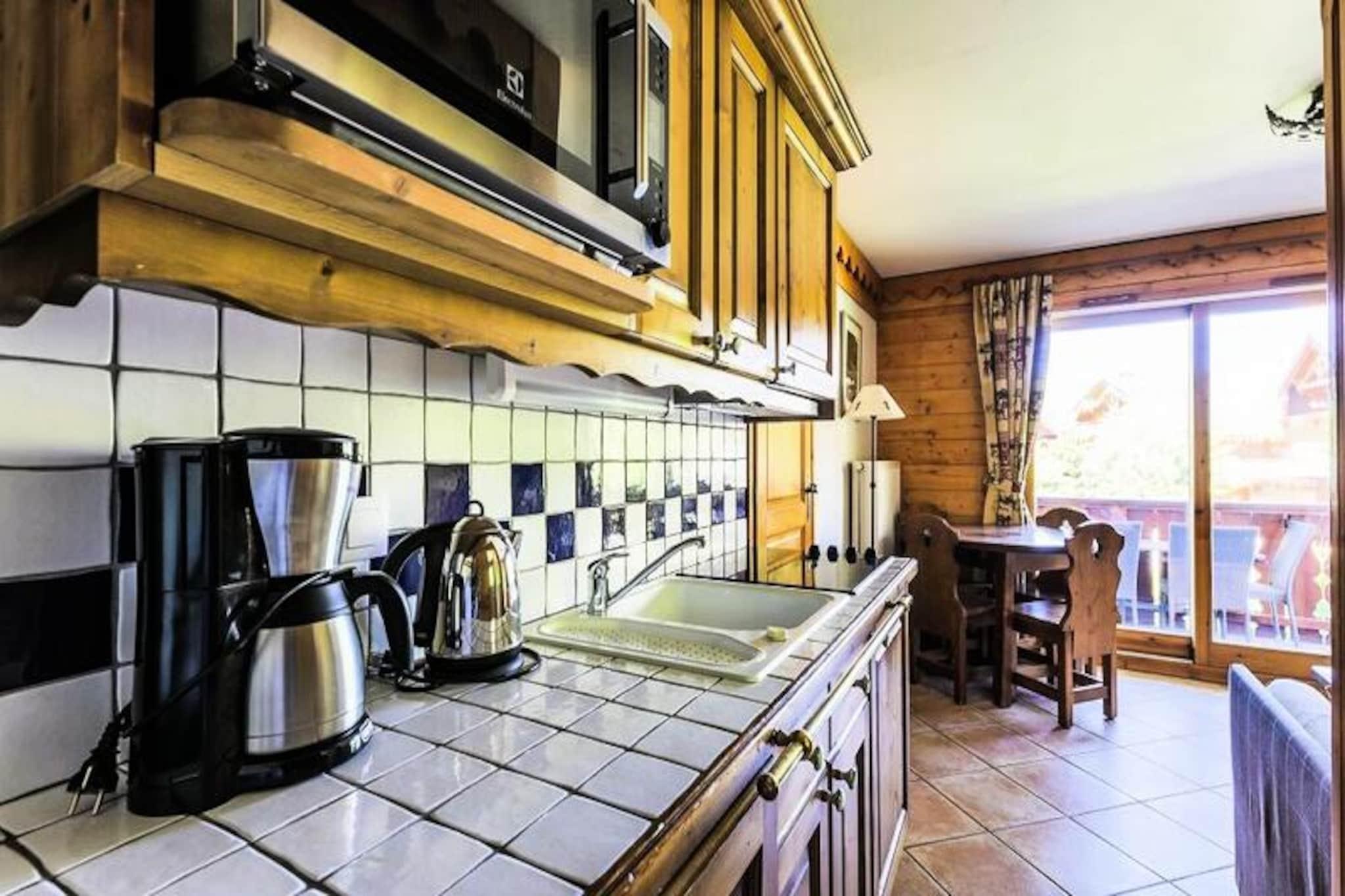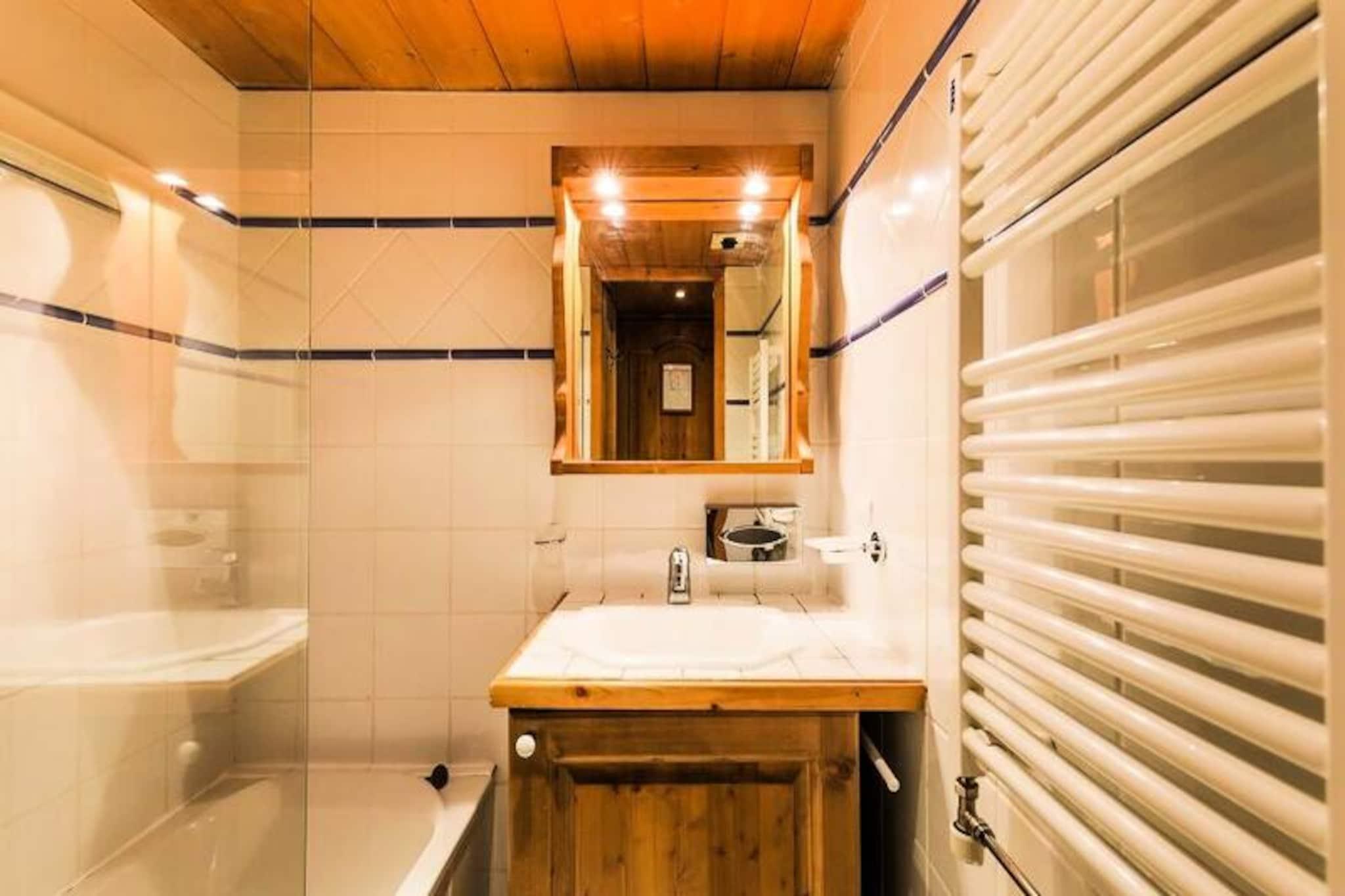 Beliggende i 1450 m højde i hjertet af de franske alper, er denne hyggelige lejlighed ideel til en familie eller gruppe på fire. Det har et komfortabelt soveværelse med en dobbeltseng, et opholdsområde med en sovesofa og en separat sovekrog. Ejendommen tilbyder væsentlige faciliteter, herunder sengetøj, håndklæder og et rengøringssæt. Gæsterne kan slappe af i en række faciliteter, herunder en opvarmet indendørs pool, fitnessområde og et afslappende hammam, mens Deep Nature Spa tilbyder et fredeligt tilflugtssted for wellness-entusiaster. Placeringen byder på en betagende udsigt over dalen og er perfekt for dem, der søger udendørs eventyr. Beliggende nær det berømte 3 Vallées-skidomæne, er området perfekt til skiløb og snesko. Udforsk de charmerende omgivelser, med lokale caféer og markeder, der tilbyder en smag af regionen. Ud over udendørsaktiviteter giver landsbyen nem adgang til butikker og lokale tjenester. Inde i lejligheden kan du nyde et fuldt udstyret køkken med vigtige apparater, herunder en opvaskemaskine og mikroovn. Den hyggelige opholdsstue har fladskærms-tv, og badeværelset har separat toilet og bruser. Andre faciliteter omfatter parkering (afhængig af tilgængelighed), med valgfri overdækket parkering tilgængelig mod et ekstra gebyr. Boligen tilbyder et fredfyldt tilflugtssted med moderne bekvemmeligheder for et mindeværdigt ophold i de franske alper.