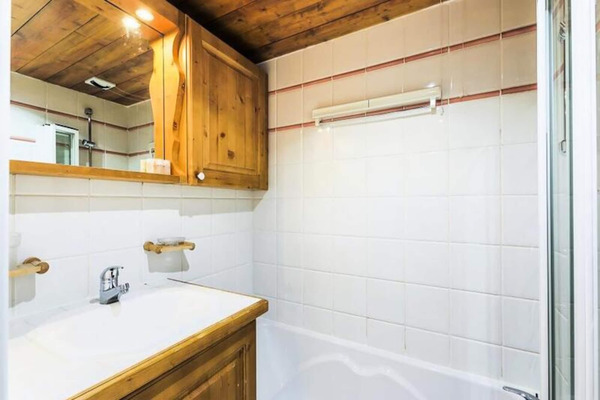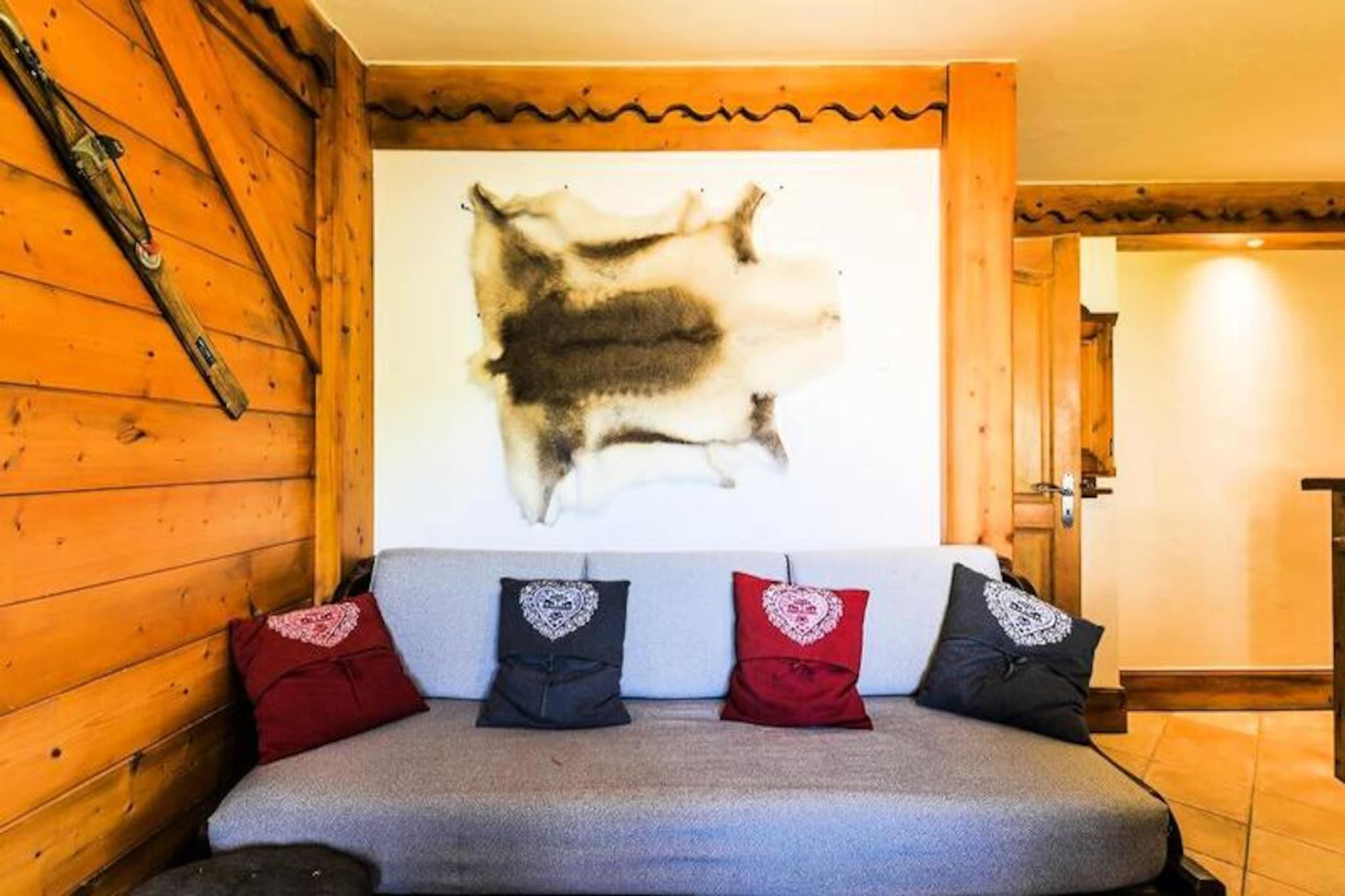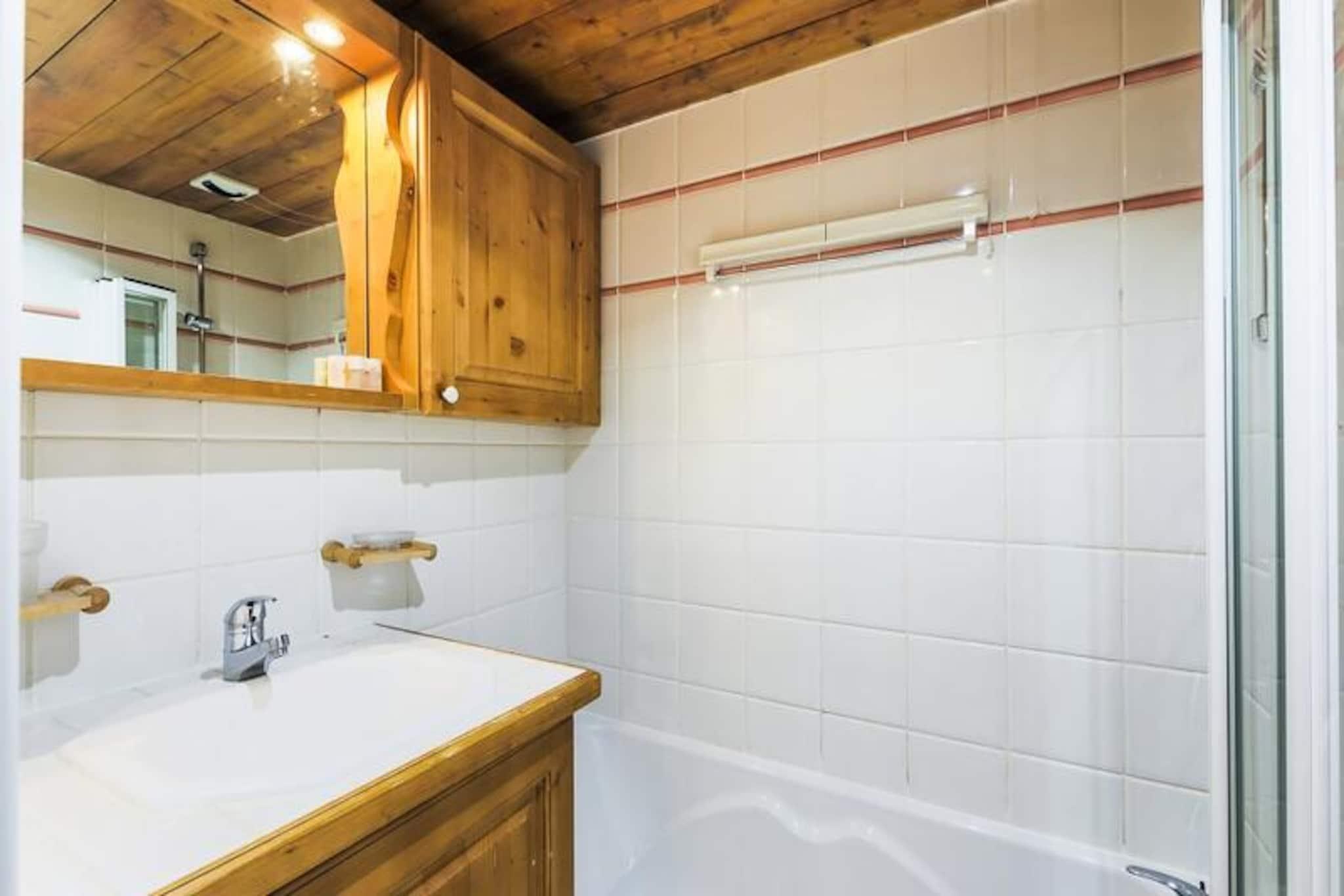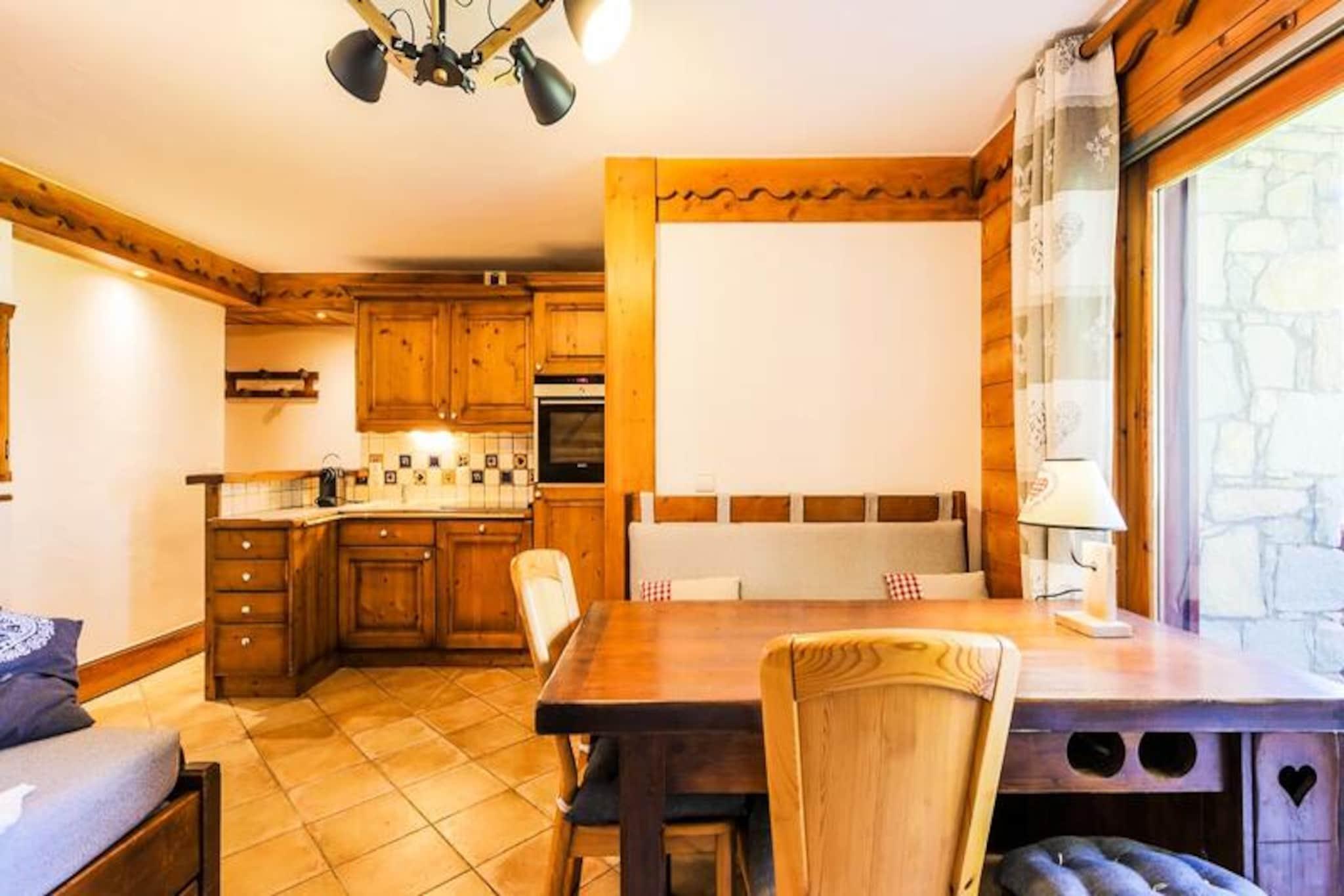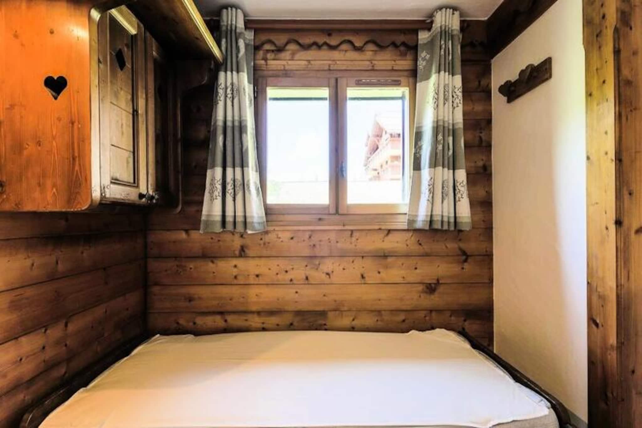 Denne hyggelige lejlighed i chalet-stil rummer komfortabelt 3-4 personer med et soveværelse med dobbeltseng og et andet soveværelse med en konvertibel banketseng, som kan forvandles til en dobbeltseng. Opholdsområdet har en udtrækssofa, perfekt til yderligere gæster. Kæledyrsvenlig (ekstra gebyr) og udstyret med væsentlige faciliteter er lejligheden ideel til familier eller små grupper, der søger en behagelig alpine ferie. Lejligheden ligger i hjertet af skisportsstedet 3 Vallées og tilbyder nem adgang til over 600 km skiløjper. For ikke-skiløbere er der naturskønne snesko-stier og hundeslædeeventyr i nærheden. Boligen ligger tæt på lokale caféer, restauranter og markeder, hvor gæsterne kan udforske det regionale køkken og shoppe lokale varer, hvilket gør det til en perfekt base for at fordybe sig i Alpernes charme. Lejligheden har fuldt udstyret køkken i åbent plan, rummelig opholdsstue og balkon med udsigt over bjergene. Det inkluderer badekar og bruser i de to badeværelser, plus et separat toilet for ekstra bekvemmelighed. Andre faciliteter inkluderer gratis Wi-Fi, en opvarmet indendørs pool, en sauna og en overdækket parkeringsfacilitet (afhængigt af tilgængelighed), hvilket sikrer et behageligt og velafrundet ophold.