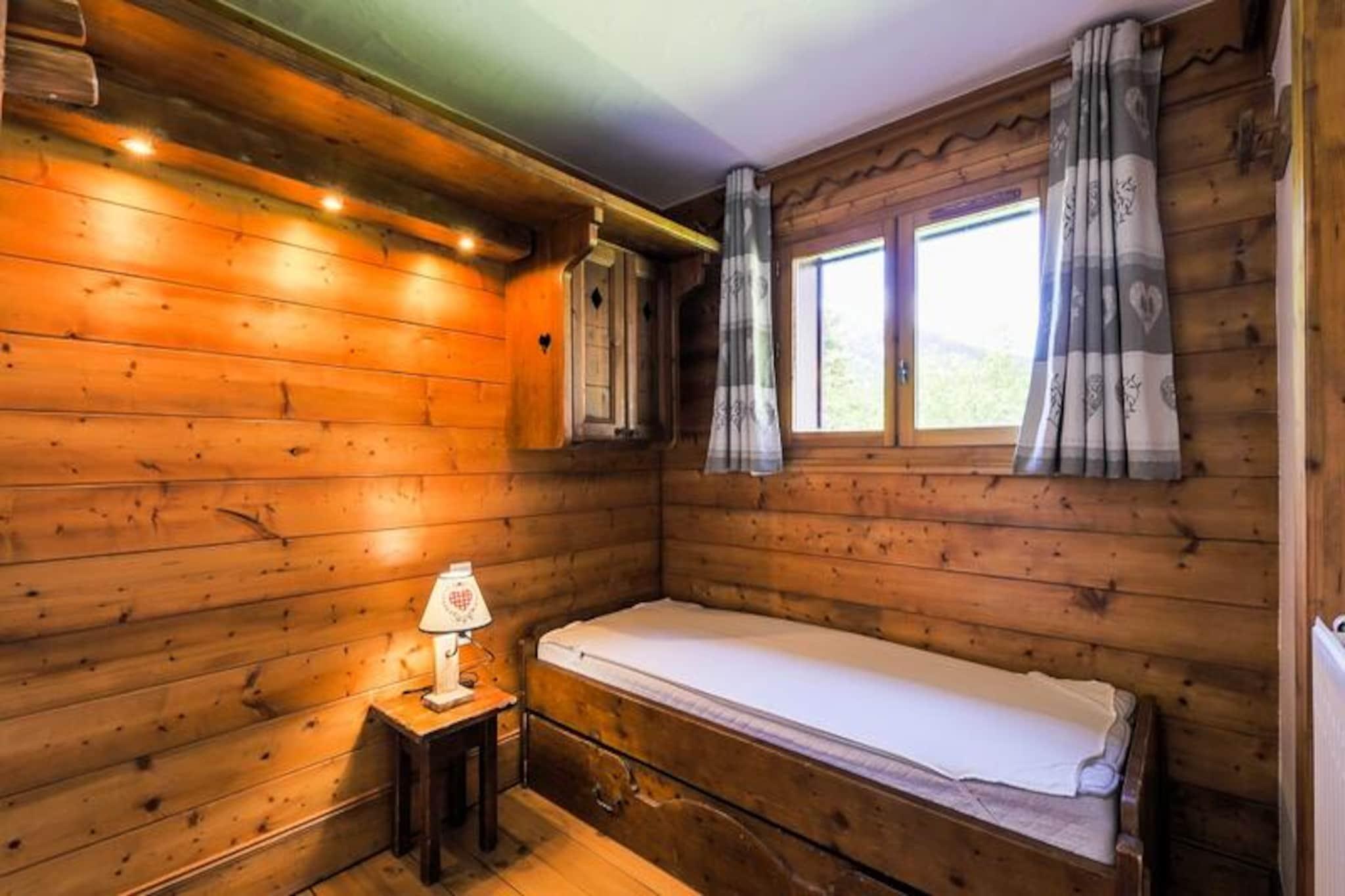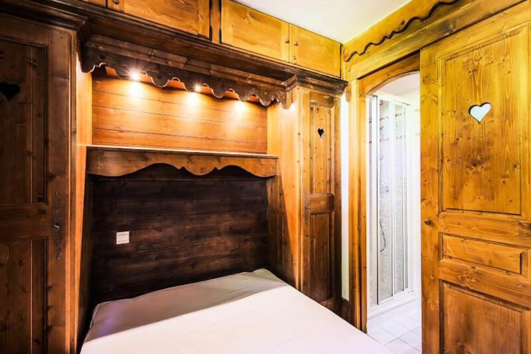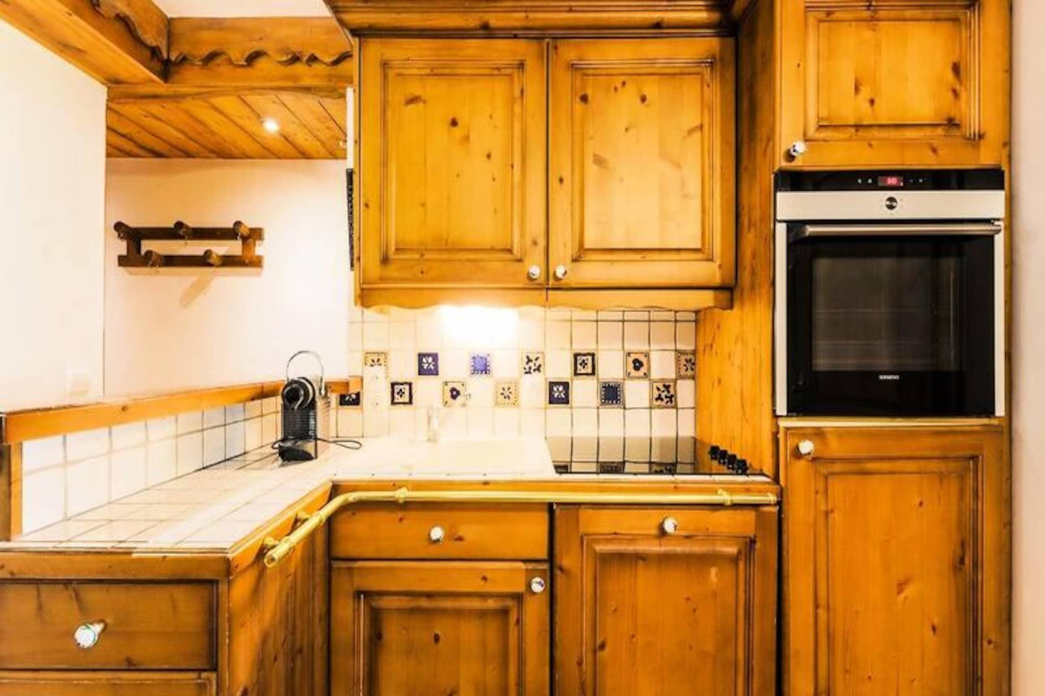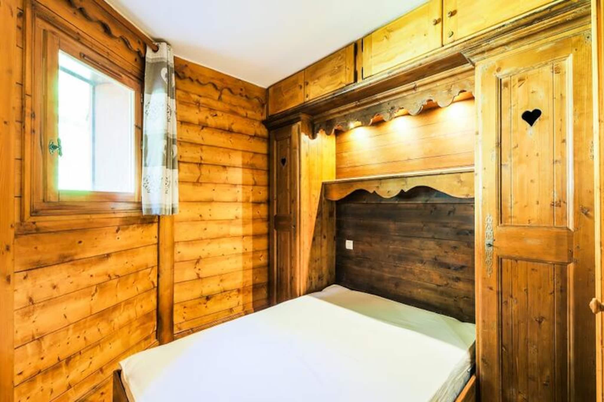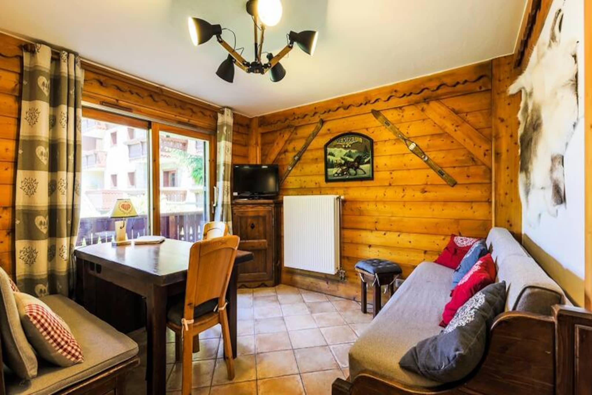 Denne hyggelige lejlighed i chalet-stil rummer komfortabelt 3-4 personer med et soveværelse med dobbeltseng og et andet soveværelse med en konvertibel banketseng, som kan forvandles til en dobbeltseng. Opholdsområdet har en udtrækssofa, perfekt til yderligere gæster. Kæledyrsvenlig (ekstra gebyr) og udstyret med væsentlige faciliteter er lejligheden ideel til familier eller små grupper, der søger en behagelig alpine ferie. Lejligheden ligger i hjertet af skisportsstedet 3 Vallées og tilbyder nem adgang til over 600 km skiløjper. For ikke-skiløbere er der naturskønne snesko-stier og hundeslædeeventyr i nærheden. Boligen ligger tæt på lokale caféer, restauranter og markeder, hvor gæsterne kan udforske det regionale køkken og shoppe lokale varer, hvilket gør det til en perfekt base for at fordybe sig i Alpernes charme. Lejligheden har fuldt udstyret køkken i åbent plan, rummelig opholdsstue og balkon med udsigt over bjergene. Det inkluderer badekar og bruser i de to badeværelser, plus et separat toilet for ekstra bekvemmelighed. Andre faciliteter inkluderer gratis Wi-Fi, en opvarmet indendørs pool, en sauna og en overdækket parkeringsfacilitet (afhængigt af tilgængelighed), hvilket sikrer et behageligt og velafrundet ophold.