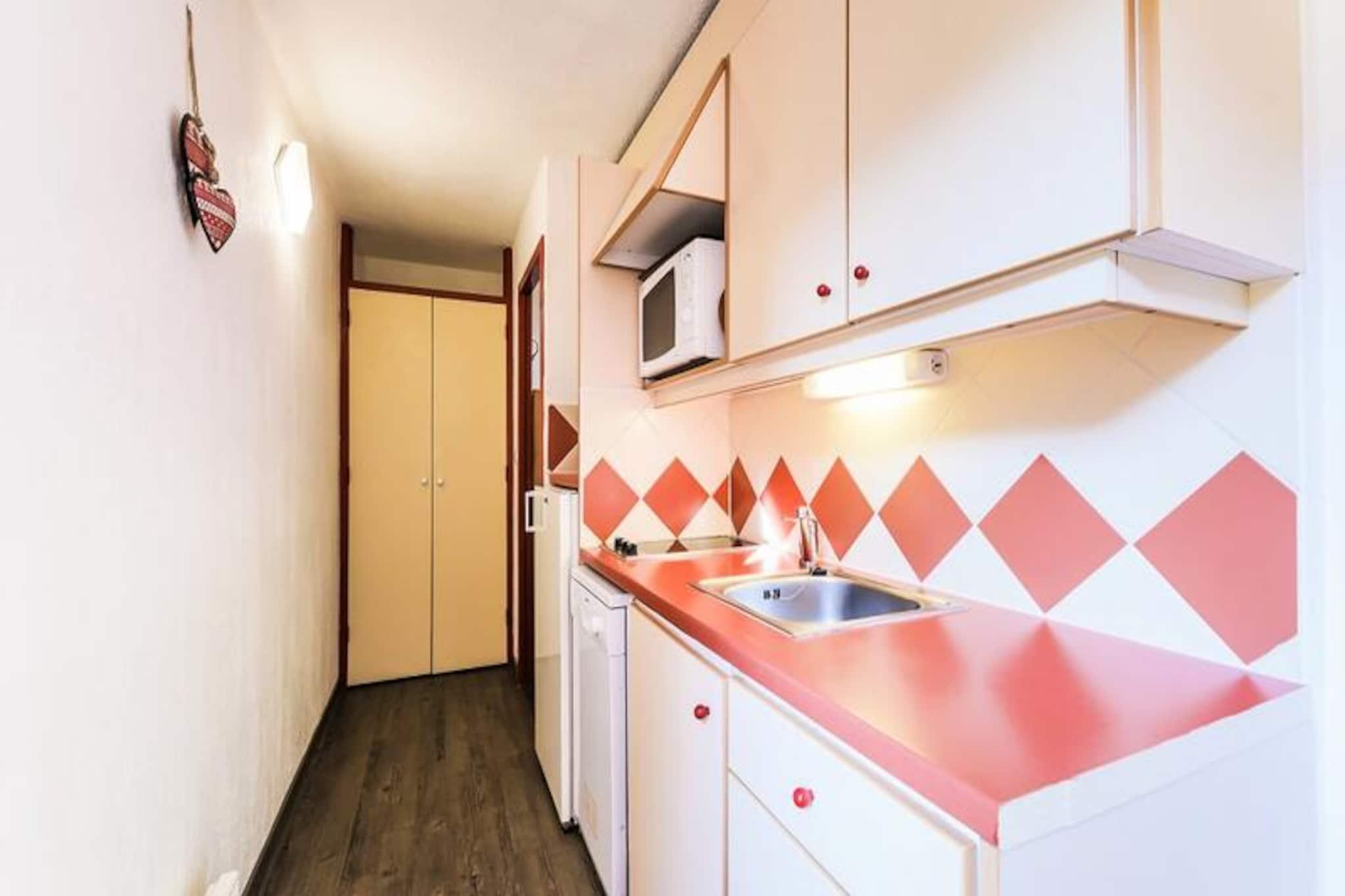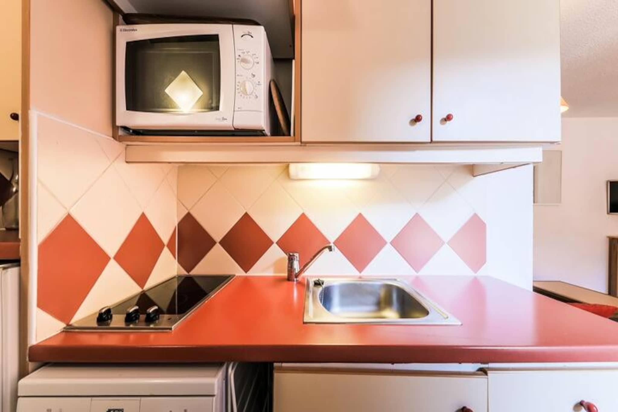 Denne charmerende lejlighed, beliggende i hjertet af feriestedet M?ribel, tilbyder et hyggeligt og behageligt ophold. Det har et opholdsomr?de med en dobbelt sovesofa og et kabineomr?de med to k?jesenge, ideelt til b?rn. Lejligheden kan rumme op til 4 personer, med badev?relse udstyret med badekar og separat toilet. G?sterne vil ogs? nyde en privat terrasse p? 15 m², perfekt til at slappe af efter en dag med skil?b eller udforskning. Boligen er k?ledyrsvenlig, hvilket giver dig mulighed for at tage dine lodne venner med til opholdet (ekstra gebyrer kan forekomme). Beliggende i en f?rsteklasses beliggenhed, er lejligheden kun et stenkast fra butikker, restauranter og attraktioner, hvilket g?r det nemt at udforske resortet. Den opvarmede indend?rs swimmingpool i Chaudanne Olympic Park ligger i n?rheden, og feriestedets centrum med sin livlige atmosf?re er kun en kort g?tur v?k. Det omkringliggende omr?de byder ogs? p? en fantastisk udsigt over bjergene og adgang til de verdenskendte skil?jper i 3 Vall?es. Lejligheden er fuldt udstyret med et k?kkenomr?de, herunder k?leskab, ovn og komfur, s? du kan tilberede m?ltider, n?r det passer dig. Andre faciliteter omfatter et tv, tr?dl?s internetadgang (mod et ekstra gebyr) og et vedligeholdelsess?t. For ekstra komfort har g?sterne adgang til sauna og fitnesscenter i den n?rliggende olympiske park, med valgfrie tjenester s?som daglig reng?ring til r?dighed mod et till?gsgebyr.