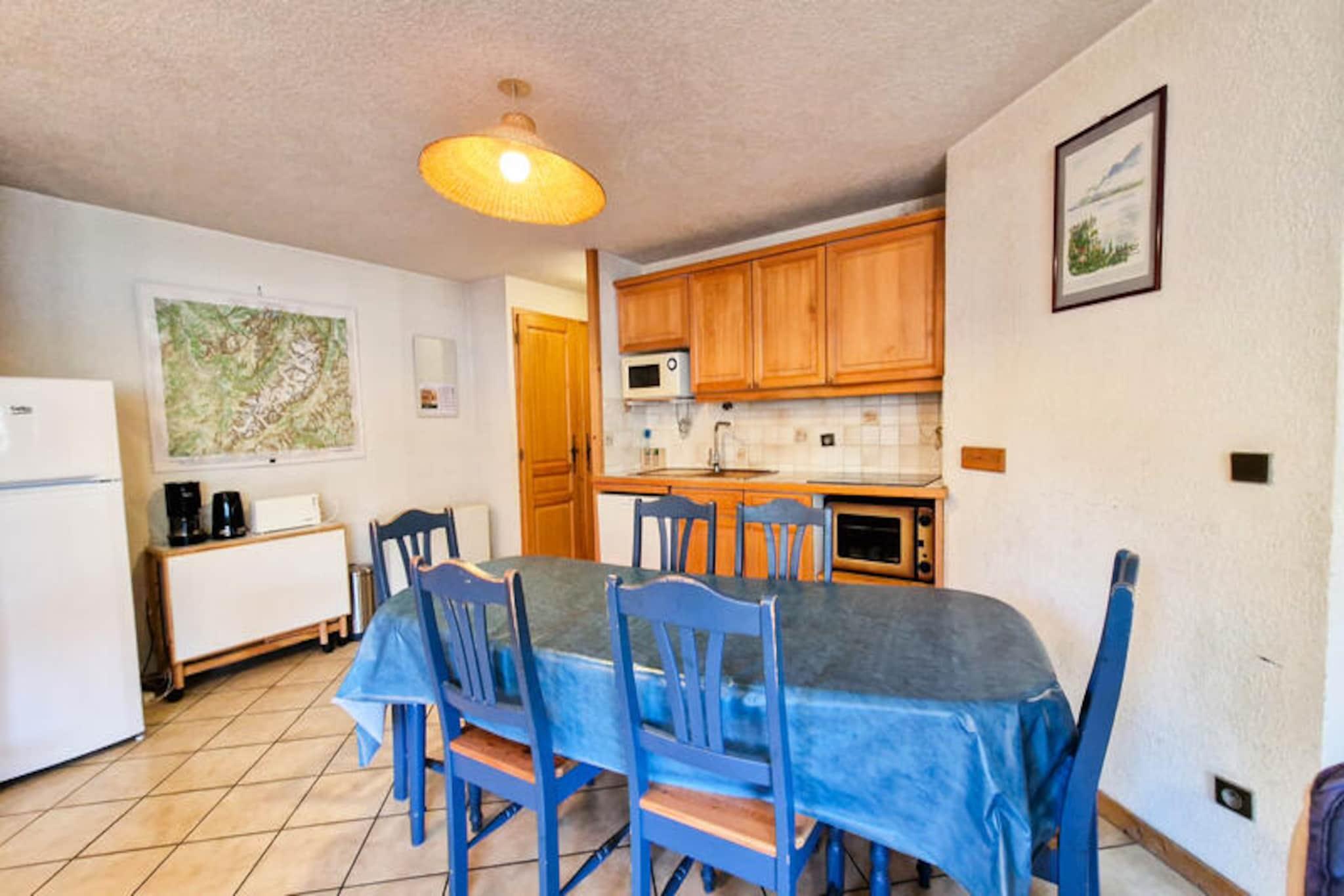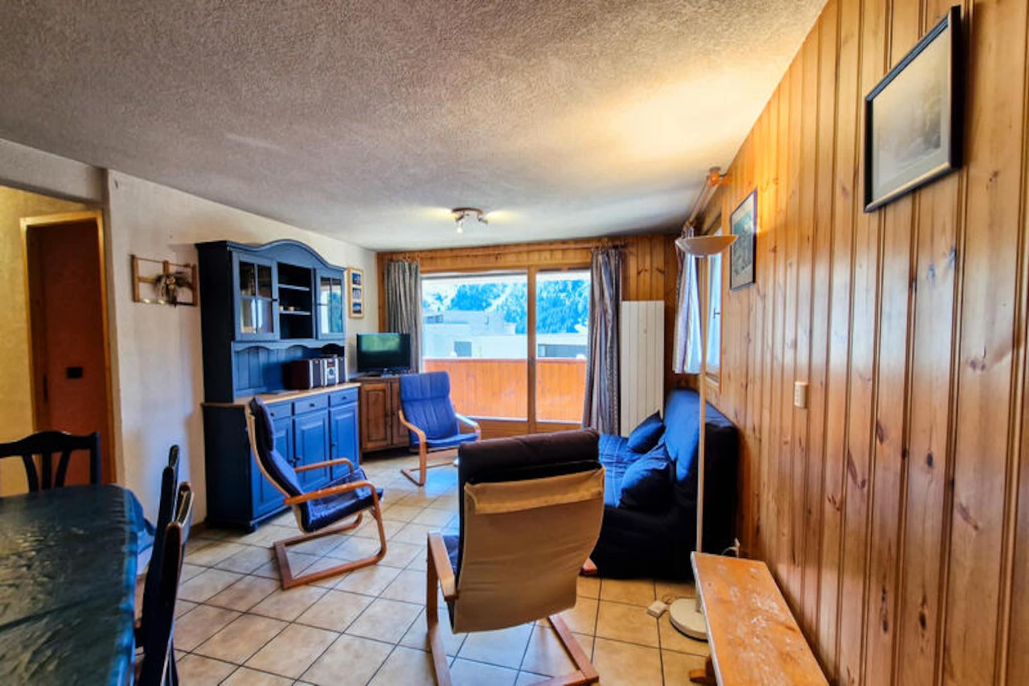 I det fredfyldte Flaine Forêt-distrikt tilbyder dette charmerende alpine feriested en perfekt blanding af komfort og bekvemmelighed til din bjergferie. Kun 200 meter fra Gérats-stoleliften og 500 meter fra pisterne er det en ideel base for både skientusiaster og naturelskere. Det nærliggende skibusstoppested, kun 50 meter væk, sikrer ubesværet adgang til hele resortet, mens de omkringliggende butikker og faciliteter gør dit ophold endnu mere behageligt. Fra det øjeblik du ankommer, vil den fredelige atmosfære og den fantastiske alpine udsigt betage dig. \n\nDenne rummelige 3-værelses lejlighed med en South Comfort Cabin er på 65 m² og ligger på første sal med en østvendt balkon, der inviterer dig til at nyde morgensolen. Med sovepladser til op til 8 gæster er den perfekt til familier eller vennegrupper. Lejligheden indeholder to hyggelige soveværelser, en hytte med køjesenge og et håndvaskområde samt en komfortabel stue med en dobbelt sovesofa. Det åbne køkken er fuldt udstyret med ovn og opvaskemaskine, hvilket gør det nemt at tilberede måltider efter en dag på pisterne. Moderne faciliteter såsom fladskærms-tv, dvd-afspiller og ministereo sikrer underholdning for alle. \n\nUd over lejligheden tilbyder Flaine et væld af aktiviteter året rundt. Om vinteren kan du nyde skiløb og snowboarding i verdensklasse, mens sommeren bringer det eksklusive Flaine Summer Pass, der giver adgang til adskillige aktiviteter ved ophold på seks nætter eller mere. Uanset om du udforsker pisterne, vandrer på stierne eller blot slapper af i de rolige omgivelser, tilbyder denne bolig den perfekte kulisse for uforglemmelige alpine minder. Med et skirum, valgfri garageudlejning og nem adgang til alle feriestedets højdepunkter er dette din port til en exceptionel bjergflugt.