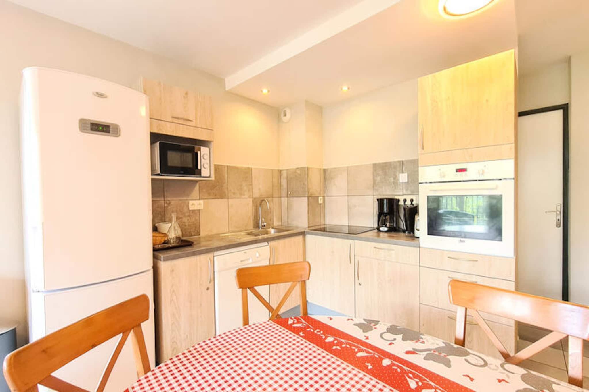 I hjertet af Flaine Forêt tilbyder denne charmerende bolig en perfekt blanding af alpin komfort og moderne bekvemmeligheder. Kun en kort gåtur på 500 meter fra pisterne og skilifterne og 150 meter fra det pulserende indkøbscenter er det et ideelt tilflugtssted for dem, der søger en mindeværdig bjergferie. Med den gratis skibus, der stopper lige ved boligen, er dine eventyr på Flaines uberørte pister kun få øjeblikke væk. Boligen har også et skirum, elevator og valgfri overdækket parkering for ekstra bekvemmelighed og praktisk anvendelighed. Denne rummelige lejlighed på 60 m², designet til at rumme op til otte gæster, er gennemtænkt indrettet med tre værelser og en sydvendt hytte. Stuen indeholder en enkelt sovesofa med en udtræksseng, mens de to soveværelser tilbyder fleksible sovepladser med en dobbeltseng og to enkeltsenge. Den hyggelige hytte har et sæt køjesenge, perfekt til ældre børn eller ekstra gæster. Lejligheden kan prale af et fladskærms-tv med kabelkanaler, et badeværelse med badekar, et brusebad og to separate toiletter. Det åbne køkken er fuldt udstyret med induktionskogeplade, multifunktionsovn, mikrobølgeovn, køleskab/fryser og opvaskemaskine, hvilket gør det nemt at tilberede solide måltider efter en dag på pisterne. Flaine Forêt er et pulserende knudepunkt med alt, hvad du behøver, inden for rækkevidde. Det nærliggende indkøbscenter tilbyder et udvalg af butikker og spisemuligheder, mens Flaine Summer Pass, der er inkluderet ved ophold på seks nætter eller mere om sommeren, giver adgang til en række aktiviteter. Uanset om du er her for at stå på ski, vandre eller bare slappe af, er denne bolig den perfekte base for at udforske den fantastiske Grand Massif-region. Med sit varme interiør, praktiske faciliteter og førsteklasses beliggenhed lover denne lejlighed en uforglemmelig alpin ferie.