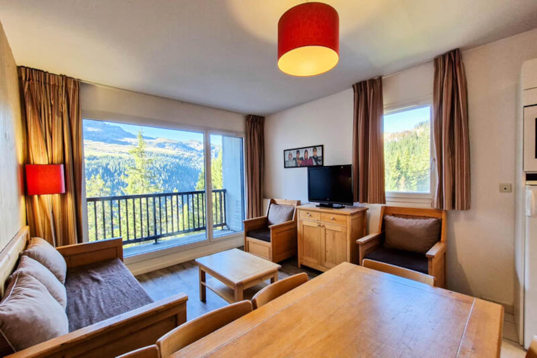 Midt i Flaine Forêts fredfyldte skønhed tilbyder denne indbydende lejlighed i stueetagen et perfekt tilflugtssted for familier og grupper, der søger komfort og bekvemmelighed i de franske alper. Med pisterne og skilifterne kun 500 meter væk og det travle indkøbscenter kun 150 meter fra din dørtrin, finder du alt, hvad du behøver, inden for rækkevidde. Den gratis skibus stopper lige uden for boligen og sikrer ubesværet adgang til områdets berømte vintersportsgrene og attraktioner. Uanset om du er her for at stå på ski, vandre eller blot slappe af, sætter denne beliggenhed scenen for uforglemmelige alpine eventyr. \n\nTræd indenfor i denne rummelige lejlighed på 60 m², der er designet til at rumme op til otte gæster. Den gennemtænkte planløsning omfatter en hyggelig stue med en enkelt sovesofa og en udtræksseng, to soveværelser - et med en dobbeltseng og et andet med to enkeltsenge - og en charmerende sydvendt hytte med køjesenge. Det åbne køkken er udstyret med moderne apparater som keramisk kogeplade, multifunktionsovn, køleskab og opvaskemaskine, hvilket gør det nemt at tilberede måltider efter en dag med udforskning. Trægulve og flisebelagte områder tilføjer et strejf af elegance, mens faciliteter som fladskærms-tv, skiboks og vaskeri sikrer et behageligt ophold. \n\nUd over lejligheden tilbyder Flaine Forêt et væld af aktiviteter året rundt. Om vinteren kan du nyde skiløb og snowboarding i verdensklasse, mens sommeren bringer spændingen med Flaine Summer Pass, der giver adgang til adskillige udendørs eventyr. Det nærliggende indkøbscenter tilbyder spise- og underholdningsmuligheder, hvilket gør det til et knudepunkt for afslapning efter skiløb. Med overdækket parkering og kæledyrsvenlig indkvartering imødekommer denne bolig alle dine behov. \n\nVælg denne charmerende lejlighed til en mindeværdig alpin ferie, hvor betagende landskaber og moderne komfort forenes for at skabe den perfekte ferieoplevelse.