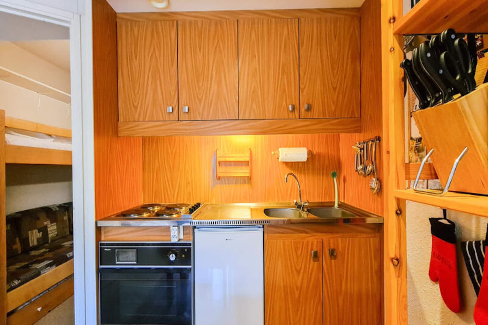 I det charmerende Flaine Forêt-distrikt inviterer dette hyggelige studie dig til at opleve magien i de franske alper i enhver sæson. Kun 150 meter fra pisterne og skiskolens mødesteder tilbyder det en ideel base for både vintersportsentusiaster og sommereventyrere. Uanset om du er her for at grave dig gennem uberørt sne eller udforske naturskønne vandrestier, sikrer beliggenheden nem adgang til alle de aktiviteter, der gør Flaine til en elsket alpin destination. Den sydvendte balkon tilbyder et solrigt tilflugtssted, hvor du kan slappe af og nyde den fredfyldte udsigt over bjergene. \n\nStudioet er designet til at rumme op til fire gæster og har en praktisk indretning med en køjeseng i entréen og en dobbelt sovesofa i stuen. Tekøkkenet er udstyret med alt, hvad du behøver for at tilberede solide måltider, herunder elektriske kogeplader, en ovn, en kombinationsmikrobølgeovn og en Nespresso-kaffemaskine. Efter en dag med eventyr kan du slappe af med en film på tv'et eller nyde varmen fra det tæppebelagte gulv under fødderne. Badeværelset har badekar og toilet, hvilket sikrer komfort under dit ophold. Der er skibokse til rådighed for ekstra bekvemmelighed, og ejendommen er røgfri og kæledyrsfri, hvilket opretholder et rent og indbydende miljø. \n\nFlaine Forêt ligger ikke kun tæt på pisterne, men også i nærheden af ??butikker og essentielle tjenester, hvilket gør det nemt at fylde op med forsyninger eller nyde et måltid ude. I sommersæsonen modtager gæster, der bor seks nætter eller mere, Flaine Summer Pass, der giver adgang til en række aktiviteter, der fremviser regionens naturlige skønhed og pulserende kultur. Fra spændende udendørseventyr til fredelige øjeblikke på din balkon tilbyder dette studie en perfekt blanding af komfort og bekvemmelighed til din alpine ferie.