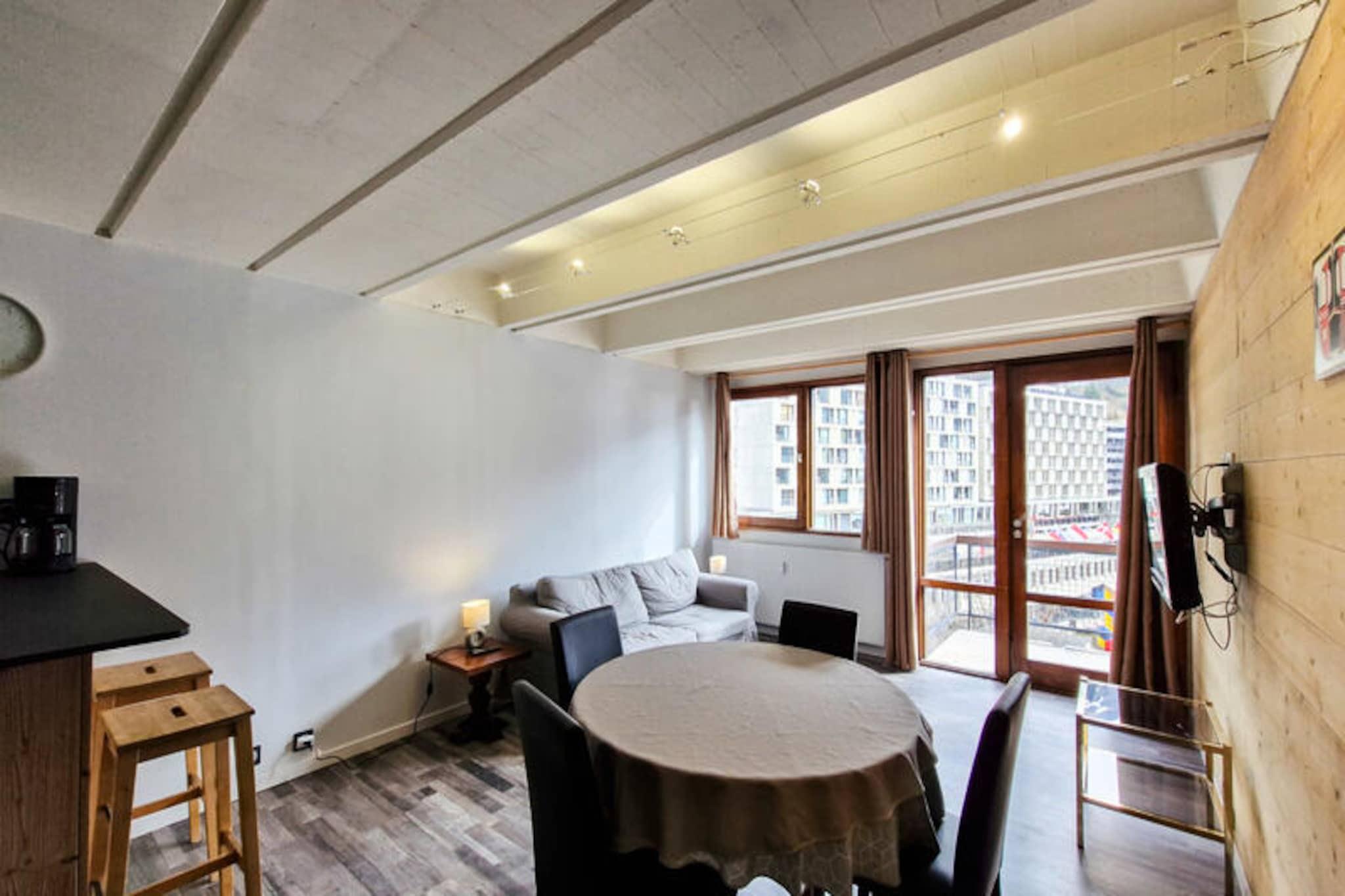 I hjertet af Flaine Forum, hvor charmen fra de franske alper møder moderne bekvemmeligheder, tilbyder denne dejlige lejlighed det perfekte tilflugtssted for din bjergferie. Kun 150 meter fra pisterne og skiskolens mødesteder er det et ideelt valg for både vintersportsentusiaster og familier. Det omkringliggende område er levende med butikker og faciliteter kun en kort gåtur væk, hvilket sikrer, at alt hvad du behøver er inden for rækkevidde. Fra det øjeblik du ankommer, vil du mærke den indbydende atmosfære i dette alpine paradis. \n\nDenne 43 m² store 2-værelses lejlighed, der ligger på 5. sal, er omhyggeligt designet til at rumme op til seks gæster. Stuen har en komfortabel dobbeltsovesofa, mens soveværelset tilbyder en hyggelig dobbeltseng til afslappende nætter. En sovealkove med køjesenge tilføjer et legende præg, perfekt til børn eller ekstra gæster. Det åbne køkken er fuldt udstyret med en kombiovn og opvaskemaskine, hvilket gør madlavning til en leg. Efter en dag på pisterne kan du slappe af i badeværelsets badekar eller slappe af på den østvendte balkon og nyde den friske bjergluft. Moderne faciliteter som fladskærms-tv og vaskemaskine sikrer et behageligt og bekvemt ophold. \n\nUd over lejligheden tilbyder Flaine Forum en livlig alpin oplevelse. Om vinteren gør nærheden til pisterne og skiskolen det nemt at dykke ned i den verdensklasse skiløb, som Flaine er kendt for. Om sommeren er den inkluderede \