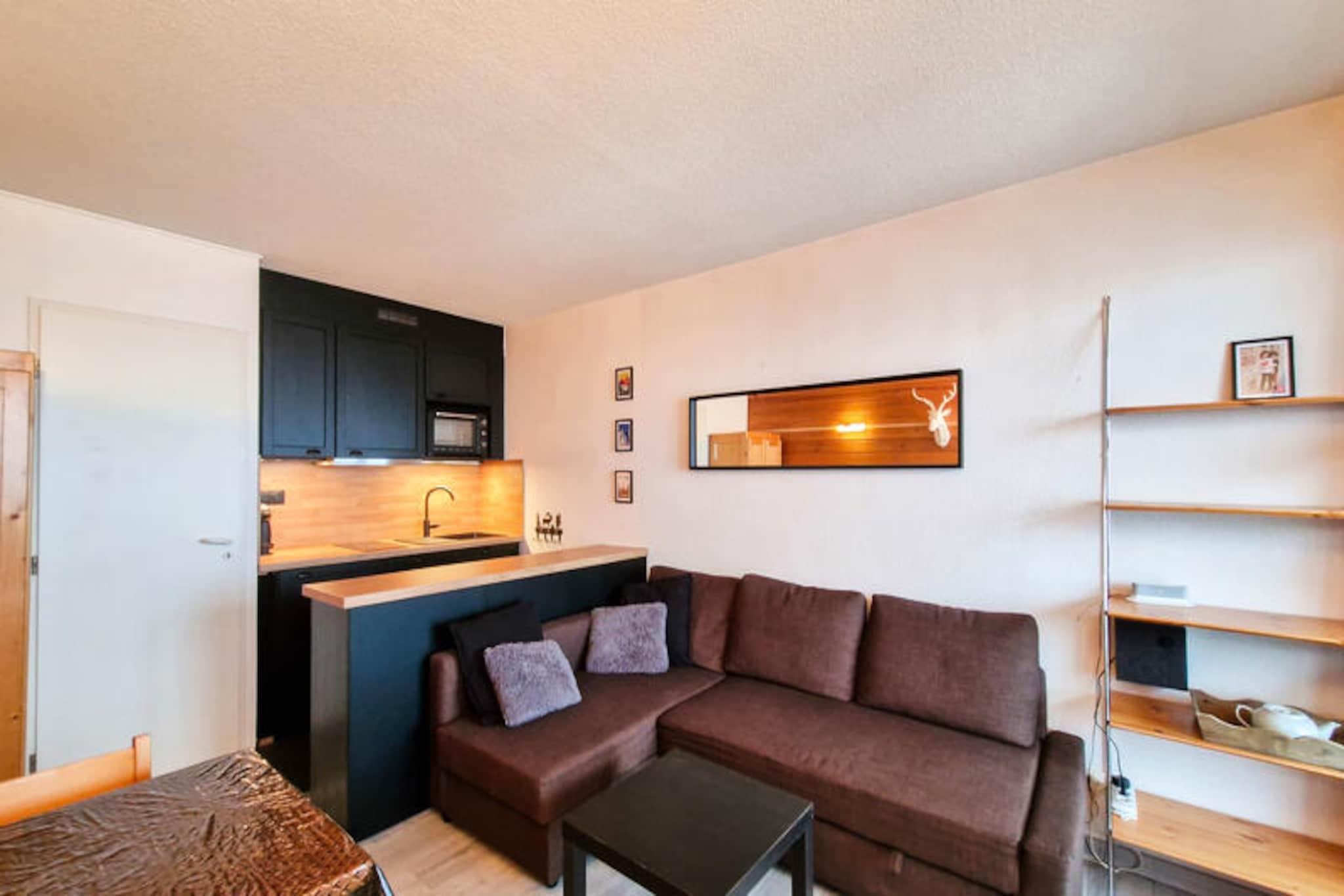 I hjertet af det maleriske Hameau de Flaine tilbyder dette charmerende studio i skandinavisk stil et hyggeligt tilflugtssted for dine alpine eventyr. Omgivet af fantastiske bjergudsigter og beliggende i et malerisk kvarter med en håndfuld butikker, kombinerer denne ejendom bekvemmelighed med en rolig atmosfære. Uanset om du er her for de snedækkede pister eller de pulserende sommeraktiviteter, er dette studio den perfekte base for dit ophold. Det 27 m² store sydvendte studio er omhyggeligt designet til at rumme op til fire gæster. Indgangen har et sæt køjesenge, mens stuen har en komfortabel dobbeltsovesofa, hvilket gør det ideelt for familier eller små grupper. Det åbne køkken er udstyret med moderne bekvemmeligheder, herunder keramiske kogeplader, ovn, opvaskemaskine og mikrobølgeovn, hvilket sikrer, at du har alt, hvad du behøver for at tilberede måltider efter en dag med udforskning. Slap af på den private sydvendte balkon, nyd solskinnet og indånd den friske bjergluft. Yderligere faciliteter inkluderer et fladskærms-tv, dvd-afspiller, et badeværelse med badekar og et separat toilet. For din bekvemmelighed er lagner, håndklæder og et velkomstsæt inkluderet, og der er et skirum til rådighed til dit udstyr. En blå piste i nærheden fører direkte til skilifterne, mens en gratis skibus tager dig til Flaine Forêt skiskoles mødested, hvilket sikrer problemfri adgang til pisterne. Om sommeren inkluderer ophold på seks nætter eller mere \