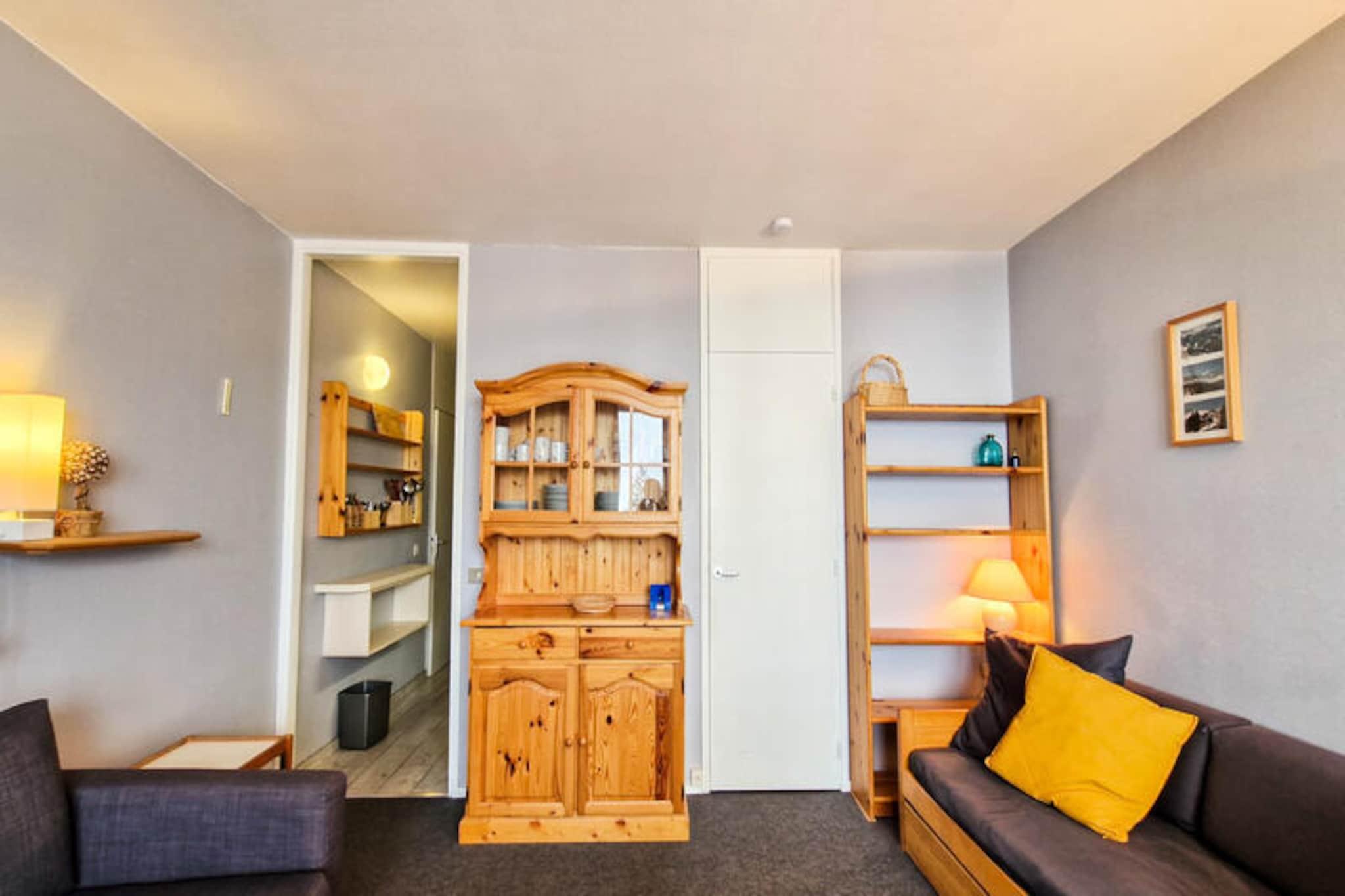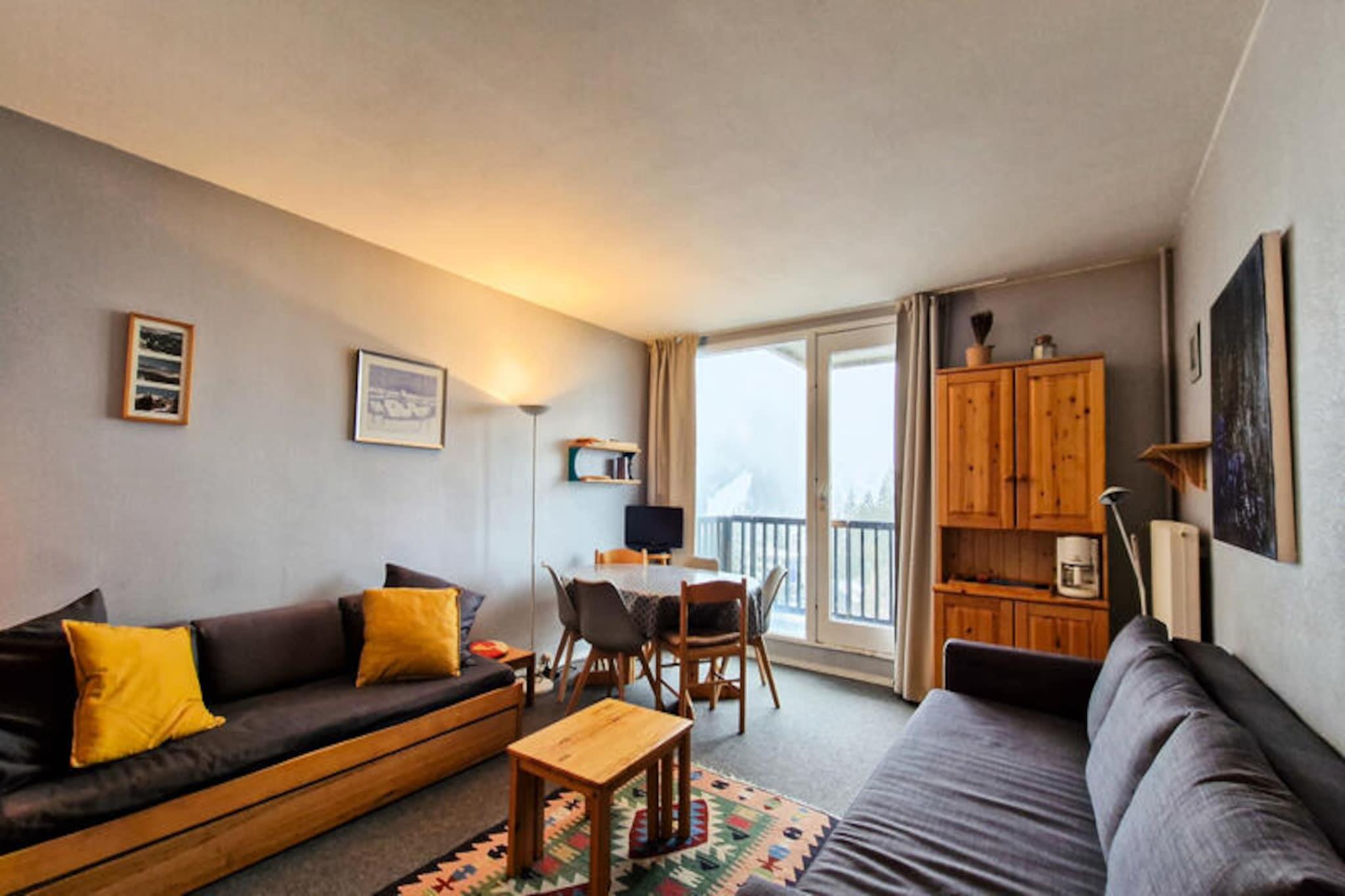 Højt over de fredfyldte dale i Haute-Savoie-regionen tilbyder dette charmerende studie i Flaine Forum et hyggeligt tilflugtssted for både eventyrere og afslapningssøgende. Med sin sydvendte balkon på 7. sal kan gæsterne nyde uforstyrret udsigt over det majestætiske alpine landskab, mens de nyder den friske bjergluft. Uanset om du er her for vinterskiløb eller sommervandreture, placerer denne bolig dig i hjertet af begivenhederne, kun 150 meter fra pisterne og skiskolens mødesteder og få skridt fra lokale butikker og bekvemmeligheder. Flaines pulserende atmosfære sikrer, at hvert øjeblik er fyldt med spænding og charme. \n\nStudioet er designet til komfortabelt at rumme op til fire gæster og har et smart layout med en dobbelt sovesofa, en enkelt sovesofa og en udtræksseng. Opholdsstuen inviterer dig til at slappe af efter en dag med udforskning, mens tekøkkenet er udstyret med keramiske kogeplader, en mikrobølgeovn og en Nespresso-kaffemaskine til ubesværet madlavning. Badeværelset har badekar og toilet, hvilket sikrer komfort og praktisk anvendelighed under hele dit ophold. Yderligere faciliteter såsom skiboks og elevator gør denne ejendom ideel til både korte og længere ophold.\n\nOm sommeren modtager gæster, der bor seks nætter eller mere, det eksklusive Flaine Summer Pass, der giver adgang til en række aktiviteter, der fremviser regionens naturlige skønhed og eventyrlyst. Fra mountainbiking til guidede vandreture sikrer passet uendelige muligheder for at udforske og komme i kontakt med omgivelserne.\n\nUanset om du jagter pudrede pister om vinteren eller soler dig i den gyldne sommersol, tilbyder dette studie en perfekt blanding af bekvemmelighed, komfort og betagende natur. Flaine Forum venter på at skabe uforglemmelige minder i hjertet af de franske alper.