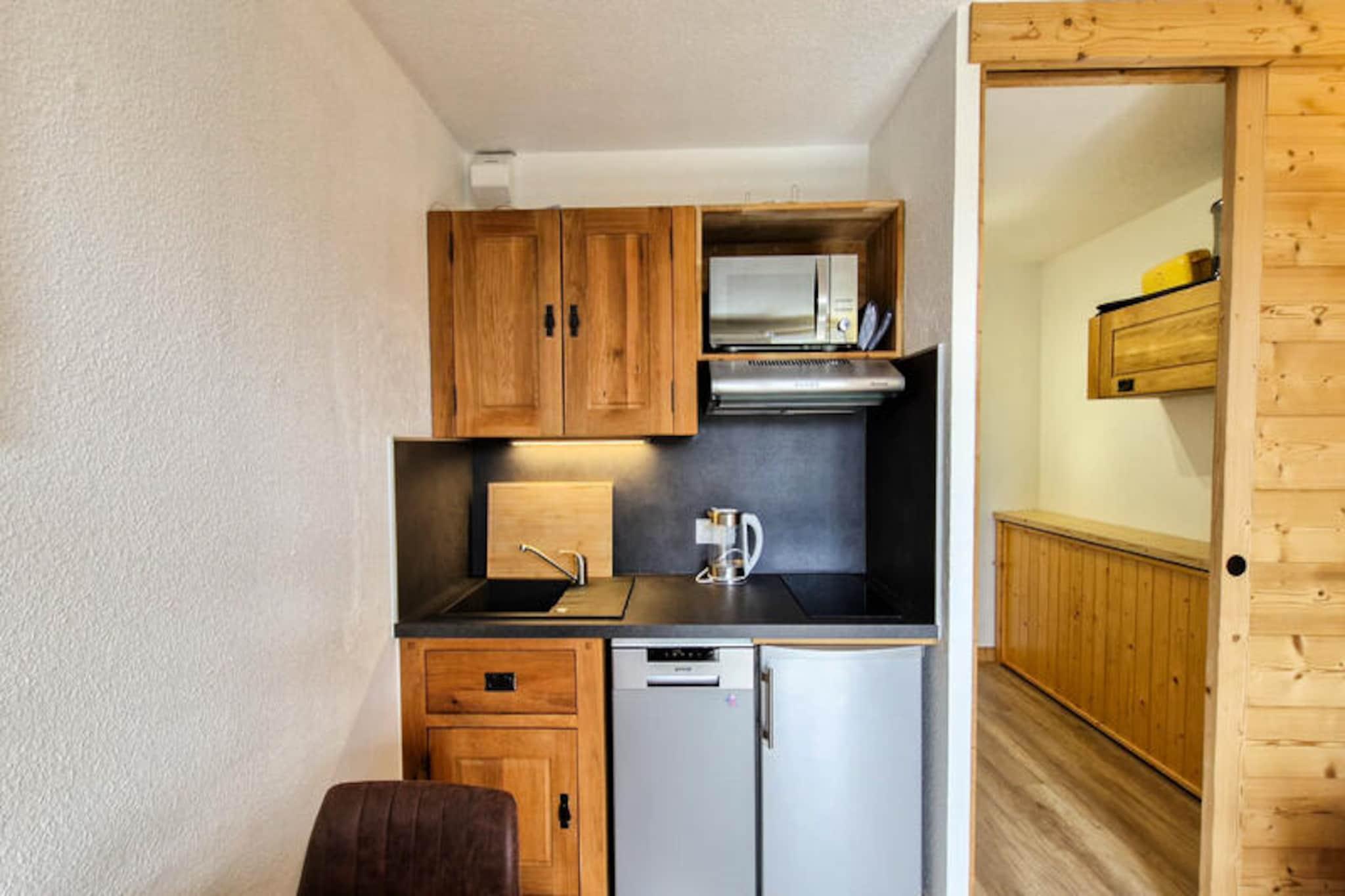 Højt over de fredfyldte landskaber i de franske alper tilbyder denne charmerende studiolejlighed i Flaine Forêt-distriktet et hyggeligt tilflugtssted for både eventyrere og naturelskere. Med sit fuldstændig renoverede interiør og en sydvendt balkon, der indfanger varmen fra den alpine sol, er denne ejendom din port til en uforglemmelig bjergflugt. Uanset om du er her for de snedækkede pister eller de pulserende sommeraktiviteter, lover hvert øjeblik at være ekstraordinært. Det 25 m² store studio er omhyggeligt designet til at rumme op til fem gæster, hvilket gør det ideelt for par, små familier eller nære venner. Sovekamren har en komfortabel dobbeltseng, mens entréen har en praktisk enkeltseng, der kan foldes ned. Stuen indbyder til afslapning med en hyggelig to-personers sovesofa og et fladskærms-tv, perfekt til at slappe af efter en dag med udforskning. Det moderne tekøkken er udstyret med keramiske kogeplader, en kombineret mikrobølgeovn/ovn og en opvaskemaskine, hvilket sikrer, at du har alt, hvad du behøver for at tilberede lækre måltider. Et elegant brusebad og separat toilet bidrager til bekvemmeligheden, mens trægulvene giver rummet et strejf af elegance. Beliggenheden er en drøm for skientusiaster, kun 200 meter fra Gérats-stoleliften og 500 meter fra de vigtigste skilifter. Der ligger butikker en kort gåtur på 200 meter, og der er et busstoppested bekvemt placeret kun 20 meter fra boligen, hvilket gør det nemt at udforske området. Om sommeren tilbyder Flaine Summer Pass en række aktiviteter, så der altid er noget at nyde. Uanset om du snor dig gennem pudrede pister om vinteren eller vandrer på naturskønne stier om sommeren, er denne studiolejlighed den perfekte base for dine alpine eventyr. Omfavn Flaines skønhed og skab minder, der vil vare hele livet.