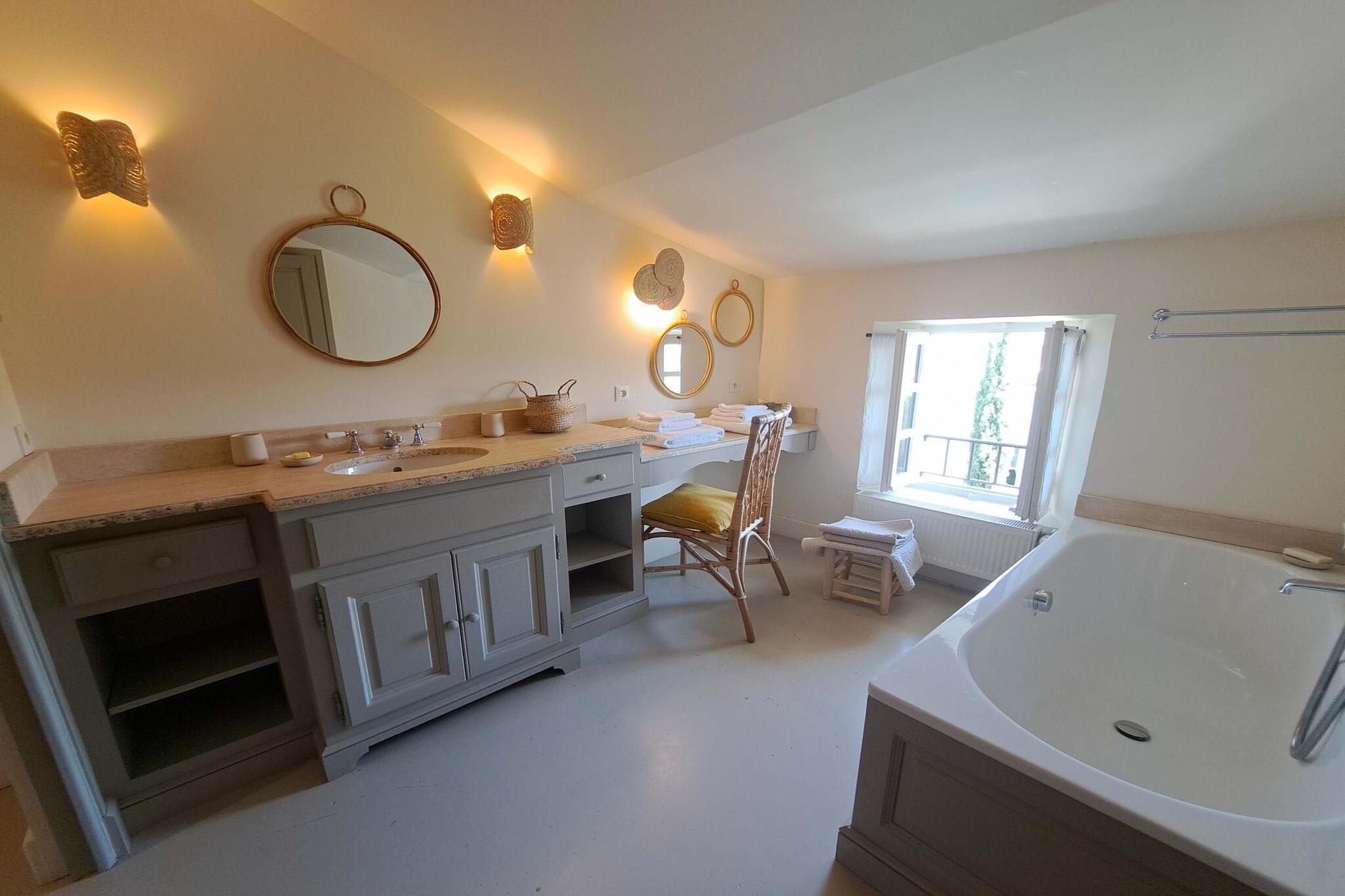 Beliggende lige uden for den fredelige landsby Maillane, er dette hjem indhyllet i den tidløse Provence-følelse - stenmure, cypresser, varmt lys i haven og rolige aftener. Det er et dejligt sted for familier eller en gruppe venner, der søger plads, privatliv og en blød landlig puls, samtidig med at de bor tæt på regionens kulturelle hjerte. Huset byder på masser af plads, der er effektivt indrettet til nem ophold fordelt over en stor stue med tv, et opholdsområde med bar og pejs, et fuldt udstyret køkken forbundet med spisestuen med plads til 8 personer og et separat toilet. Til sovepladserne finder du 5 rummelige soveværelser med kingsize-senge og veludstyrede badeværelser. Wi-Fi, tv, varme og køling samt sikker parkering på stedet giver komfort året rundt. Ejendommens facade udfolder sig til en privat have med græsplæne og skygge, bred nok til at børn kan lege og voksne kan slappe af. Swimmingpoolen bliver et knudepunkt på varme dage - morgensvømmeture, stille læsning i solen eller aftener ved vandet med et glas vin. En terrasse med siddeområde gør det nemt at spise, slappe af og samles udendørs. Maillane ligger i nærheden af Saint-Rémy-de-Provence - tæt nok på til udendørs middage, markedsture, romerske kulturarvsteder og de landskaber, der inspirerede Van Gogh. Olivenlunde, vandrestier, vinmarker og små landsbyer er i nærheden, så dagene kan bevæge sig blidt mellem natur, kultur og afslapning. Et roligt, autentisk ophold i Provence - privat, nemt og bygget til fælles øjeblikke.