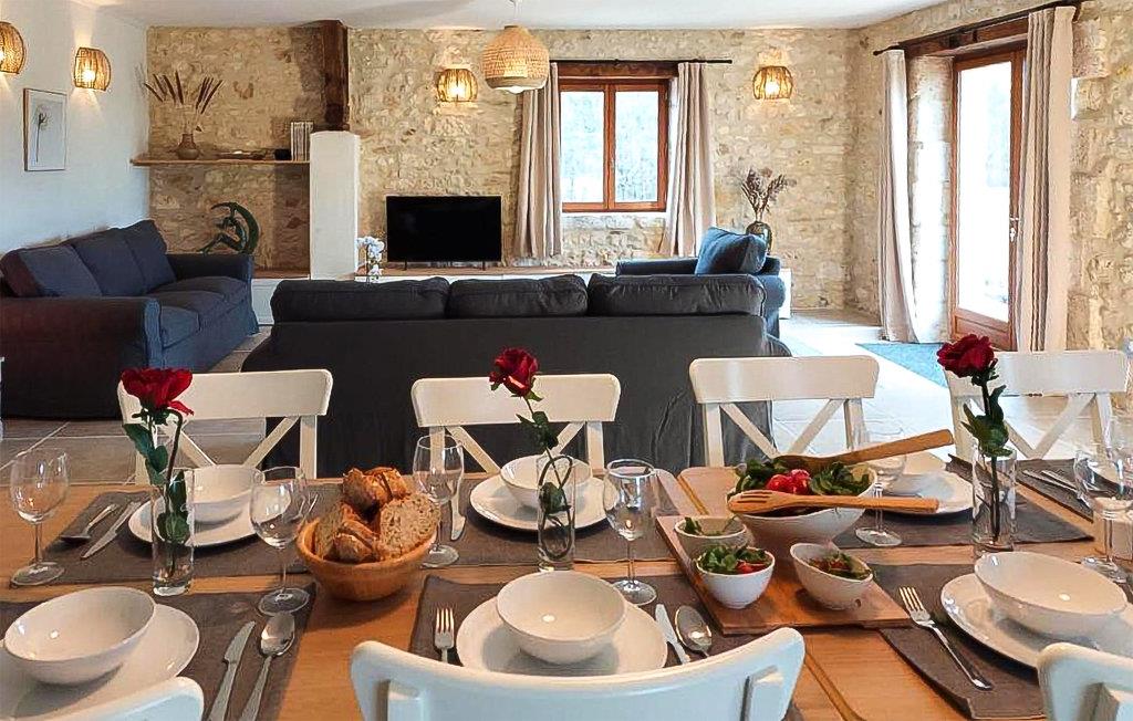 Der er lagt op til en drøm for hele familien i denne bolig, hvor I bor ud til skov, enge og marker. Der er både charme og komfort i det store hus, og I kommer ikke til at mange moderne faciliteter. Glæd jer til rolige nætter i de velindrettede soveværelser og glæd jer til hyggestunder i spisekøkkenet, den lyse stue og i spillerummet. I kan også nyde dagens måltider under åben himmel i skyggen af ??stenmurene og kigge ud på haven og landskabet, mens I bader i poolen eller slapper af på liggestolene.