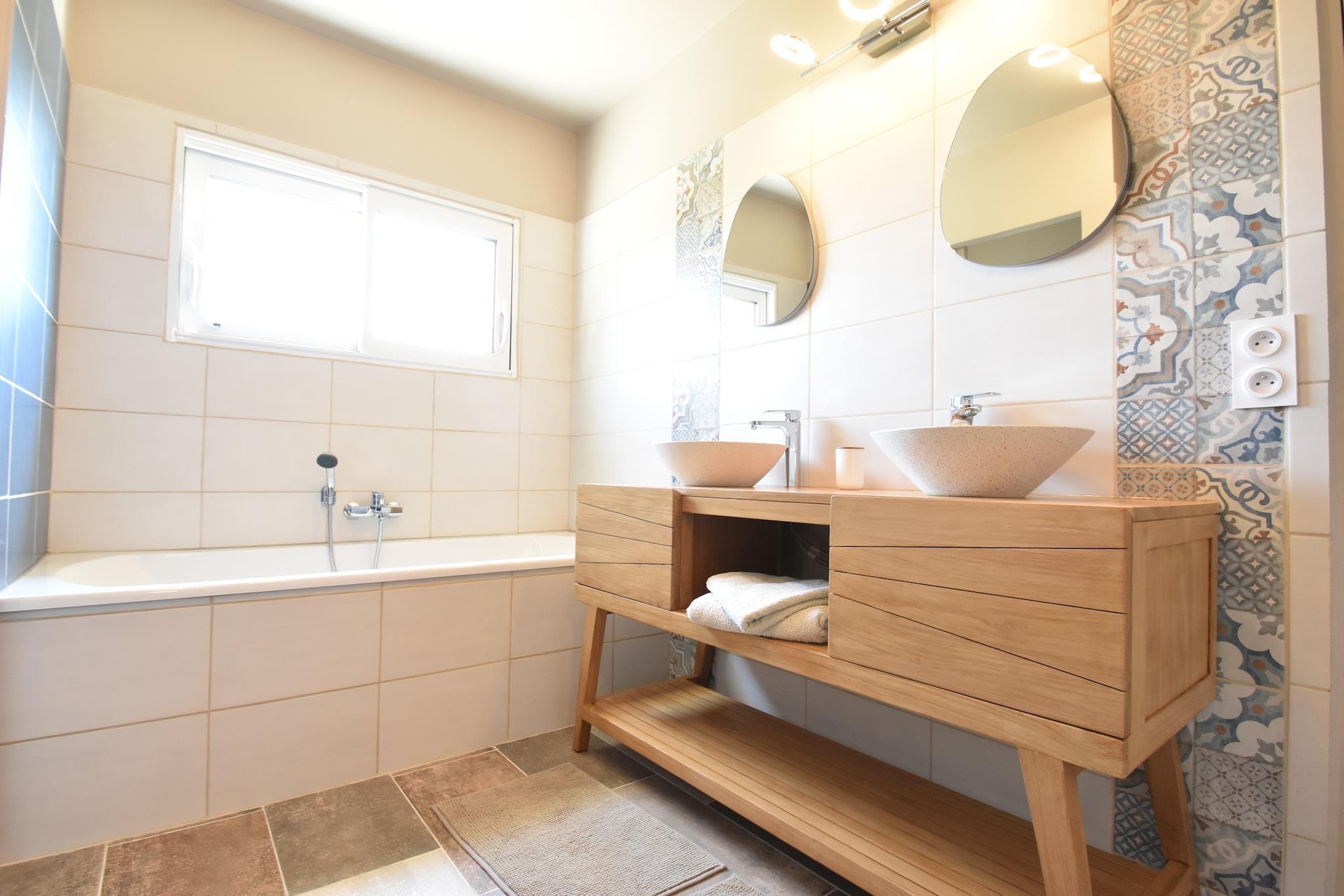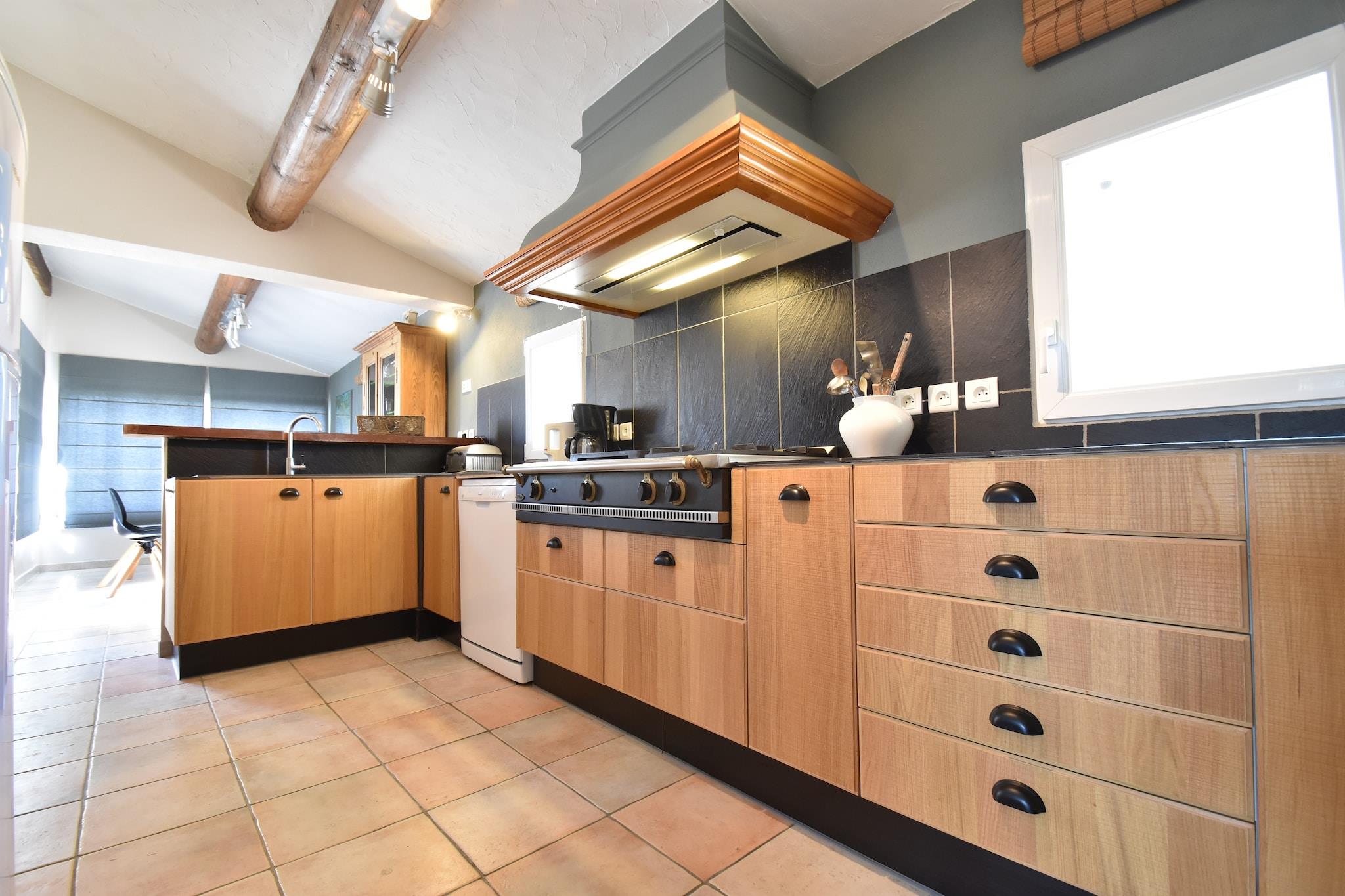Stueetage: (entre, Stue(Fjernsyn(fladskærm), kakkelovn(træ), sofahjørne, DVD-afspiller), spisestue, Køkken(komfur(gas), kaffemaskine(kopper, kaffetragt), ovn, mikrobølgeovn, opvaskemaskine , køle-fryseskab), Soveværelse med badeværelse(dobbeltseng(160 x 200 cm), badekar, bruser, 2x håndvask, toilet), badeværelse(bruser, 2x håndvask), Arbejdsværelse, toilet, vaskerum ) På 1. etage: (soveværelse(dobbeltseng(160 x 200 cm)), Soveværelse med badeværelse(dobbeltseng(160 x 200 cm), bruser, håndvask, toilet)) garage, vaskemaskine, varme(elektrisk), klimaanlæg, terrasse(overdækket, 20 m2), have(privat, indhegnet, 3000 m2), havemøbler, solstole, grill(trækul), parkering, liggestole, Parasol, swimmingpool(privat, vand alarm, 12 x 9 m., opened from May upto and including Sep), petanquebane, barneseng, strygebræt, hyggespil