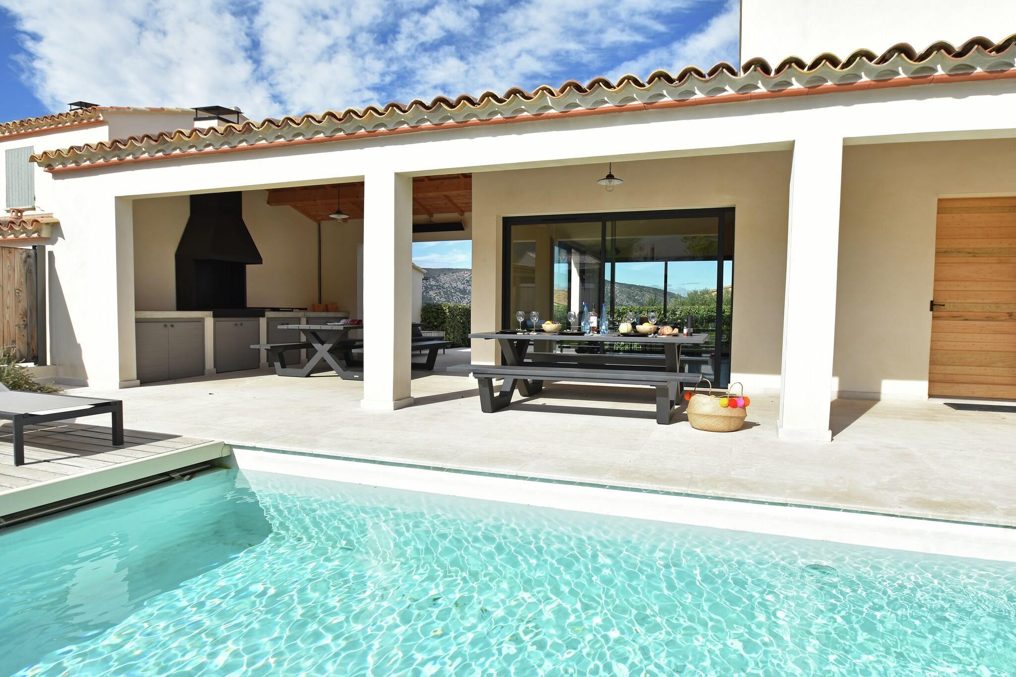 Bedøvelse villa med opvarmet privat swimmingpool på et luksuriøst område ved foden af Mont Ventoux. Vaucluse er præget af sine mange maleriske byer, Malaucene er en af dem. Du kan bare gå der og finde dejlige restauranter og udendørs caféer her. Ved siden af dette domæne finder du et meget luksuriøst wellnesscenter, hvor du kan lade dig forkæle. Under dit ophold i dette smukke område skal du ikke besøge den berømte Vaison la Romaine. Med Mont Ventoux bogstaveligt og figurativt som højdepunkt i regionen kan cyklisten stå over for en ganske udfordring her. Denne villa har en opvarmet privat swimmingpool med solterrasse og overdækket terrasse, udsigten er overraskende smuk. Den store udendørs pejs med bordplade er ideel til dine "al fresco" måltider. Derimod brugte ejerne meget smukke træ og glas, resultatet er meget flot og lyst stue og køkken. Stuen er et godt sted at slappe af og åbne på en af terrasserne, ligesom spisestuen. Nedenunder finder du også et soveværelse med havedøre og et badeværelse. De andre tre soveværelser er ovenpå. De deler et smukt træ badeværelse.
