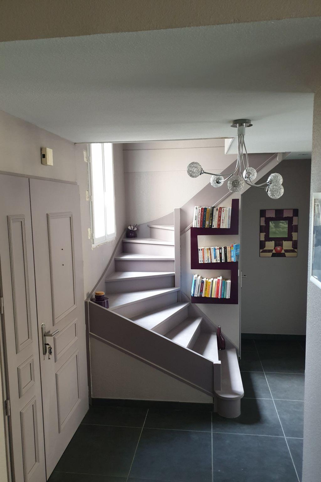 Upstairs there is a bedroom with a 160cm double bed, a bedroom with 2 single beds and a children's bedroom with 3 bunk beds and a cot.