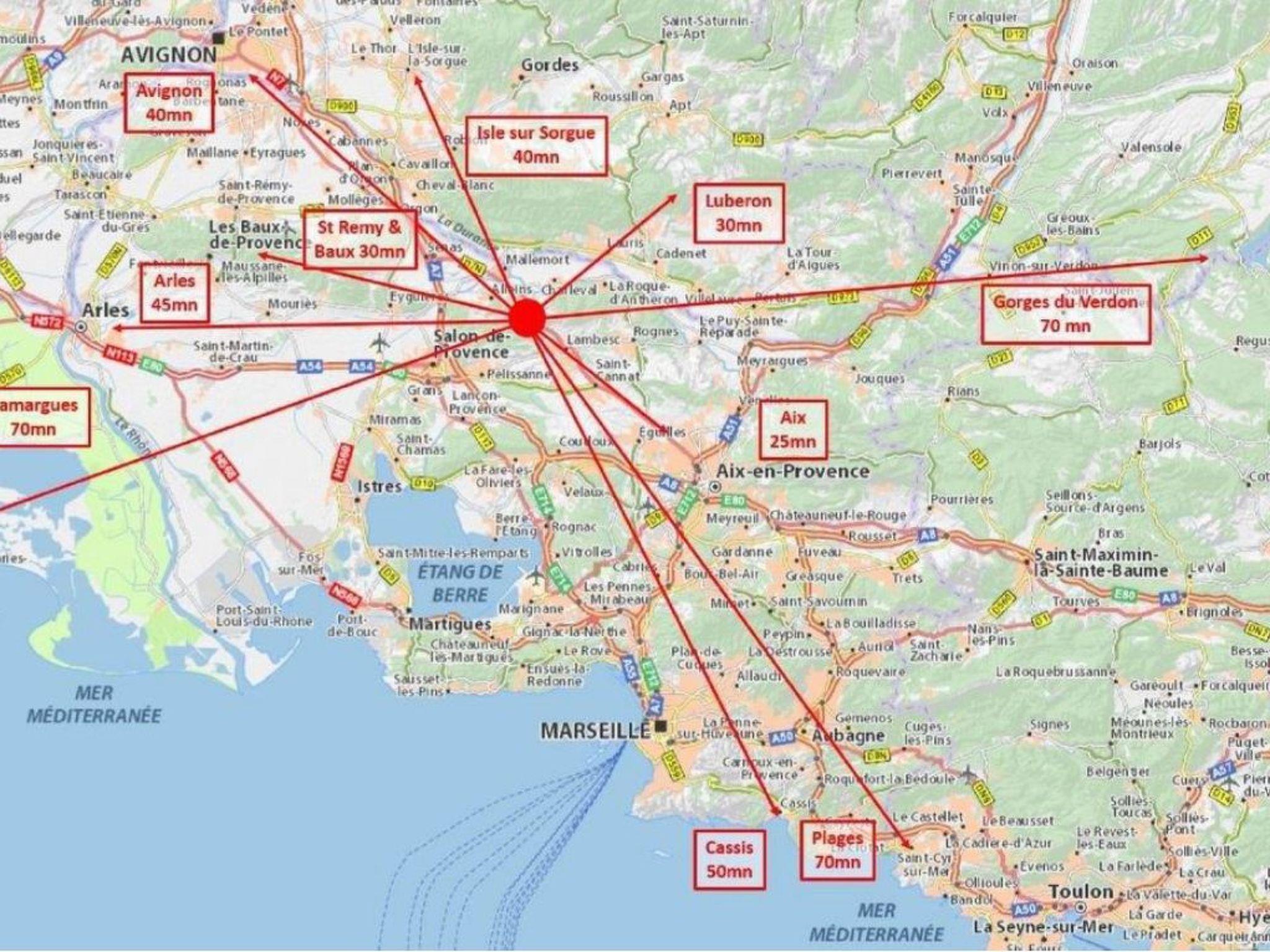 The house is accessible by train from Avignon TGV station (less than 2 hours 31 hours from Paris), with the possibility of hiring a car at the station. If you are coming by car, the A7 motorway is less than 10 km away. Marseille-Marignane airport is 50 minutes away via the motorway.