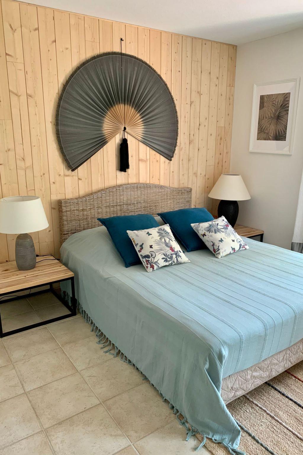 - 3 air-conditioned bedrooms, two with a 160x200 bed and the third with two 90x190 beds. Each bedroom has a large storage cupboard. All bedding is brand new.